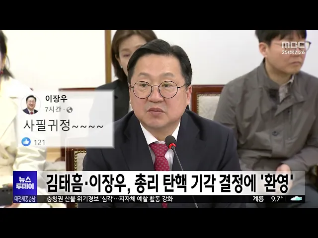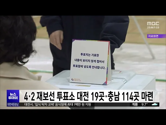 뉴스투데이 뉴스데스크뉴스투데이뉴스데스크 VOD(전체 다시보기)뉴스투데이 VOD(전체 다시보기)유튜브뉴스페이스북 뉴스카카오톡 뉴스인스타그램 뉴스 prev 2025.3.25 - 화요일 next 대전시, 지역 소상공인 건강검진 비용 지원 대전시가 지역 소상공인의 건강검진 비용을 지원합니다. 시는 KB금융그룹과의 소상공인 지원 강화 협약을 토대로, 소상공인 6백 명에게 1인당 30만 원의 검진비를 지원합니다. 신청은 다음 달 4일까지 온... 이승섭 충남도, 축산농가 사료 구매자금 융자 지원 충남도가 축산농가를 대상으로, 올해 상반기 사료 구매자금 융자 지원에 나섭니다. 대상은 도내 축산농가나 법인으로, 농가당 한도액은 6억 원이고, 구제역과 조류인플루엔자, 아프리카돼지열병 피해 농가... 최기웅 대전 대덕구, '착한가격업소' 신규 모집 대전 대덕구가, 저렴한 가격으로 우수한 서비스를 제공하는 '착한가격업소'를, 다음 달 25일까지 신규 모집합니다. 대상은 식당이나 미용실, 세탁소 등을 운영하는 개인사업자나 법인으로, 가격과 위생, ... 김윤미 세종 조치원 봄꽃축제 다음 달 5~6일 개최 올해 세종 조치원 봄꽃축제가, 다음 달 5일부터 이틀간 조치원 중심가로와 왕성길 일대에서 펼쳐집니다. 이번 조치원 봄꽃축제는, 벚꽃과 복숭아꽃이 만개하는 풍경과 더불어, 지역 예술인 무대 등 다양한... 김윤미 초미세먼지 꼼짝 마! 오존 최소화 무필터 공기청정기술/투데이 ◀ 앵 커 ▶ 날이 따뜻해지면서 초미세먼지가 기승을 부리고 있는데요. 국내 연구진이, 실내 공기 정화과정에서 나오는 오존 발생은 최소화하면서도, 관리비도 적은 '무필터 저감기술'을 개발했습니다. 박선... 박선진 '대덕특구 주말 개방' 11개 기관으로 확대 대전시가 과학 문화의 확산과 시민의 체험 기회를 제공하기 위해 진행하는 '대덕특구 연구기관 주말 개방' 프로그램이, 올해부터 11개 기관으로 확대됩니다. 시는 기존 8개 기관에 더해, 그동안 보안 등을... 이승섭 '세계기록유산' 태안 유류피해 극복 희귀 자료 공개 태안군이 유네스코 세계기록유산에 등재된 '태안 유류 피해 극복 기록물'과 관련해, 그동안 공개되지 않았던 개인 소장자의 사진과 영상 등, 희귀 자료 76점을 오는 6월 29일까지 유류 피해극복기념관에서... 김지훈 '불멸의 화가 반 고흐' 전시전 개막 네덜란드 출신의 세계적인 화가 '빈센트 반 고흐' 특별 전시전 개막식이, 대전시립미술관에서 열렸습니다. 오늘부터 일반 관람객을 맞이하는 이번 전시는, 네덜란드 크뢸러 뮐러 미술관이 소장한 '자화상'... 고병권 한화 개막 2연전 1승 1패 등/투데이 ◀ 앵 커 ▶ 지난해 천만 관중 시대를 열었던 프로야구가 드디어 막을 올렸습니다. 한화는 KT위즈와의 개막 2연전에서 5년 만의 개막전 승리를 포함해 1승 1패를 기록했는데요. 오는 28일, 대전한화생명볼파... 층간소음 갈등에 흉기 협박한 50대 집행유예 대전지법 형사10단독은, 층간소음에 불만을 품고 이웃을 흉기로 위협한 혐의로 기소된 50대에게, 징역 6개월에 집행유예 1년을 선고했습니다. 피고인은 지난 1월, 대전시 유성구의 한 아파트 계단에서, 층... 윤소영 충남선관위, 위탁 선거법 위반 혐의 새마을금고 회원 고발 충남도 선거관리위원회가 지난 5일 실시한 제1회 전국 동시 새마을금고이사장 선거와 관련해, 서산 모 새마을금고 회원을 위탁선거법 위반 혐의로 경찰에 고발했습니다. 피고발인은, 선거 당일 투표소 근... 최기웅 4·2 재보선, 대전 19곳·충남 114곳 투표소 마련 대전과 충남선거관리위원회가, 4·2 재보궐선거가 치러질 투표소를, 대전 19곳, 충남 114곳에 마련했습니다. 본투표는 다음 달 2일 오전 6시부터 밤 8시까지 진행되고, 모든 투표소는, 선거인의 접근성을 ... 이승섭 조달청, 산불 피해대응 조달 절차 단축·간소화 조달청은, 전국적으로 발생한 대형 산불 피해를 신속히 복구하고 피해기업을 지원하기 위해, 오는 6월 말까지 긴급 조달조치를 시행합니다. 우선 산불 피해지역 복구를 위한 물자와 공사는, 공고 기간이 ... 문은선 "산불 초비상"...충청권도 '심각' 상향/투데이 ◀ 앵 커 ▶ 전국적으로 대형 산불이 잇따르면서, 4명이 숨지고 축구장 만 개가 넘는 면적이 재로 변했습니다. 산림청은, '충청권'도 산불재난 위기경보를 최고 수준인 '심각'으로 격상했는데요. 오는 27일 ... 김성국 환경단체 "세종보 재가동 주장 근거 없어" 끝장토론 제안 세종 환경운동연합 등 환경단체가, "최근 세종보 재가동을 촉구한 최민호 세종시장의 주장이, 사실이 아니거나 검증되지 않았다"며 반박하고 나섰습니다. 이들은 기자회견을 열고, "세종보를 가동한 5년 ... 김윤미 김부겸 전 총리 "국민 상식 맞는 헌재 선고 나올 것"/투데이 ◀ 앵 커 ▶ 헌법재판소의 윤석열 대통령 탄핵심판 선고가 임박했다는 관측이 나오고 있습니다. 김부겸 전 국무총리가 대전을 찾아, 국민의 상식과 눈높이에 맞는 결정을 헌재가 내놓을 것이라고 강조했는데... 김윤미 김태흠·이장우, 총리 탄핵 기각 결정에 '환영' 김태흠 충남지사와 이장우 대전시장이, 헌법재판소의 한덕수 국무총리 탄핵 소추 기각 결정에, 환영의 뜻을 밝혔습니다. 김태흠 지사는 어제 