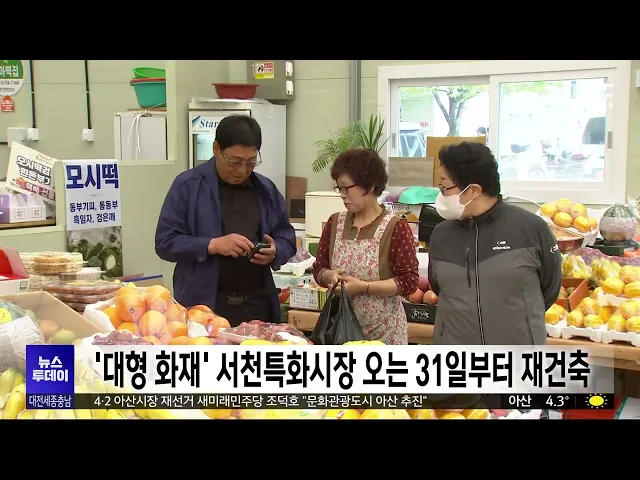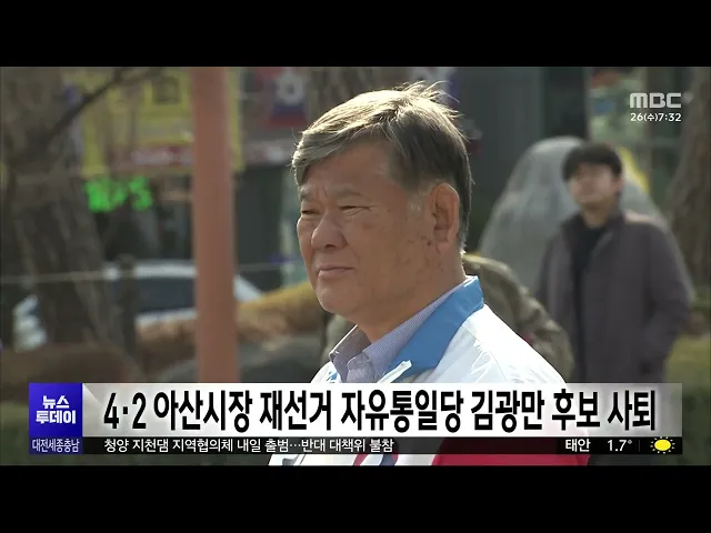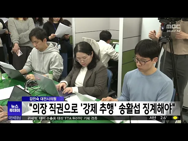 뉴스투데이 뉴스데스크뉴스투데이뉴스데스크 VOD(전체 다시보기)뉴스투데이 VOD(전체 다시보기)유튜브뉴스페이스북 뉴스카카오톡 뉴스인스타그램 뉴스 prev 2025.3.26 - 수요일 next 충남 산림자원연구소 청양 이전⋯고운식물원 내년까지 운영 충남 산림자원연구소 청양 이전에 따라, 지역 대표 관광지인 청양 고운식물원이 내년까지만 운영합니다. 고운식물원은 지난 2003년 개장한 국내 최대 규모의 사설 식물원으로 8600여 종의 식물이 서식하고... 문은선 천안시, 올해 일자리 3만 개 창출⋯용률 68.7% 목표 천안시가 올해, 신규 일자리 3만 개 창출과 고용률 68.7%를 목표로 세웠습니다. 시가 공시한 2025년도 일자리 대책 연차별 세부 계획을 보면, 시는 신성장 동력 확보를 위해 거점형 스마트도시 조성, 혁신... 문은선 '대형화재' 서천특화시장 오는 31일부터 재건축 대형 화재로 큰 피해를 입은 서천특화시장이, 오는 31일 재건축 사업 기공식을 갖고 시장 재건을 시작합니다. 서천특화시장은 지하 1층, 지상 2층 규모로, 화재에 취약한 샌드위치패널이 아닌 철근콘크리... 문은선 충남도, 국회 정책설명회서 정부예산 확보 요청 충남도는 어제 국회의원회관에서 지역 국회의원 초청 정책설명회를 열고, 내년 정부예산 12조 원 확보를 위한 지원을 요청했습니다. 도는 충남대 내포캠퍼스와 충남혁신도시 과학영재학교 설립, 국방 미래... 최기웅 세종시·행복청·LH, 상가 용도 대폭 완화 추진 상가 공실 문제가 심각한 세종시 상가의 용도를, 대폭 완화하는 방안이 추진됩니다. 세종시와 행정중심복합도시건설청, 한국토지주택공사는 회의에서 상가 용도 완화와 함께 신규 상업용지 공급 시기 조절... 문은선 대전 트램 1공구 공사 시작..차량 부분 통제 대전도시철도 2호선 트램 건설 공사가, 우선 공사 구간인 대덕구 일대부터 시작됩니다. 대전시는 트램 공사 작업구간 확보 등을 위해 다음 달 말까지 1공구인 대덕구 읍내삼거리에서 회덕정수장 삼거리 부... 문은선 대전MBC 3월 시청자위원회 열려..사회 통합 프로그램 주문 대전MBC 3월 시청자위원회에서 위원들은, 토론프로그램 시시각각이, 지역 의제 설정에 큰 역할을 하고 있다며, 다양한 주제를 지역의 시각에 맞게 심층 조명할 것을 주문했습니다. 위원들은 또 탄핵 정국 ... 조형찬 "마지막 기회"...'글로컬 대학'에 사활/투데이 ◀ 앵 커 ▶ 지역 대학 30곳을 선정해 각각 1천억 원을 지원하는 글로컬대학 30 사업이, 올해 10곳을 추가 선정하면 마무리됩니다. 지난해까지 선정된 20곳 중 지역에서는 건양대 한 곳밖에 없어, 지역 대학... 김광연 올해 1분기 충청권 투자·생산·소비 모두 악화 탄핵정국으로 인한 불확실성에 미국발 무역전쟁 리스크까지 겹치면서, 올해 1분기 충청권 경기는 지난해 4분기보다 악화한 것으로 나타났습니다. 한국은행 대전세종충남본부가 발표한 올 1/4분기 충청권 ... 문은선 천안·세종 산란계 농장서 고병원성 AI 항원 검출 충남 천안과 세종의 산란계 농장에서 고병원성 AI 항원이 검출돼, 축산당국이 긴급 방역에 나섰습니다. 충남도는 AI 항원이 검출된 천안시 풍세면 산란계 농장 반경 500미터 안에 있는 11만 6천 마리에 대... 최기웅 아이돌 콘서트 표·사인 허위 판매 30대 징역형 대전지법 형사8단독 이미나 부장판사는, 유명 아이돌 그룹의 콘서트 표와 사인 등을 받아준다고 속여, 피해자 6명에게 2천 4백만 원을 가로챈 혐의로 기소된 30대에게, 징역 6개월을 선고했습니다. 재판부... 김성국 역대급 강풍에 노동자 추락사...곳곳 피해 속출/투데이 ◀ 앵 커 ▶ 순간최대풍속이 초속 20미터가 넘는 역대급 강풍에, 지역 곳곳에서 피해가 잇따랐습니다. 아파트 공사 현장에서 노동자가 강풍에 추락해 숨지는 등, 무려 백 건이 넘는 피해가 접수됐습니다. 이... 이혜현 청양 지천댐 지역협의체 내일 출범 최근 청양 지천댐 건설 이슈가 재점화한 가운데, 댐 건설 추진 여부를 가를 지역협의체가 내일 본격 출범합니다. 지천댐 지역협의체는 전문가 4명과 부여와 청양 주민 9명 등 모두 16명으로 구성됐으며 내... 최기웅 김민숙 대전시의원 "송활섭 징계요구서 의장 직권 상정해야" 송활섭 대전시의원이, 선거 캠프 직원 강제추행 혐의로 불구속 기소된 가운데, 민주당 김민숙 시의원이, "대전시의회 의장이 직권으로 송 의원에 대한 징계에 나서야 한다"고 주장했습니다. 김 의원은, "... 김광연 4·2 아산시장 재선거 자유통일당 김광만 후보 사퇴 4·2 아산시장 재선거에 출마한 자유통일당 김광만 후보가, "정치하면서 이렇게 부끄럽고 비참함을 느낀 적이 없다"며, 후보 사퇴와 함께 정계 은퇴를 선언했습니다. 무소속 아산시 의원으로 정계에 입문한... 문은선 아산 발전 적임자는? 자질 놓고 날 선 공방/투데이 ◀ 앵 커 ▶ 4.2재보궐선거를 앞두고, 아산시장 재선거에 출사표를 던진 후보들이, 대전MBC에서 열린 법정 토론회에서 맞붙었습니다. 후보들은 지역의 시급한 현안으로 '무너진 경제'를 꼽으며, 이를 해결할... 박선진