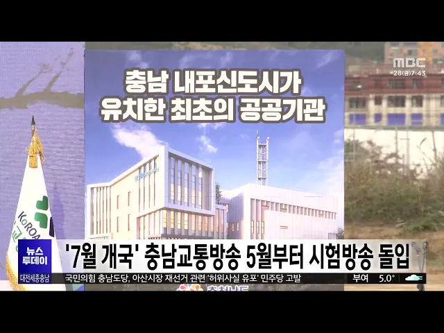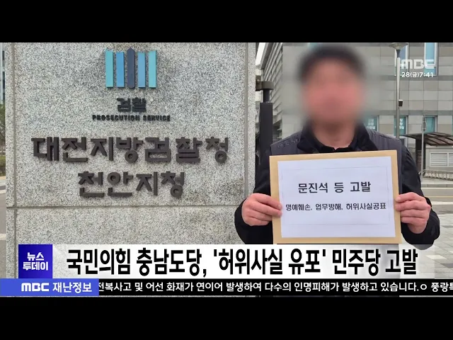 뉴스투데이 뉴스데스크뉴스투데이뉴스데스크 VOD(전체 다시보기)뉴스투데이 VOD(전체 다시보기)유튜브뉴스페이스북 뉴스카카오톡 뉴스인스타그램 뉴스 prev 2025.3.28 - 금요일 next 고용노동부 천안지청, 관내 대학과 청년 취업 지원 협력 최근 청년층 '쉬었음' 인구가 50만 명을 넘는 등 구직난이 심화하는 가운데, 고용노동부 천안지청과 순천향대 등 10개 대학이, 청년 취업 지원에 힘을 모으기로 했습니다. 이들은 다양한 일 경험과 디지털... 김광연 세종시 종촌동, 저소득층에 '반값 학원비' 수강료 할인 세종시 일부 지역에서, 사설학원과 손잡고 저소득층 학생들의 수강료를 감면해 주는 이른바 '반값 학원비' 사업에 나서, 눈길을 끌고 있습니다. 세종시는 민·관 협력기구인 세종시 종촌동 지역사회보장협... 김윤미 충남교통방송 5월 시험방송 시작..7월 8일 개국 충남 유일의 지상파 라디오가 될 한국도로교통공단 tbn충남교통방송이, 오는 7월 8일 개국을 앞두고, 오는 5월부터 시험방송에 들어갑니다. 충남도는 295억 원을 투입해 내포신도시에 지상 3층 규모로 신... 김윤미 대전·세종·충남 시도지사 등 고위공직자 재산 증가 지역 시도지사 등 고위공직자 재산이, 대부분 지난해보다 증가한 것으로 나타났습니다. 관보를 통해 공개된 공직자 정기 재산변동사항에 따르면, 이장우 대전시장은 지난해보다 3억 원 남짓 늘어난 28억 6... 김윤미 최민호 시장, 김완섭 환경부장관에 세종보 재가동 요청 세종보 재가동을 둘러싼 찬반 논란이 최근 다시 불붙은 가운데, 최민호 세종시장이, 환경부에 세종보 재가동을 촉구했습니다. 최 시장은 어제 김완섭 환경부 장관을 만나 금강의 안정적인 수량 확보와 그... 김윤미 국민의힘 충남도당, '허위사실 유포' 민주당 고발 국민의힘 충남도당이, 아산시장 재선거에서 국민의힘 전만권 후보와 관련해 허위 사실을 유포했다는 이유로, 문진석 더불어민주당 충남도당 위원장과 당직자들을 검찰에 고발했습니다. 국민의힘은 민주당... 이승섭 4·2 재보궐선거 사전투표 오늘부터 이틀 동안 진행 4·2 재보궐선거의 사전투표가 오늘 아침 6시부터 시작돼, 내일 오후 6시까지, 대전 유성구와 충남 아산, 당진에 마련된 사전투표소 23곳에서 진행됩니다. 유권자는 신분증만 있으면 전국의 사전투표소 어... 이승섭 '김하늘 양 살해' 명재완 구속 기소..."이상동기 범죄"/투데이 ◀ 앵 커 ▶ 지난달 대전의 한 초등학교에서 1학년 고 김하늘 양을 살해한 교사 명재완이, 구속 기소됐습니다. 검찰은 직장 부적응 등으로 인한 분노를 해소하기 위해, 약자를 대상으로 벌인 '이상동기 범죄... 김광연 대전시 청년 만남 추진에 시민사회 반발 대전시가 저출생 극복 특화사업으로 '청년 만남' 프로그램을 추진 중인 가운데, 시민단체와 정치권이 반발하고 있습니다. 대전시민사회단체연대회의 등은 입장문을 내고, 국가가 공적 자원을 동원해 청년... 이승섭 강풍 속 아산 오피스텔 노동자 사망 사고 수사 본격화 지난 25일 아산의 한 오피스텔 건설 현장에서 외벽 작업을 하던 50대 노동자가 강풍으로 추락해 숨진 사고와 관련해, 경찰과 노동 당국이 수사에 나섰습니다. 충남경찰청과 고용노동부 천안지청은 시공사... 김성국 딸기·벚꽃 축제 어쩌나...지자체마다 '냉가슴'/투데이 ◀ 앵 커 ▶ 길어지는 탄핵 정국에 대형 산불까지. 사회 분위기가 가라앉으면서, 봄철 축제를 준비하는 지자체마다 냉가슴을 앓고 있습니다. 행사 규모를 축소하고, 차분한 분위기 속에 관광객을 맞을 채비... 이승섭 충남도, 소 럼피스킨 백신 4월 한 달간 일제 접종 충남도가 올해 럼피스킨병 예방을 위해, 다음 달 한 달간 소 사육 농가를 대상으로 백신 일제 무료 접종을 추진합니다. 접종은 도내에서 사육 중인 소 48만여 마리를 대상으로 자가 접종 방식으로 이뤄지... 김윤미 시민사회단체, 대전시 3대 하천 준설 감사 청구 대전시의 3대 하천 대규모 준설 사업에 대해 시민사회단체가, 감사원에 감사를 청구하기로 했습니다. 대전충남녹색연합과 정의당 대전시당 등은 대전시청 앞에서 기자회견을 열고 "대전시가 일방적인 준설... 김광연 기약 없는 탄핵 선고...노동계 '총파업' 압박/투데이 ◀ 앵 커 ▶ 윤석열 대통령에 대한 헌법재판소의 탄핵 심판 선고일 발표가, 기약 없이 미뤄지고 있습니다. 기다림에 지친 노동계는, 민주노총을 중심으로 하루 총파업에 나섰고, 시민들도 함께 탄핵을 촉구... 이혜현 청양·부여 지천댐 지역협의체, 반대 주민 불참 속 가동 충남도가 추진 중인 지천댐 건설 여부를 논의하는 지역협의체가, 청양지역 반대 주민들의 불참 속에 우선 가동을 시작했습니다. 도청에서 열린 지역협의체 첫 회의에는 전문가 4명과 부여와 청양 주민 9명... 김윤미 지자체마다 산불 대응 태세 강화 전국적으로 산불 위험이 커진 가운데, 지자체마다 산불 대응 태세를 한층 강화하고 있습니다. 서산시는 다음 달 4일과 5일, 청명과 한식을 앞두고 산불 취약 지역의 순찰을 강화하고, 쓰레기나 논·밭두렁... 이승섭 "전국이 산불 난리인데"...쓰레기 소각 여전/투데이 ◀ 앵 커 ▶ 지난 금요일부터 시작돼 전국적으로확산한 동시다