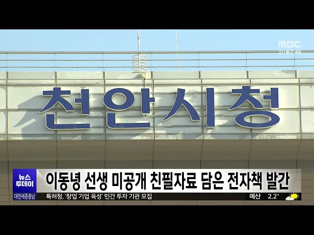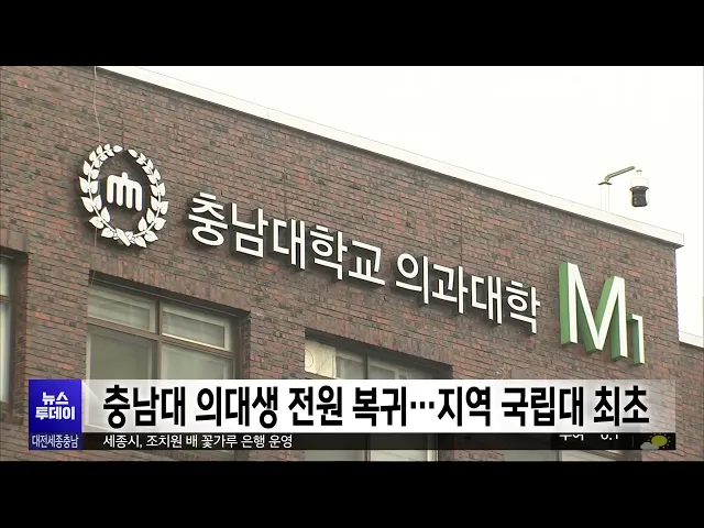 뉴스투데이 뉴스데스크뉴스투데이뉴스데스크 VOD(전체 다시보기)뉴스투데이 VOD(전체 다시보기)유튜브뉴스페이스북 뉴스카카오톡 뉴스인스타그램 뉴스 prev 2025.3.31 - 월요일 next 특허청, '창업 기업 육성' 민간 투자 기관 모집 특허청이 지식재산을 기반으로 한창업 기업 35곳을 육성하기 위해 추진하는'민관협력 IP 전략 지원 사업'에 참여할 민간 투자 기관 7곳을 모집합니다. 이 사업으로 특허청은 각 창업 기업에7천만 원 상당... 박선진 천안시, 이동녕 선생 미공개 친필자료 담은 전자책 발간 천안시가 대한민국 임시정부 국무회의 주석을지낸 독립운동가 이동녕 선생의 미공개 친필자료를 전자책으로 펴냈습니다.지난해 발간한 기증자료 도록 단행본의 개정판인 이 책에는 이동녕 선생의 손자인 ... 문은선 세종시, 조치원 배 꽃가루 은행 운영 세종시 농업기술센터가 배꽃 개화기를 앞두고지역 특산품인 조치원 배의 품질 향상을 위해4월 한 달 동안 '배 꽃가루 은행'을 운영합니다. 시는 수입 꽃가루 가격이 오르는 등과수 농가의 경영 부담을 덜... 박선진 세종시, AI 확산 방지 방역 현장 점검 세종시가 최근 시 안팎에서고병원성 조류인플루엔자, AI가 확산하면서방역 조치를 강화했습니다.시는 전용 거점 소독 시설과 통제초소를설치하고, 하루 두 차례 집중 소독과철새 퇴치로 AI 발생을 차단하... 박선진 천안역 증·개축 공사 이르면 다음 달 착공 20여 년간 임시 역사에 머물던경부선 천안역사가 이르면 다음 달부터 증·개축 공사에 본격 착수할 것으로 보입니다. 천안시에 따르면,천안역사 증·개축 사업은 1,100억여 원을투입해 지상 역사와 편의시설... 고병권 카이스트, 손상 시력 회복 망막 치료제 개발 국내 연구진이 이미 손상된 시력을 회복할 수 있는 망막 신경 재생 기술을 세계 최초로 개발했습니다. 카이스트 생명과학과 김진우 교수 연구팀은 망막 재생을 억제하는 프록스원 단백질을차단하는 치료제... 박선진 필라테스 폐업 소비자 피해 급증..할부 결제 권장 젊은 층에서 인기가 많은 필라테스 업체에서최근 소비자 피해가 잇따라 주의가 요구됩니다.지난해 한국소비자원에 들어온전국의 필라테스 업체 피해 구제 신청은 142건으로 최근 4년 사이 13배 늘었고,이 ... 이승섭 한화이글스, KIA에 패배..홈 3연전 2승 1패 프로야구 한화이글스가 KIA타이거즈에 패해홈 개막 시리즈 3연승에 실패했습니다.한화는 어제, 대전한화생명볼파크에서 열린KIA와의 경기에서 2대2로 팽팽히 맞서던 7회 초, 집중타를 허용하며 대량 실점... 이승섭 충남대 의대생 전원 복귀..지역 국립대 최초 지난해, 의과대학 정원 확대에 반발해대거 휴학했던 충남대 의대생들이전원 복귀했습니다.충남대 의대는 지난 28일, 등록을 마감했는데학생회 차원에서 복귀를 결정한 것으로전해졌으며, 의대 증원이 상대... 고병권 국제 우주 콘퍼런스, 6월 대전에서 개최 세계 40여 개 나라의 우주 전문가들이 모여 우주 기술과 관련한 아이디어를 공유하는 국제 우주 콘퍼런스가 오는 6월 대전에서 개최됩니다.대전시는 국내 1호 우주 스타트업 상장기업인 컨텍 스페이스그룹... 이승섭 대전시, 산불 취약지 현장 점검 대전시가 대형 산불에 대비해산불 취약 지역인 유성구와 대덕구, 서구와 중구 보문산을 현장 점검했습니다.시는 산불 위기 경보가 '심각' 단계로격상됨에 따라 산불 취약 지역 24곳의 기동 단속을 주말까... 박선진 1937년 지어진 첫 대전시청...내부 원형 '첫선'/투데이 ◀ 앵 커 ▶대전 원도심에는 일제 강점기 때 지어진 뒤 대전 첫 시청으로 쓰였던 옛 대전부 청사가 있는데요.대전시가 지난해 이 건물을 사들여 복원사업에 나섰는데, 88년 전 당시 원형이 확인돼 일부 모습... 김성국