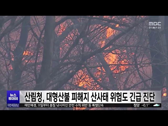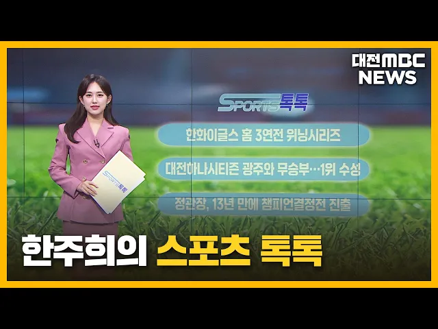 뉴스투데이 뉴스데스크뉴스투데이뉴스데스크 VOD(전체 다시보기)뉴스투데이 VOD(전체 다시보기)유튜브뉴스페이스북 뉴스카카오톡 뉴스인스타그램 뉴스 prev 2025.4.1 - 화요일 next 대전시, '꿈씨패밀리' 활용 스포츠 캐릭터 제작 대전시가 지역 대학생들과 함께, 시를 대표하는 마스코트인 꿈돌이와 꿈씨패밀리를 활용한 스포츠 캐릭터를 개발합니다.캐릭터 개발에는 오는 6월까지 한남대와 목원대 학생들이 참여하며 이를 통해 완성... 이승섭 세종신보 등 45억 원 규모 '달빛상권 특별보증' 세종 신용보증재단과 세종시 소상공인 연합회,우리은행이 야간경제 활성화를 위해, '달빛상권 특별보증'을 실시합니다.재단 등은 업무협약에 따라 우리은행이 세종신보에 3억 원을 특별출연하고세종신보는... 문은선 '저소득 자립 지원' 희망저축계좌2 대상자 모집 세종시 등 자치단체들이 오늘부터저소득층 가구를 대상으로, 매달 10만 원 이상을 저축하면 정부가 일정 금액을 지원하는 '희망저축계좌2'대상자를 모집하기로 하고, 행정복지센터에서 신청을 받습니다.지... 김윤미 충남도, '반짝 자립통장' 중증장애인 자산 형성 지원 충남도가 오는 21일까지, 중증장애인의 자산 형성을 돕는 '반짝 자립통장' 가입자를 모집합니다. '반짝 자립통장'은 3년간 매달 10∼20만 원을 저축하면 도가 자산 형성 지원금 15만 원을 매달 적립해 주는... 최기웅 충남 보건환경연구원, 매개체 감염병 대응 강화 최근 기후변화로 해외 감염병의 국내 유입 가능성이 높아지는 가운데, 충남도가, 일본뇌염 등 매개체 감염병에 대한 대응을 강화합니다. 도 보건환경연구원은 오는 10월까지 매주 2차례 ‘일본뇌염 매개모... 최기웅 '반 고흐' 특별전 개막 5일 만에 1만 명 관람객 돌파 대전시립미술관에서 열리고 있는 세계적인 화가 빈센트 반 고흐 특별전시회 관람객이, 개막 5일 만에 만 명을 돌파했습니다.미술관 측은 "개막 이후 누적 관람객이 만 3천6백여 명에 달했다"며, "반 고흐... 고병권 대전시, 오늘부터 6개월간 오존경보제 운영 대전시가 대기 중 오존 농도가 높아지는 여름철을 앞두고, 오늘부터 6개월 동안 오존경보제를 운영합니다.시는 시청과 각 자치구, 보건환경연구원에오존 경보상황실을 설치하고시내 11개 측정망에서 측정... 이승섭 세종충남대병원 성인응급실 정상화..소아응급실 제한 진료 의료진 부족으로 어려움을 겪었던세종 충남대병원 성인응급실 운영이, 오늘부터 정상화됩니다.이는 의료진의 잇따른 사직으로 야간진료 공백이 발생한 지 7개월 만으로, 하지만 소아전문 응급의료센터는 ... 문은선 '김하늘 양 살해' 교사 명재완, 오는 28일 첫 재판 대전의 한 초등학교에서 고 김하늘 양을 살해한 48살 교사 명재완에 대한첫 재판이, 오는 28일 열립니다.대전지법 형사12부 김병만 부장판사는오는 28일 오전 10시 특가법상 영리 약취·유인 등의 혐의로 ... 김성국 골동품 투자 유도..12억여 원 가로챈 명인 징역 3년형 대전지법 천안지원 형사1부가, 지난 2019년 골동품 매입 자금을 빌려주면 최대 월 3%의 수익을 돌려주겠다며 2명에게 12억여 원을 가로챈 혐의 등으로 구속기소된 60대 명인에게, 징역 3년을 선고했습니... 김광연 황명선 의원 '무고 사건' 피의자 징역형 선고.."정치공작" 대전지법 논산지원이, 더불어민주당 논산금산계룡 황명선 의원이 정치자금법 등을 위반했다며, 무고한 혐의로 기소된 전직 기자 김 모 씨에 대해, 징역 1년 4개월의 실형을 선고하고 법정 구속했습니다.또... 김광연 민주당 박용갑 의원, 헌법재판관 임기 연장 법안 발의 한덕수, 최상목 대통령 권한대행이마은혁 헌법재판관을 임명하지 않아 논란이 불거진 가운데, 더불어민주당 박용갑 의원이, 인사 청문을 마친 헌법재판관을, 즉시 임명하는 내용의 헌법재판소법 개정안을 ... 이승섭 산림청, 산불 지역 산사태 위험도 긴급 진단 영남지역을 휩쓴 대형산불이 열흘 만에 진화된 가운데, 산림청이 2차 피해 예방을 위해,산불피해지에 대한 긴급 진단을 벌입니다.산사태 분야 전문가 등으로 구성된 진단팀은 울산시 울주군을 비롯해 경북... 문은선 대전시·세종시 산불진화용 헬기 없어..산불 대책 미흡 전국적인 대형산불로 막대한 인명과 재산 피해가 발생한 가운데, 충청권의 산불 대책이 미흡하다는 지적이 나옵니다.현재 충남도는 임차 헬기 5대가 있지만대전시와 세종시는 산불진화용 헬기가 한 대도 ... 문은선 '뒷심 발휘' 한화이글스..대전 '1위 수성'/투데이 ◀ 앵 커 ▶한 주간 지역의 스포츠 소식을 전해드리는 스포츠톡톡 시간입니다.프로야구 한화이글스가 신구장에서 열린개막 3연전에서 위닝 시리즈를 달성했습니다.지난해 통합 우승을 한 기아를 상대로2승 1... 의대생 막판 복귀...수업 거부 움직임 '촉각'/투데이 ◀ 앵 커 ▶정부가 정한 의대생 복귀 시한이 종료되면서1년 넘게 이어진 집단 휴학 사태도마무리 국면에 접어들고 있습니다.지역 의대 학생들이 속속 복학하고 있지만,또 다시 수업을 거부할 가능성도 있어... 윤소영 서철모 "부정선거 의혹".."MBC는 왜곡 보도"/투데이 ◀ 앵 커 ▶탄핵 반대 집회에 참석하고, 이를 '내란 옹호'라고 비판하는 시
