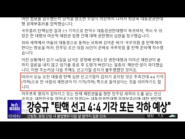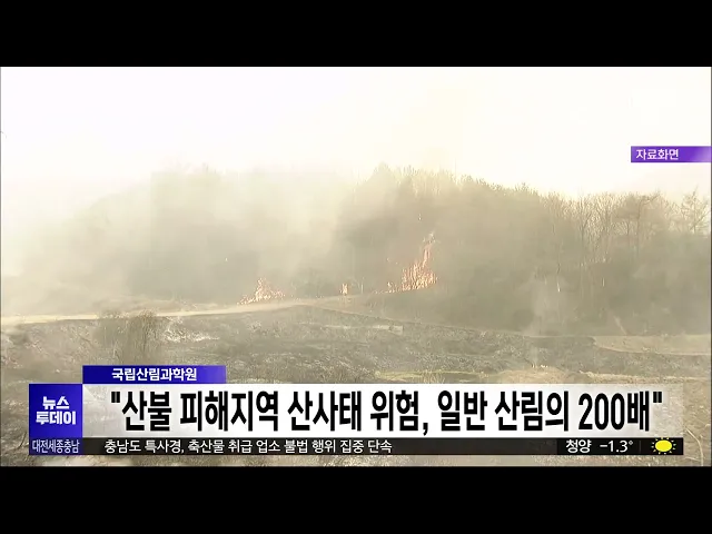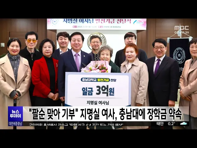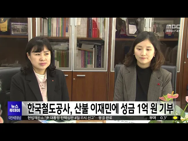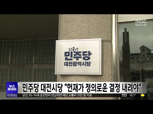 뉴스투데이 뉴스데스크뉴스투데이뉴스데스크 VOD(전체 다시보기)뉴스투데이 VOD(전체 다시보기)유튜브뉴스페이스북 뉴스카카오톡 뉴스인스타그램 뉴스 prev 2025.4.2 - 수요일 next 대전교육청, 학교 내 불법 촬영기기 불시 점검 대전시교육청이 오는 23일까지148개 초·중·고교를 대상으로 경찰과 합동으로불법 촬영기기 불시 점검에 나섭니다.점검 대상은 지난해 104개 학교보다 42.8% 늘어난 것으로,열화상과 적외선 렌즈 탐지가 가... 김윤미 "대전교사 80% 이상 학교 CCTV 설치 의무 반대" 지난 2월 대전에서 발생한 고 김하늘 양 피살 사건 이후 추진되는 학교 CCTV 설치 의무화 법안과 관련해대전의 교사 80% 이상이 반대하는 것으로 나타났습니다.교사노조연맹이 실시한 설문 조사에 참여한... 문은선 대전문화재단, 산불 피해 복구 성금 510만 원 기부 대전문화재단 임직원들이경북 의성과 경남 산청 등에서 발생한 대형산불 피해 복구를 위한 성금 510만 원을사회복지공동모금회에 전달했습니다.이번 기부는 산불 피해지역 주민들의 생계지원과 주거 환경 ... 김윤미 세종시 공무원, 산불 피해 성금 모금..논산시도 특별모금 영남 지역을 덮친 산불로 대형 인명과 재산 피해가 난 가운데 세종시 공무원들이 산불 피해 복구를 위해 오는 4일까지 성금을 모금합니다.시는 공직자들의 기부금과 함께 산청과 의성, 울주 등 산불 복구 ... 문은선 "산불 피해지역 산사태 위험, 일반 산림의 200배" 최근 영남권에서 발생한 대형산불로2차 피해 우려가 커지는 가운데산불 피해 지역의 산사태 발생 위험이최대 200배 높다는 연구 결과가 나왔습니다.국립산림과학원이 2005년 산불이 난전북 남원지역을 5년... 문은선 "팔순 맞아 3억 기부" 지명실 여사, 충남대에 장학금 약속 윤근 여사가 평생 모은 40억 원 상당의 부동산을 최근 충남대에 기부한 데 이어팔순의 지명실 여사가 대학 측에 3억 원의 장학금 기부를 약속해 선한 영향력이 확산하고 있습니다.북한 출신으로 6.25 전쟁... 문은선 '나신걸 한글편지'·'평양성탈환도' 문체부 공모 선정 대전시립박물관이 소장한 '나신걸 한글편지'와한남대학교 중앙박물관의 '평양성탈환도'가문화체육관광부가 전국 박물관 소장품 발굴과홍보를 위해 추진하는 공모 사업에 선정돼 관람객들을 만납니다.'나신... 이승섭 송창주 이준열사기념관장 올해 유관순상 수상 어제 서울에서 열린 제24회 유관순상 시상식에서 송창주 이준열사기념관장이 유관순상을 수상했습니다. 송 관장은 이준 열사가 1907년 순국한 장소인 네덜란드 헤이그의 호텔이 재개발로 헐릴 위기에 처하... 최기웅 강승규 "탄핵 선고 4:4 기각 또는 각하 예상" 오는 4일로 공지된 윤석열 대통령에 대한 탄핵 심판 선고 기일과 관련해국민의힘 강승규 의원이선고 결과를 기각 또는 각하로 예상했습니다.강 의원은 SNS에 올린 글에서"불투명했던 선고기일이 갑자기 공... 김윤미 민주당 대전시당 "헌재, 지체 없이 정의 선고해야" 윤석열 대통령의 탄핵 심판 선고일이오는 4일로 지정된 가운데더불어민주당 대전시당이 논평을 내고"헌법재판소가 오직 헌법과 법률, 그리고 국민의 명령에 따라 지체없이 정의로운 결정을 내려야 한다"고... 박선진 예산군 8년 만에 소아청소년 전문의 진료 개시 예산군에서 지난 2017년 이후 없어졌던 소아청소년과 전문의 진료가, 다시 시작됐습니다. 예산군은 예산종합병원 전문의 인건비 연간 3억 원 중 2억 천만 원을 지원하면서 소아청소년과가 진료를 시작했다... 최기웅 태안군, 지난해 3분기 체류 인구 182만 명 집계 태안군은, 피서철을 포함한 지난해 3분기, 월 한 차례, 하루 3시간 이상 태안에 머문 체류 인구가, 182만 6천여 명으로 집계됐다고 밝혔습니다.등록인구 대비 체류 인구는 9.4배로 충남에서 가장 많았으며... 김지훈 반복되는 산불 재난...농촌 고령화의 그늘/투데이 ◀ 앵 커 ▶전국을 휩쓴 대형 산불의 희생자 대부분은 고령층이었습니다.거동이 불편한 상황을 고려하지 않은일방적인 대피 안내가피해를 키웠다는 지적이 나오는데요.문제는, 이런 고령층의 신체적 제약이... 윤소영 '내란의 밤'부터 '선고 지정'까지...격동의 120일/투데이 ◀ 앵 커 ▶윤석열 대통령에 대한 탄핵심판 선고일,지난 2월 25일 마지막 변론 이후 35일이 지나서야 오는 4일로 잡혔는데요.비상계엄이 선포된 지난해 12월 3일 이후 시민들은 한겨울을 지나 봄까지 쉬지 ... 김광연 '운명의 금요일' 지정..."만장일치로 파면하라"/투데이 ◀ 앵 커 ▶헌법재판소가 윤석열 대통령에 대한 탄핵 심판 선고 기일을 이틀 뒤인모레 오전 11시로 정했습니다.넉 달째 거리로 나와 탄핵을 촉구해 온시민들은 늦었지만 다행이라며 다시 거리에 모여 '만장... 김성국 오늘 4·2 재보궐선거..투표율 관심/투데이 ◀ 앵 커 ▶아산시장 등을 뽑는 4·2 재보궐선거가 조금 전인 오전 6시부터 시작됐습니다.이번 선거는 윤석열 대통령의 탄핵 심판 선고를 이틀 앞두고 치러져민심의 향배에 관심이 쏠리는데요.탄핵 정국과 대... 이승섭