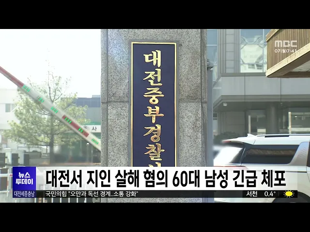 뉴스투데이 뉴스데스크뉴스투데이뉴스데스크 VOD(전체 다시보기)뉴스투데이 VOD(전체 다시보기)유튜브뉴스페이스북 뉴스카카오톡 뉴스인스타그램 뉴스 prev 2025.4.7 - 월요일 next 대전시, 소상공인 맞춤형 법률서비스 지원 대전시는 분쟁 사례가 늘고 있는 소상공인의 경영 안정을 위해, 맞춤형 법률 서비스를 지원합니다. 지원 대상은 연 매출 3억 원 이하의 소상공인으로, 상담 결과 분쟁 조정이나 소송 등 후속 절차가 필요... 윤소영 대전서 지인 살해 혐의로 60대 남성 긴급 체포 대전 중부경찰서는 지난 4일 새벽, 지인을 흉기로 살해한 혐의로 60대 남성을 긴급 체포했습니다. 이 남성은 사건 발생 다음 날 저녁 자수했고, 경찰 조사에서 교도소 출소 후 자립 지원 기관에서 만난 지... 윤소영 안희정, 성폭행 피해자에 '8,304만 원 배상' 확정 수행비서 성폭행 혐의로 형이 확정돼 복역을 마친 안희정 전 충남도지사가, 피해자에게 8천3백4만 원을 배상해야 한다는 법원 판결이 확정됐습니다. 피해자가 안 전 지사와 충남도 등을 상대로 제기한 손... 윤소영 청년 창업 기업 공공사업 참여 기회 확대 청년 창업 기업이 지방자치단체의 공공사업에 참여할 기회가 더 늘어날 전망입니다. 정부가 최근 연 제15차 청년정책조정위원회에서는 청년 창업 기업과 지자체 사이에 체결할 수 있는 수의계약 허용 금액... 최기웅 대전 중구, 한화생명 볼파크 인근 불법주정차 집중 단속 '대전 한화생명 볼파크' 인근 불법 주정차로 주민 불편이 잇따르는 가운데, 오는 11일 홈경기부터 집중 단속이 이뤄집니다. 대전 중구는 경기 일인 평일과 주말 오후 시간대 골목길과 이면도로 등을 중심... 윤소영 천안아산역 방음벽 설치 본격 추진 천안아산역 철도 소음으로 지역 주민 불편이 이어지면서 충남도가 민선 8기 역점사업으로 내건 천안아산역 방음벽 설치 사업이, 본격 추진됩니다. 국가철도공단은 지난달 실시설계 계약을 체결했으며 오는... 최기웅 서산시, 바지락 피해 어장 복구 본격 착수 지난해 고수온 현상으로 가로림만과 천수만 일대 바지락 어장에서 대규모 폐사가 발생한 것과 관련해, 서산시가 어장 복구에 본격 착수했습니다. 서산시는 피해를 입은 13개 어촌계를 대상으로 폐 패각을 ... 최기웅 내포 농생명 클러스터 조성 사업 행안부 심사 통과 충남도가 추진 중인 '내포 농생명 융복합산업 클러스터 조성 사업'이, 행정안전부 중앙투자심사를 통과해, 사업 추진에 청신호가 켜졌습니다. 도는 예산군 삽교읍 일원에 166만 7천㎡ 규모의 농생명 융복... 최기웅 성심당 지난해 매출 1천 9백억 원...사상 최대 실적 대전 지역 대표 빵집인 '성심당'이, 지난해에만 1천9백억 원이 넘는 매출을 올리며, 사상 최대 실적을 기록한 것으로 나타났습니다. 금융감독원 전자공시시스템에 따르면, 지난해 성심당의 매출은 전년 1... 윤소영 尹 파면..정치권 조기대선 앞으로/투데이 ◀ 앵 커 ▶ 안녕하십니까 뉴스투데이 대전세종충남입니다. 윤석열 전 대통령 파면으로, '조기대선'이 현실이 됐습니다. 대선까지 두 달 밖에 남지 않아, 지역 정치권도 곧바로 대선 체제로 전환합니다. 더... 문은선