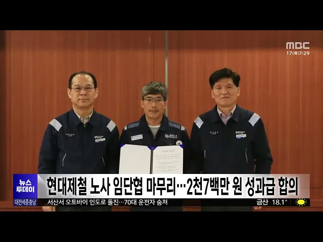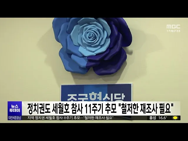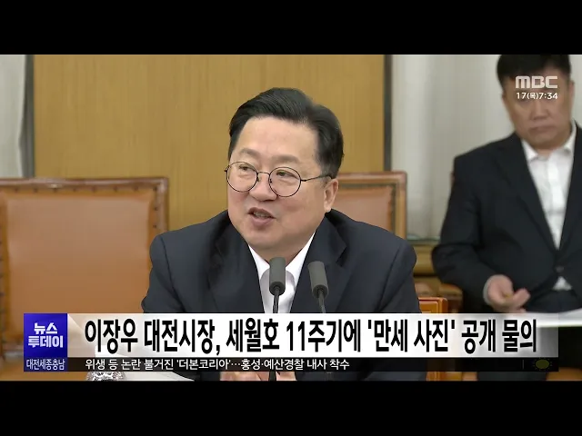 뉴스투데이 뉴스데스크뉴스투데이뉴스데스크 VOD(전체 다시보기)뉴스투데이 VOD(전체 다시보기)유튜브뉴스페이스북 뉴스카카오톡 뉴스인스타그램 뉴스 prev 2025.4.17 - 목요일 next 임대형 공동주택 유사 단체 계약 주의해야 최근 조합원을 대상으로 하는 협동조합형 민간임대주택을 내세운 임대형 공동주택 유사 단체가 늘고 있어 계약 시 주의가 요구됩니다.천안시는 민간건설 임대주택 입주위원회·협동조합 발기인은 법적 근거... 문은선 '내포 의료시설' 도의회서 제동..담당 국장 대기발령 충남도가 홍성·예산 내포신도시에 487억 원을 들여, 오는 2028년까지 소아진료 중심 병원을 건립하려던 계획에제동이 걸렸습니다. 충남도의회 행정문화위원회는 도가 의료기관 부지 매입을 위해 제출한 '2... 최기웅 민주당 충청권 순회 경선 시작..이재명 오늘 대전 방문 더불어민주당이 충청권을 시작으로 제21대 대통령 선거 후보를 선출하기 위한 권역별 순회 경선에 들어갔습니다.민주당은 오는 19일까지당원을 대상으로 온라인 투표를 진행하며이번 주말 충북 청주체육관... 김윤미 '여신도 성폭행' JMS 정명석, 강제추행 등 혐의 추가 기소 여신도들을 성폭행하고 강제 추행한 혐의로 징역 17년을 확정받은 JMS 총재 정명석 씨가 같은 혐의로 추가 기소됐습니다.대전지검은 형이 확정된 사건과 별개로지난해 5월과 11월에 정 씨를 추가 기소한 ... 김광연 故 김하늘 양 향해 악성 댓글 남긴 40대 검찰 송치 대전경찰청이 대전의 한 초등학교에서 교사에게 살해당한 고 김하늘 양을 향해 악성 댓글을 남긴 혐의로 40대 피의자를 불구속 송치했습니다.피의자는 사건 다음 날인 지난 2월 11일 온라인 포털 기사에 ... 김지훈 위생 등 논란 불거진 '더본코리아'...경찰 내사 착수 백종원 대표가 이끄는 더본코리아가각종 위생 문제와 농지법 위반 의혹 등이제기되자 경찰이 내사에 착수했습니다.홍성경찰서는 지난 2023년 11월 더본코리아가 기획한 홍성바비큐축제에서 납품된 생고기... 김성국 이장우 대전시장, 세월호 11주기에 '만세 사진' 물의 세월호 참사 11주기를 맞아 전국적인 추모 분위기 속에 이장우 대전시장이 만세하는 사진을 촬영한 뒤 언론에 공개해 물의를 빚고 있습니다.이 시장은 어제 대전현충원에서 진행된세월호 참사 추모 행사... 김지훈 지역 정치권도 세월호 참사 11주기 일제히 추모 세월호 참사 11주기를 맞아 지역 정치권에서도 추모의 목소리가 이어졌습니다.민주당 대전시당은 논평을 내고"안전 불감증과 시스템 부재가 빚은 사회적 재난인 세월호 참사의 아픔은11년이 지난 지금도 ... 김윤미 독립기념관, 초중고에 디지털 교육자료 추가 보급 독립기념관이 독립운동사 교육을 위해전국 초중고교에 보급하는 교육교재에디지털 키트를 추가 개발해 보급합니다.기념관은 다음 달 6일까지 신청을 받아 외국인 독립운동가 프레드릭 아서 맥켄지와 시인... 문은선 현대제철 노사 임단협 마무리 "2,700만 원 성과급 합의" 현대제철 노사가 7개월 만에 임금·단체 협약을 마무리했습니다.당진을 포함한 현대제철 노조 5개 지회는임금 10만 원 인상과 평균 2천7백만 원 규모의 성과급 지급을 담은 잠정 합의안을 조합원 찬반 투표... 윤소영 4월 중순 강설·저온·강풍 삼중고..배 인공수분 '비상' 지난 주말 이어진 강설과 강풍, 이상 저온 등 기상 이변으로 배 주산지에 피해가 잇따라 인공수분 작업에도 비상이 걸렸습니다.아산시는 개화기에 접어든 배 과수원에서 약제 살포와 꽃따기 작업 등에 차... 김윤미 세종시, 민관협력 배달앱에 온누리상품권 결제 도입 세종시가 소비자와 소상공인의 상생을 위해지원하는 민관협력 배달앱 '땡겨요'에 온누리상품권 결제 기능을 도입했습니다.시는 그동안 골목형 상점가와 전통시장 중심으로 사용처가 제한됐던 디지털 온누... 김윤미 대덕특구 재창조 거점 '마중물 플라자' ETRI에 착공 과학도시 대전의 정보통신기술 창업과 시민 교류의 거점이 될 ‘마중물 플라자’가 착공했습니다.대전시가 한국전자통신연구원 부지에 337억 원을 투입해 내년 말 완공 예정인 '마중물 플라자'는 지상 5층 ... 이교선 대전도시철도 2호선 트램 정거장 45곳 명칭 의견 수렴 대전시가 도시철도 2호선 트램 정거장 45곳의 명칭에 대해 시민 의견 수렴에 나섭니다.이번 트램 정거장 명칭 의견 수렴은 온라인 '대전시소' 등에서 가능하며, 시 지명위원회 심의를 거쳐 10월 중 확정될... 이교선 갈등 넘어 통합으로 <최병욱 전 한밭대 총장/교수>/투데이 ◀ 앵 커 ▶극단적 분열과 갈등을 풀고통합과 화합으로 대한민국이 나아가야 할방향을 찾는 기획보도 순서입니다.이번 대통령 탄핵 과정에선MZ로 대변되는 젊은 세대들의 에너지가긍정적인 평가를 많이 받았... 문은선 '통미역이 뭐길래' 급식 갈등 장기화/투데이 ◀ 앵 커 ▶대전의 일부 학교에서 급식 조리원과 학교, 교육청의 갈등이 장기화하고 있습니다.노동 강도를 낮춰달라고 요구하는 조리원들이 통미역 조리 등을 거부하며 급식 중단 사태가 벌어지고 있는 건데... 문은선 "다시 4월 16일"...끝나지 않은 11년 전의 약속/투데이 ◀ 앵 커 ▶세월호 참사가 일어난지 11