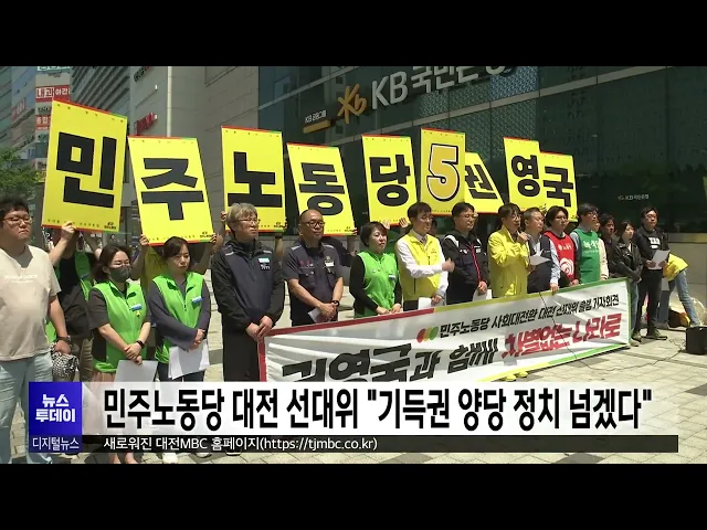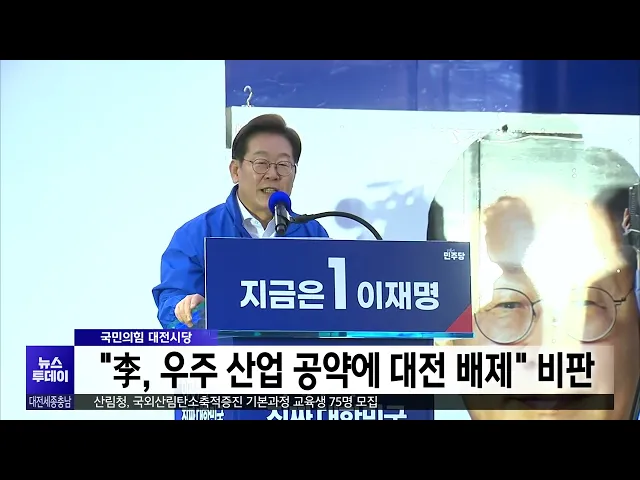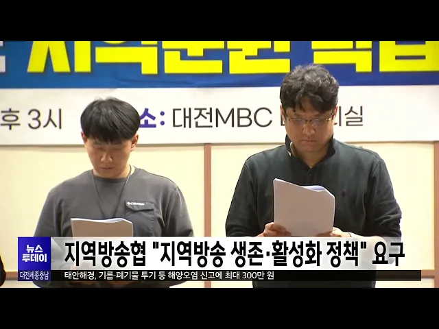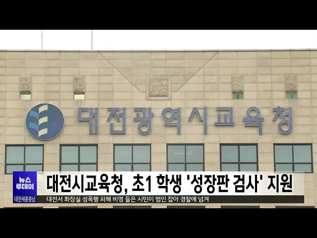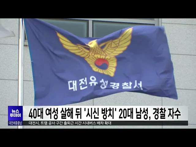 뉴스투데이 뉴스데스크뉴스투데이뉴스데스크 VOD(전체 다시보기)뉴스투데이 VOD(전체 다시보기)유튜브뉴스페이스북 뉴스카카오톡 뉴스인스타그램 뉴스 prev 2025.5.13 - 화요일 next 대전시, 트램 공사 구간 출퇴근 시간 시내버스 배차 확대 대전시가 도시철도 2호선 트램 공사가 진행되는구간에서 출퇴근 시간에 시내버스 배차를늘립니다.시는 내일(13)부터 도시철도 2호선 1·2공구인대덕구 읍내삼거리에서 중리네거리 구간을경유하는 시내버스 ... 이승섭 연인 관계 40대 여성 살해 뒤 경찰 자수 20대 입건 대전 유성경찰서는 연인 관계로 추정되는40대 여성을 살해한 혐의로 20대 남성을 붙잡았습니다.이 남성은 그제 오후 5시 40분쯤112에 전화해 "며칠 전 여자친구를 살해했다"고 자수했고, 신고를 받고 출동... 김성국 대전 상가 화장실서 성폭행 시도한 30대 시민에 검거 대전대덕경찰서가 지난 9일, 대전의 한 상가건물 화장실에 침입해 일면식 없는 여성을 성폭행하려 한 혐의로 30대 남성을 구속했습니다.해당 남성은 피해자의 비명 소리를 들은 시민에게 현장에서 붙잡혀 ... 윤소영 소방관 명함 위조해 5천만 원 요구..."대리 구매 사기 주의" 공공기관을 사칭한 사기 행각이 잇따르는 가운데, 천안에서 소방관을 사칭해 자영업자에게 5천만 원 상당의 방화복 대리구매를 요구한 사건이 적발됐습니다.천안서북소방서는 실제 소방관의 명함까지 위조... 윤소영 세종문화관광재단, 대표이사 공모 이어 직원 채용도 부적절 대표이사 공모 업무를 부당하게 처리해감사원 지적을 받은 세종문화관광재단이직원 채용도 부적절하게 처리해 온 것으로 나타났습니다.최근 세종시 감사위원회는 세종문화관광재단이 개방형 직위 자리를 ... 김윤미 감사원 "당진시 부실한 지반 조사로 제방 붕괴 초래" 감사원은 당진시가 하천 정비 사업을 추진하면서 부실한 지반 조사로 제방 붕괴 사고를 초래했다며 관련 공무원 4명에게 주의를 촉구했습니다. 감사원에 따르면 당진시는 지난 2017년 서원천 교량 건설을 ... 최기웅 대전시교육청, 초1 학생 성장판 검사 지원 대전시교육청이 성장 관리가 필요한학생을 대상으로 '성장판 검사'를 지원합니다.대상은 초등학교 1학년 학생 중 희망자 약 천 명으로, 대전 을지대병원에서X-ray 촬영 등을 통해 뼈 나이, 성장속도 등을... 문은선 세종시 신도심에 상업·주택 용지 등 재공급 세종시 신도심에 수년 만에 상업·주택·주차 용지가 재공급됩니다.상업용지와 주택용지는 각각 6-4 생활권2필지와 6-3생활권 1필지로, 지난 2022년과 2021년 최초 공급 후 재공급하는 토지로 오는 21일부터... 문은선 천안시 등 '중부권 동서횡단철도' 촉구 릴레이 챌린지 동참 천안시와 아산시 등 중부권 동서횡단철도노선이 지나는 13개 시군 지방자치단체장들이제5차 국가철도망 구축계획 반영을 촉구하는 릴레이 챌린지를 진행 중입니다.김석필 천안시장 권한대행은 오세현 아산... 문은선 충남 인구 감소 지역·기회 특구 '취득세' 대폭 감면 충남도가 인구 감소 지역에서 주택을 구입하는 주민과 수도권에서 기회 발전 특구로 이전하는 기업에 대해 취득세를 각각 대폭 감면합니다. 이에 따라 인구 감소 지역인 공주, 보령 등충남 9개 시·군에서 ... 최기웅 지역방송협의회 "지역방송 생존·활성화 정책" 요구 전국의 지역MBC와 지역민영방송의 노동조합이함께 하는 지역방송협의회가 이번 대선에 나선각 후보와 정당에 지역방송의 생존과 활성화를 위한 정책을 요구하는 결의문을 발표했습니다.지역방송협의회는 ... 이승섭 경찰, 선거경비 통합상황실 24시간 운영 제21대 대통령 선거 운동이 시작된어제부터 개표 종료까지 대전과 세종, 충남 경찰청이 '선거 경비 통합상황실'을 24시간 가동합니다.상황실은 후보자를 비롯한 주요 인사들의 신변을 보호하고, 투·개표소... 김성국 민주노동당 대전시당 선대위 출범 "기득권 양당 정치 넘겠다" 민주노동당 대전시당이 제21대 대선 공식 선거 운동 첫날인 어제, 대전 은하수네거리에서 선거대책위원회를 출범했습니다.민노당 대전시당은 "기득권 양당 정치를 넘어정치 대안으로 우뚝 서겠다"며"권영... 이승섭 국민의힘 대전시당 "李, 우주 산업 공약에 대전 배제" 비판 국민의힘 대전시당이 논평을 내고,더불어민주당 이재명 후보의 항공 우주 산업 공약에 대전이 빠진 건 '팥 없는 찐빵'과 다름없다고 비판했습니다.국민의힘은 "대전 지역 민주당 의원들이우주 산업에서 대... 이승섭 '대전 프로스포츠 전성시대'/투데이 ◀ 앵 커 ▶우리 지역 스포츠 소식을 전해드리는스포츠 톡톡 시간입니다.대전을 연고로 한 프로야구 한화이글스와K리그1 대전하나시티즌이 나란히 리그 1위를달리며, '대전의 전성시대'를 열었습니다.한화이... '비상계엄·탄핵' 겪은 MZ의 선택은?/투데이 ◀ 앵 커 ▶이번 대선은 12·3 비상계엄그리고 대통령 탄핵에서 비롯됐죠.지난겨울 광장에서 대통령 탄핵을 이끌었던10대부터 30대까지 일명 MZ세대에게그래서 이번 대선은 의미가 남다를 수밖에없을 텐데요.... 문은선 김문수도 '대전행'..."국회&대통령실 이전·CTX 추진"/투데이 ◀ 앵 커 ▶김문수 국민의힘 대선 후보도 선