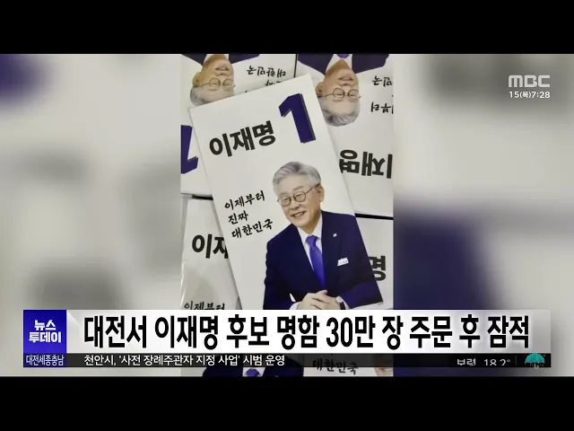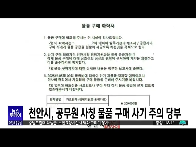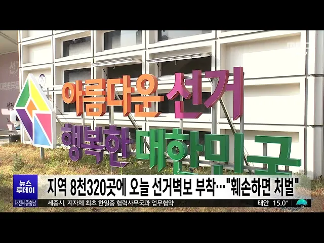뉴스투데이 뉴스데스크뉴스투데이뉴스데스크 VOD(전체 다시보기)뉴스투데이 VOD(전체 다시보기)유튜브뉴스페이스북 뉴스카카오톡 뉴스인스타그램 뉴스 prev 2025.5.15 - 목요일 next 천안시, '사전 장례주관자 지정 사업' 시범 운영 고령화와 1인 가구 증가로무연고 사망에 대한 우려가 큰 가운데천안시가 생전에 장례를 맡아 줄 사람을미리 정하는 '사전 장례주관자 지정 사업'을 시범 운영합니다.지정 대상은 가족은 물론, 지인도 가능... 문은선 "평일 새벽·휴일도 가능" 부여군 24시간 돌봄서비스 추진 부여군이 평일 야간이나 새벽을 비롯해 휴일에도 보육서비스를 제공하는 365일 24시간 돌봄서비스 운영에 나섭니다.부여군은 취약 시간대 보육 부담을 덜어주고자6개월 이상부터 7살 이하 영유아를 대상... 김윤미 '슈퍼컴 6호기' 구축 본격화..내년 상반기 도입 고성능 그래픽처리장치, GPU 8천496장을탑재하는 국가 초고성능 컴퓨터, 이른바 '슈퍼컴퓨터' 6호기 구축이본격적으로 추진됩니다.과학기술정보통신부는 GPU 가격 폭등으로여러 차례 유찰을 겪은 끝에 이... 김윤미 대전시·ETRI, 자율주행 협력 통신 기술 실증 나서 대전시와 한국전자통신연구원, ETRI가자율주행 협력 통신 기술을 실증하기 위한정부의 공모 사업에 선정돼 국비 45억 원을 확보했습니다.이에 따라 연구원은 협력 주행과 원격 제어 등 핵심 서비스를 개발... 이승섭 세종시, 지자체 최초 한일중 3국 협력사무국과 업무협약 세종시가 한일중 3국 협력사무국과 민간 교류 증진을 위한 업무협약을 맺고 청년 외교 인재 유치와 한글문화 확산 등에 본격적으로 나섭니다.한일중 3국 협력사무국은 3개 국가 정부가 공동으로 출자해 설... 김윤미 국립세종수목원, 오는 17일부터 10월까지 야간 개장 국립세종수목원이 오는 17일부터 오는 10월 11일까지 야간에도 문을 열고 관람객을 맞습니다.수목원은 사람과 자연이 함께 어우러지는 따뜻한 수목원을 주제로, 레이저 등을 활용한 미디어아트 쇼와 AR 체... 김윤미 세종시 1차 추경 1,260억 원..'빛축제 예산' 다시 편성 세종시가 아동수당과 부모급여 등 복지 분야 지원을 확대하고 지역화폐 발행을 늘리는 방향으로 1,260억 원 규모의 올해 1차 추가경정예산안을 편성해 시의회에 제출했습니다.기존 대전세종연구원에서 ... 김윤미 세종 폐업한 웨딩홀에서 불...인명피해 없어 어제 오후 5시 30분쯤, 세종시 조치원읍의 한 폐업한 웨딩홀 5층에서 불이 나 10여 분 만에 꺼졌습니다.인명피해는 없었고, 공실에 쌓여 있던 폐자재 일부가 불에 탔습니다.경찰과 소방당국은 정확한 화재... 조형찬 대전교사노조 "설문서 대전 교사 61.1% 사직 고민 스승의 날을 앞두고 대전지역 교사의 60%가 최근 1년 이내에 사직을 고민한 적이 있다는설문 조사 결과가 나왔습니다.대전교사노조는 최근 전국적으로 8천여 명의 교사들이 참여한 설문 조사 결과, 대전의... 김윤미 민주당 박수현 '한덕수 방지법' 발의 더불어민주당이 최근 국민의힘의 후보 단일화 과정에서 발생한후보 강제 교체 사태 재발 방지를 위해이른바 '한덕수 방지법'을 추진합니다.민주당 박수현 의원이 대표 발의한공직선거법 개정안에는 후보자... 문은선 이재명 "해양수산부 부산 이전"...국민의힘 반발 더불어민주당 이재명 대선 후보가세종시에 있는 해양수산부를 부산으로 옮기겠다고 다시 한번 공약해 지역 정치권이 반발하고 있습니다.이재명 후보는 어제, 부산 유세에서"부산의 해양 수도화를 위해 해... 이승섭 천안시, 공무원 사칭 물품 구매 사기 주의 당부 천안시가 최근 시 공무원을 사칭하며 공문서를 위조해 소상공인에게 납품을 요청하는 사기 범행이 발생해 경찰에 수사 의뢰했다고 밝혔습니다.시 조사 결과 천안시 명의로 작성된 물품구매확약서는 위조 ... 김지훈 이재명 후보 명함 주문 후 송금 유도..민주당 "이미지 타격 노린 범행" 이재명 더불어민주당 대선 후보 관계자를사칭해 명함 등 선거용품을 대량 주문한 뒤 송금을 유도하는 사기 행각이 대전에서 발생했습니다.대전의 한 인쇄 업체는 지난 10일, 이재명 후보의 명함 30만 장을... 김지훈 지역 8,320곳에 오늘 선거벽보 부착 "훼손하면 처벌" 제21대 대통령선거 후보자의 선거벽보가 오늘부터 유권자의 통행이 많은 장소의 건물이나 외벽 등 대전과 세종, 충남의 8천320곳에 부착됩니다.선거벽보에는 유권자가 거리에서 후보자 정보를 쉽게 파악할... 김윤미 "반려견과 함께 오세요"..국내 첫 '댕댕이 전시회'/투데이 ◀ 앵 커 ▶반려견과 함께 전시장을 걸으며그림을 감상할 수 있는 야외 전시가 우리 지역에서 열렸습니다. 12명의 발달장애 예술인들이 강아지를 위해 그들의 세상을 상상하며 그린 작품을 강아지와 함께 ... 박선진 '임시방편' 하천 준설..."이젠 확실한 처방을"/투데이 ◀ 앵 커 ▶팩트체크 뉴스참에서대전시가 집중호우 때 하천 범람을 막겠다며 추진한 3대 하천 준설 사업을 검증한 결과,그 효과가 불명확한 것으로 나타났습니다.170억 원을 들여 쌓인 흙을 퍼내고 있지만또... 윤소영 "사유지를 275억 원에?"...대전시 그린벨트 매입 논란/투데이 ◀ 앵 커 ▶대전시가 추진 중인 보문산권역 자연휴양