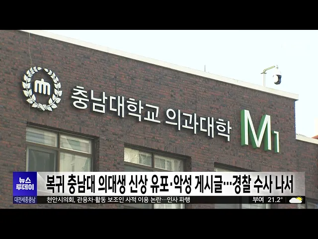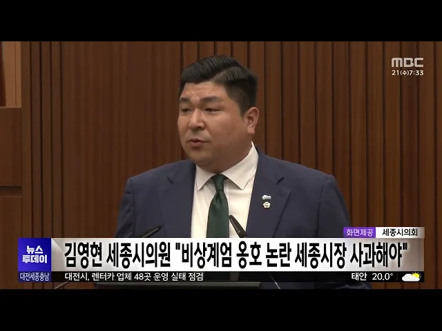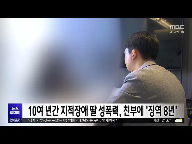 뉴스투데이 뉴스데스크뉴스투데이뉴스데스크 VOD(전체 다시보기)뉴스투데이 VOD(전체 다시보기)유튜브뉴스페이스북 뉴스카카오톡 뉴스인스타그램 뉴스 prev 2025.5.21 - 수요일 next 산림청, 2029년까지 밀원수림 2만 ha 추가 조성 산림청은 꿀벌 보호와 양봉산업 활성화를 위해, 오는 2029년까지, 밀원수림 2만 ha를 추가 조성합니다. 산림청은 지난 5년간 백합나무, 헛개나무, 벚나무 등을 밀원수림으로 심었고 이 사업이 끝나면 2020... 문은선 10여 년간 지적장애 딸 성폭력 친부, 징역 8년 선고 대전MBC가 보도한 10여 년간 지적장애 딸을 상대로 성폭력을 저지른 혐의로 기소된 친아버지 사건에 대해, 중형이 선고됐습니다. 대전지법 천안지원 제1형사부 전경호 판사는 장애인 위계 간음 등의 혐의... 김성국 "산불 피해목 활용" 대전에 국내 최고층 목조건축물/투데이 ◀ 앵 커 ▶ 우리나라에서 가장 높은 목조건축물은 몇 층일까요? 대전에 높이 28m, 7층짜리 국내 최고층 목조건축물이 선보였습니다. 30톤 화물차로 50대 분량의 목재가 사용됐는데, 지난 2022년 동해안 산... 김윤미 충남교육청, 공무직 순환 전보 추진..노조, 법원에 가처분 신청 충남도 교육청이, 영양사와 조리실무사 등 교육공무직 3천 9백여 명을 대상으로 순환 전보 제도 도입을 예고하자, 학교 비정규직노조 등이 반발하고 나섰습니다. 도교육청이 입법 예고한 '교육공무직원 전... 최기웅 '글로컬 도전' 지역대 21~22일 예비지정 평가 이달 말 교육부의 글로컬대학 30 마지막 예비지정 결과 발표를 앞두고, 이번 주 지역대학에 대한 평가가 진행됩니다. 오늘은 공주대와의 통합안을 낸 충남대와 한밭대, 연합 형태의 목원대·배재대· 대전과... 문은선 복귀 충남대 의대생 신상 유포·악성 게시글…경찰 수사 나서 의사·의대생 커뮤니티인 '메디스태프'에, 충남대 의대에 복귀한 학생들의 신상이 유포되고 악성 댓글이 이어진다는 신고가 들어와, 경찰이 수사에 착수했습니다. 대전 유성경찰서에 따르면 경찰은 지난달 ... 김지훈 논란의 지천댐, 여론조사로 운명 결정?/투데이 ◀ 앵 커 ▶ 정부의 기후대흥댐 후보지 가운데 하나인 청양 지천댐 건설을 둘러싸고, 논란이 계속되고 있는데요. 김태흠 충남지사가, "몇 명 때문에 미래가 막히면 안된다"며, 대선 전인 이달 내... 최기웅 어제부터 대선 재외투표..투표안내문 24일까지 세대 발송 제21대 대통령을 뽑기 위한 재외투표가 어제부터 오는 26일 정오까지, 전 세계 118개국 재외공관 등에 마련된 223개 투표소에서 실시됩니다. 한편, 대전과 세종, 충남선관위는 대선 후보자가 제출한 책자... 김윤미 김충식 세종시의원 "행정수도 국민과의 약속..해수부 이전 반대" 세종시의회 김충식 의원이, 행정수도 완성을 위한 정치권의 책임 있는 자세와, 해양수산부 부산 이전 논란에 대한 세종시의 단호한 대응을 촉구했습니다. 김 의원은 시의회 본회의 5분 발언에서 "행정수도... 문은선 '기재부 분리'에 인건비 등 5년간 476억 원 추산 이번 대선과 맞물려 더불어민주당과 개혁신당이 추진 의지를 보이는 기획재정부 기능 분리에, 5년간 470억 원 이상이 필요하다는 추계 결과가 나왔습니다. 국회예산정책처는 민주당 오기형 의원이 대표 발... 김윤미 대선 2주 앞...표심은 잠잠/투데이 ◀ 앵 커 ▶ 21대 대통령선거가 2주 앞으로 다가왔습니다. 과거 대선을 보면, 신행정수도 공약 등으로 판세가 요동칠 때이지만, 이번만큼은 딱히 이런 메가톤급 공약이 눈에 띄지 않는데요. 엇비슷한 공약 ... 이교선 김영현 세종시의원 "비상계엄 옹호 논란 세종시장 사과해야" 더불어민주당 소속 김영현 세종시의원이, 윤석열 전 대통령의 비상계엄을 옹호했다는 논란을 빚은 최민호 세종시장에게, 공개 사과를 촉구했습니다. 김 의원은 시의회 본회의 5분 발언을 통해 "최 시장이 ... 김윤미 '징계 거부·잦은 구설' 지방의회 왜 이러나/투데이 ◀ 앵 커 ▶ 대통령 탄핵 정국을 거치며 심해진갈등과 대립 일색의 정당 정치가, 중앙에 이어 지방에서도 그대로 재현되고 있습니다. 지방의회 의원들의 제 식구 감싸기, 상대 정당끼리의 끝 모를 갈등, 여... 문은선