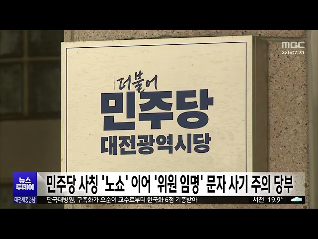 뉴스투데이 뉴스데스크뉴스투데이뉴스데스크 VOD(전체 다시보기)뉴스투데이 VOD(전체 다시보기)유튜브뉴스페이스북 뉴스카카오톡 뉴스인스타그램 뉴스 prev 2025.5.22 - 목요일 next 13개월째 임시방편..고스란히 드러난 '난맥상'/투데이 ◀ 앵 커 ▶ 과학기술분야 정부출연 연구기관의수장은, 연구 정책과 방향을 결정하는 중요한 자리인데요. 한국 한의학 연구원이 13개월째 후임 원장을 선임하지 못해, 전 원장이 1년 넘게 재임하는 비정상적... 박선진 산림청, 산림 내 불법행위 집중 단속 산림청은 오늘 생물 다양성의 날을 맞아, 이달 말까지 산림 내 불법행위를 집중 단속합니다. 이번 단속에선 산림유전자원보호구역 내에서 허가 없이 벌채나 산나물·산약초 등 임산물 채취, 형질 변경 행위... 문은선 처남 허위 채용해 보조금 가로챈 장애인단체 간부 집행유예 대전지법 5-3 형사부 이효선 부장판사가, 처남을 직원으로 허위 채용해 자치단체 보조금 436만 원을 가로챈 혐의로 기소된 장애인단체 간부에 대한 항소심에서, 징역 6월에 집행유예 2년을, 처남에게도 벌... 김광연 세종시, 6개 지자체와 '고향사랑기부제' 교차 기부 세종시가 고향사랑기부제의 모금 확대와 참여 유도를 위해, 인근 6개 지자체와 교차 기부를 추진합니다. 시는 지난해부터 공주시 등 4개 지자체와 교차 기부를 실시한 데 이어 올해는 대전 유성구와 금산... 김윤미 대전시, 지반 침하 사고 예방 대책 수립 대전시가, 최근 전국적으로 빈번한 지반 침하 사고를 예방하기 위한 대책을 내놓았습니다. 시는 올해 말까지 시내 하수관로 578km 구간과 차량 통행이 많은 지하차도 28km 구간에서 지표투과레이더로 지하... 이승섭 '환수 문화유산 기념박물관' 24일 아산서 개관 국내 최초로 환수 문화유산에 특화된 '환수 문화유산 기념박물관'이, 오는 24일 아산시 음봉면에 문을 엽니다. 박물관은 환수 유산 전시실과 청소년 체험형 전시관, 수장고 등으로 구성됐으며 일본과 미국... 박선진 육군 소장, 부하 성추행 혐의로 피소..대전경찰청 조사 중 현직 육군 소장이, 부하를 성추행한 혐의로 경찰 조사를 받는 것으로 드러났습니다. 대전경찰청은 지난달 초 육군 소장의 성 비위를 조사해달라는 고소장을 접수하고, 업무상 위력 등에 의한 추행 혐의로 ... 김지훈 대전 모 여고 담임 성희롱성 발언 신고..경찰·교육청 조사 중 대전의 한 여고 교사가, 담임반 학생들에게 성희롱성 발언을 했다는 신고가 접수돼, 경찰과 교육당국이 조사 중입니다. 대전시교육청은 지난 14일 3학년 학생 7명이 담임교사에게서 언어적, 신체적 수치심... 문은선 '부산 북항 재개발' 관련 수천만 원 챙긴 국토부 공무원 징역 4년 대전지법 제12형사부 김병만 부장판사가, 부산 북항 재개발 사업 관련 부지 취득을 도와주겠다며 , 개발업체로부터 수천만 원의 금전적 이득을 챙긴 혐의로 기소된 국토교통부 공무원에게, 징역 4년을 선... 김광연 1심서 법정구속 면한 김정규 회장..2심서도 징역 7년 구형/투데이 ◀ 앵 커 ▶ 수십억 원을 탈세한 혐의로 1심에서 징역 4년을 선고받은 김정규 타이어뱅크 회장에게, 검찰이 1심과 마찬가지로 징역 7년을 구형했습니다. 피고인 측은, 포탈 혐의 금액이 절반 이상 줄었는데,... 김광연 대전시, 우주기술 활용·바이오 혁신 특구 잇단 지정 대전시가, 중소벤처기업부가 주관하는 우주기술 연구·활용 특구와, 합성 생물학 기반 첨단 바이오 제조 글로벌 혁신특구로 각각 지정됐습니다. 우주기술 연구·활용 특구는 오는 2029년까지 유성구과 대덕... 이승섭 대전·충남 4개 대학, 소프트웨어 중심대학 선정 대전대와 목원대, 호서대와 한국기술교육대 등 대전, 충남 4개 대학이, 소프트웨어와 인공지능 분야 핵심 인재를 양성하는 소프트웨어 중심대학으로 선정됐습니다. 과학기술정보통신부는 일반트랙 특화 대... 김윤미 대전충남녹색연합 "3대 하천 준설로 생태계 파괴..이장우 시장 사퇴해야" 대전충남녹색연합 등 환경단체는 어제 성명을 내고, 대전시의 3대 하천 준설로 벌레떼가 출몰하고 있다는 대전MBC 보도와 관련해, 생태계 파괴에 대한 책임을 지라고 대전시에 촉구했습니다. 이들은 대규... 윤소영 홍성 성삼문 오동나무 '싹둑' 왜?/투데이 ◀ 앵 커 ▶ 조선 세조 때 단종 복위를 꾀했던 사육신 중 한 사람인 '성삼문' 선생의 이야기가 깃든 오동나무가, 홍성에 있습니다. 보호수로 지정해야 될 중요한 나무인데, 이 나무가 어찌된 일... 최기웅 국민의힘, 선대위 특보 임명장 발송 오류에 사과 국민의힘이 전국의 전현직 교사 다수에게, 대통령 선거 선거대책위원회의 특보 임명장을 잘못 발송해, 논란이 일었습니다. 해당 문자는 국민의힘 중앙선거대책위원회 명의로 발송돼 임명장을 내려받을 수 ... 이승섭 선거 벽보 훼손 고등학생 3명 입건...경찰 "신고 당부" 세종남부경찰서가, 지난 17일과 18일 세종시 보람동에 게시된 대통령 선거 벽보를 훼손한 혐의로, 10대 고등학생 3명을 입건했습니다. 지나던 시민의 신고로 붙잡힌 이들은 후보자 2명의 벽보를 담뱃불 등... 윤소영 민주당 사칭 '노쇼' 이어 '위원 임명' 문자 사기 확인 최근 더불어민주당을 사칭한 신종 