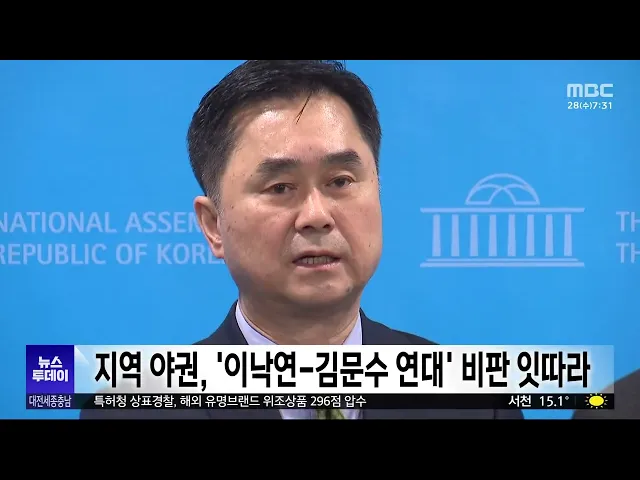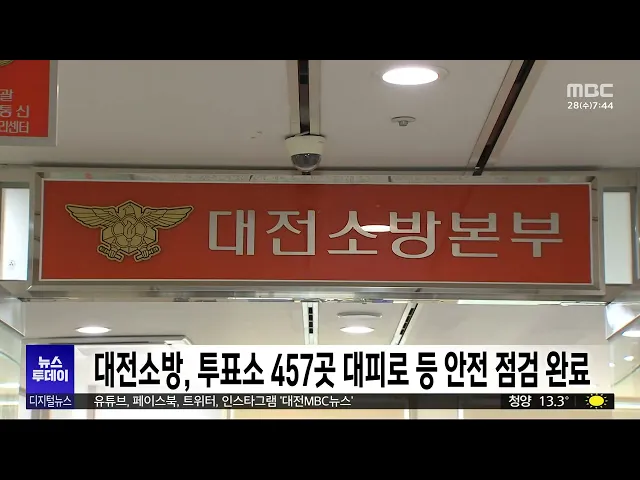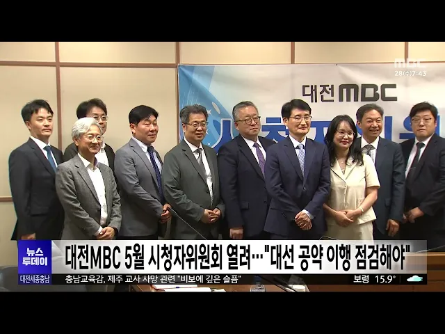 뉴스투데이 뉴스데스크뉴스투데이뉴스데스크 VOD(전체 다시보기)뉴스투데이 VOD(전체 다시보기)유튜브뉴스페이스북 뉴스카카오톡 뉴스인스타그램 뉴스 prev 2025.5.28 - 수요일 next 대전소방, 투표소 457곳 안전 점검 완료 제21대 대통령 선거를 앞두고 대전소방본부가 관내 투·개표소 457곳에 대한 사전 안전 점검을 완료했습니다.소방본부는 화재 예방과 재난 대비를 위해 소방시설 점검과 안전교육, 비상통로 확보 등을 중점... 이교선 대전 중구-부여군 상생 협력 업무 협약 대전 중구와 부여군이 어제, 부여군청에서 업무 협약을 맺고, 지역 상생·발전을 위해협력하기로 했습니다.두 지자체는 지역화폐와 도시재생,자치분권과 도농 상생협력 등의 다양한 분야에서 협력해 지역 ... 이승섭 대전MBC 5월 시청위 열려..."대선 공약 이행 점검해야" 대전MBC에서 열린 5월 시청자위원회에서 7명의 위원이 새로 위촉된 가운데, 신임 시청자위원장으로 배재대 김 욱 총장이 선출됐습니다.위원들은 토론 프로그램 시시각각이 조기 대선 국면에서 지역 공약에... 김지훈 충남대-공주대 등 7곳 글로컬대학 예비지정 5년간 천억 원을 지원하는 글로컬대학의 마지막 예비지정에대전, 충남에서는 7곳의 대학이포함됐습니다.교육부가 발표한 글로컬대학 예비지정 대학엔 통합 모델을 제시한 충남대와 국립공주대를비롯해 국... 문은선 세종 학생 자살 급증..교육청, 예방 종합방안 수립 코로나19 이후 우울감 등으로 세종지역 학생 자살 사건이 급증한 가운데세종시교육청이 학생 마음건강 증진과자살예방 종합대책을 발표했습니다.세종교육청은 지난 2022년과 2023년 각각 5명과 3명이었던 ... 문은선 세종경찰, 장비 입찰 비위 의혹 세종시청 압수수색 세종경찰청 강력마약범죄수사대는 어제 오후 세종시청을 압수수색했습니다.경찰은 지난 2019년 세종시청 6층에 있는 한 부서가 장비를 입찰하는 과정에서 비위가 있었다는 고발장을 접수받고, 관련 서류를... 김성국 부여 부소산성서 대규모 성토대지 확인 "백제 왕궁 위계 공간" 백제 사비시대 왕성인 부여 부소산성에서 대규모 성토대지와 건물지가 확인됐습니다.국가유산청 국립부여문화유산연구소는부소산성 평탄대지에 자리한 조선시대 군 식량 창고 터의 동쪽에 대한 발굴조사 ... 김윤미 세종시, 시도지사협의회에 행정수도 공감 확산 요청 이번 대선의 주요 대선주자들이 행정수도 완성을 공약으로 내건 가운데세종시가 공감대 확산에 힘을 쏟고 있습니다.최민호 세종시장은 최근 시도지사협의회 간담회에 참석해수도권 집중화로 인한 지방소멸... 김윤미 지역 야권, '이낙연-김문수 연대' 비판 잇따라 이낙연 새미래민주당 상임고문의김문수 국민의힘 대선후보 지지 선언과관련해 야권을 중심으로 지역 정치권에서 비판이 잇따르고 있습니다.세종시 갑의 무소속 김종민 의원은자신의 페이스북에 "설마 했는... 문은선 대선 D-6, 민주 김상욱-국힘 윤상현 지원 총력전 제21대 대선이 엿새 앞으로 다가온 가운데각 당이 충청권 표심 잡기를 위한 지원유세 총력전을 펼치고 있습니다.더불어민주당은 최근 민주당에 입당한 김상욱 의원을 비롯해 기본소득당 용혜인 의원, 진보... 박선진 충청권 유권자 20대 대선보다 8만여 명 증가 전국 선거에서 민심의 가늠자 역할을 해 온충청권 유권자 수가 지난 2022년 20대 대선보다 8만 명 이상 증가해 전체의 10.7%를 차지하는 것으로 집계됐습니다.행정안전부가 대선 선거인명부를 확정한 결과... 문은선 연일 매진 '한화'...티켓 사기도 잇따라/투데이 ◀ 앵 커 ▶리그 상위권을 달리며 안방에서 21경기연속 전 좌석 매진 기록을 세운 한화이글스.치솟은 인기에 좌석을 구하는 건 하늘의별 따기 수준인데, 이를 악용한 티켓 거래 사기가 잇따르고 있어 주의가... 김성국 공직사회 뇌물 파문.."구청장은 몰랐나?"/투데이 ◀ 앵 커 ▶입찰 계약 과정에서 뇌물을 받은 혐의로 대전 지역 공무원들이 무더기로 검찰에 넘겨져공직사회에 파문이 일고 있습니다.이번 사건에는 특히, 전 비서실장을 포함한 대전 서구의 공무원이 대거 ... 이승섭 암호화폐 투자 사기 기승..."이번엔 종교인 타깃?"/투데이 ◀ 앵 커 ▶얼마 전, 대전에서 열린 비트코인 투자 설명회가노후 불안이 큰 고령층을 노린투자 사기로 의심된다는 보도, 전해드렸죠.그런데 이번엔 종교인의 신앙을 미끼로 한암호화폐 투자 사기 정황이 천... 윤소영 너도나도 '행정수도'..실현 가능성이 관건/투데이 ◀ 앵 커 ▶세종시를 행정수도로 완성하겠다는 공약은 주요 대선 후보들이 앞다퉈 내놓으면서 사실상 충청권 대표 공약으로 떠올랐는데요.너도나도 행정수도를 띄우고 있는 만큼 당장 내일 시작될 사전투표... 김윤미