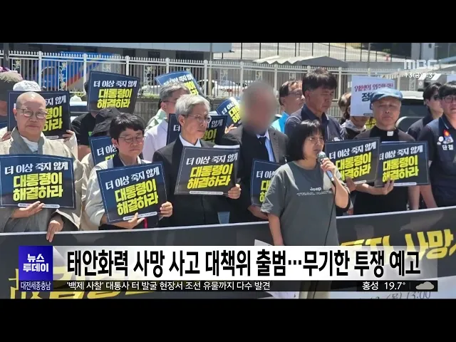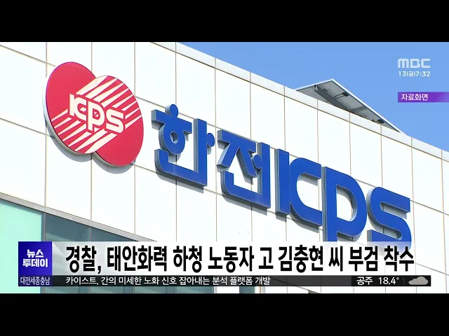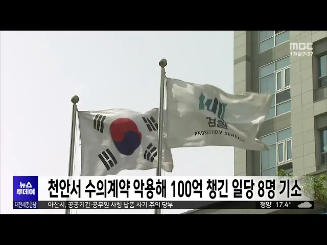 뉴스투데이 뉴스데스크뉴스투데이뉴스데스크 VOD(전체 다시보기)뉴스투데이 VOD(전체 다시보기)유튜브뉴스페이스북 뉴스카카오톡 뉴스인스타그램 뉴스 prev 2025.6.13 - 금요일 next 인터넷전문은행 소소뱅크 세종에 본사 등 설립 제4인터넷전문은행으로 설립 예정인소소뱅크가 세종에 본사와 주요 인프라를갖춥니다.세종시와 소소뱅크 설립준비위원회는 업무협약을 맺고 지역 주민과 소상공인을 위한특화된 금융 서비스를 제공하기로 ... 문은선 대전 여성채용박람회 개최..2개월간 사후관리도 제공 2025 대전 여성채용박람회가대전시청에서 열렸습니다.경력 단절 여성 등에게 실질적인 취업 기회를 제공하기 위해 열린 이번 채용 박람회는 여성 특화 서비스 등 71개 기업이 참여해 2백여 명의 여성 채용... 이교선 천안서 제77회 충남도민체전 개막..1만 1천여 명 참가 제77회 충남도민체육대회가 천안에서 개막해 나흘간 열전에 돌입했습니다.21년 만에 천안에서 다시 열린 충남도민체전 개회식은 오프닝 에어쇼를 시작으로, 공연과 15개 시군 선수단의 입장식, 성화점화, ... 문은선 아산시, 공공기관·공무원 사칭 납품 사기 주의 당부 아산시가 최근 공공기관이나 공무원을 사칭해 물품 납품을 요구하고 대금을 가로채는 신종사기 수법이 기승을 부리고 있다며 각별한 주의를 당부했습니다.시에 따르면 사기범들은 시에 근무하는 공무원인 ... 김지훈 천안서 수의계약 허점 악용해 100억 원 편취한 혐의로 일당 8명 기소 폐기물 매립 자재 입찰 과정에서 약 100억 원을 챙기고 공무원에게 뇌물을 제공한 혐의로 업체 대표와 전직 공무원 등이 무더기로 재판에 넘겨졌습니다.대전지검 천안지청 형사3부는 천안 소재 업체 대표... 이혜현 세종시, 여성 살해범 세종 야산 잠입 관련 입산 자제 당부 대구에서 스토킹하던 여성을 살해하고 달아난 40대 용의자가 세종시의 한 야산으로 도주해 경찰이 수색 중인 가운데 세종시가 시민들에게 주의를 당부했습니다.세종시는 "당분간 인적이 드문 장소 방문과 ... 김지훈 서산 노동자 비정규직 비율 43%..임금은 정규직의 57% 수준 충남 서해안 최대 도시인 서산의 노동자 가운데 비정규직이 차지하는비율이 40%를 웃돌고, 이들은 정규직의 절반을조금 넘는 수준의 임금을 받는 것으로나타났습니다.서산시가 진행 중인 '비정규직 실태조... 김지훈 경찰, 태안화력 하청 노동자 고 김충현 씨 부검 착수 지난 2일 한국서부발전 태안화력발전소에서 숨진 하청 노동자 고 김충현 씨 사고를 수사 중인 경찰이 정확한 사망 원인을 가리기 위해 시신 부검 절차에 착수했습니다.서부발전과 한전KPS 관계자 등을 소... 김지훈 "진상 규명하라"...태안화력 사망 사고 대책위 출범 태안화력발전소에서 발생한 고 김충현 씨사망사고와 관련해 진상 규명과 책임자 처벌을요구하기 위해 100여 개 단체가 참여한 대책위원회가 출범해, 정부와의 대화와 한국서부발전 등에 대한 처벌이 이뤄... 이혜현 대전판 리박스쿨? "선정 과정도 의혹"/투데이 ◀ 앵 커 ▶보수 성향의 기독교 단체가 청소년 상담·교육을 통해 특정 종교의성교육 관점을 전파할 수 있다는 우려를 어제 전해드렸는데요.지역 시민단체를 중심으로 이 단체가최근 문제가 된 극우성향의 '... 문은선 뇌물 수수 의혹 공무원 버젓이 근무/투데이 ◀ 앵 커 ▶입찰 계약 과정에서 뇌물을 받은 혐의로검찰 수사를 받는 대전 서구의 공무원들이 여전히 현직에서 근무하고 있어 논란을 키우고 있습니다.서철모 대전 서구청장은 검찰 수사를 지켜본 뒤징계나 ... 이승섭 퇴직하면 한 자리씩...'한전 마피아'의 하청 구조 굳히기/투데이 ◀ 앵 커 ▶태안화력발전소에서 숨진 김충현 씨, 6년 전 같은 곳에서 사고로 숨진 김용균 씨는 모두 하청 노동자였습니다.위험한 작업이 원청으로부터 하청, 재하청으로 전가되며, 근무 환경은 열악해질 수... 윤소영 '폭행 논란' 아산 종교단체..철거 명령도 무시/투데이 ◀ 앵 커 ▶최근 아산의 한 농원에 종교단체 신도들이무단으로 들어와 주인을 폭행한 사건,대전MBC가 단독으로 전해드렸죠.그런데 이 종교단체은 불법건축물을 사용해철거 명령이 내려졌지만 이행하지 않고 ... 김성국