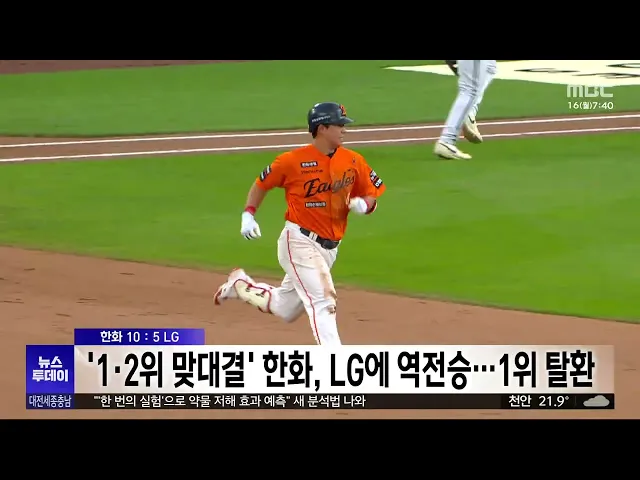 뉴스투데이 뉴스데스크뉴스투데이뉴스데스크 VOD(전체 다시보기)뉴스투데이 VOD(전체 다시보기)유튜브뉴스페이스북 뉴스카카오톡 뉴스인스타그램 뉴스 prev 2025.6.16 - 월요일 next "'한 번의 실험'으로 약물 저해 효과 예측" 새 분석법 나와 여러 약물을 복용했을 때 다른 약물의 효과에 영향을 주는 '약물 저해 효과'를, 단 한 차례 실험으로 정확히 예측하는 분석법을, 국내 연구진이 새롭게 제시했습니다. 카이스트와 충남대, 기초과학연구원... 김윤미 충남도, 자체 개발 백합 신품종 4종 서산서 판매 충남도 농업기술원이, 다양한 색상의 백합 신품종 4종을 개발해, 소비자들에게 선보입니다. 이번에 선보이는 품종은 밝고 경쾌한 황색 꽃이 특징인 '옐로우썬'과 국내에서 보기 드문 적자색 계열의 독특한... 윤소영 세종 국도변서 예초 작업하던 60대 차량에 치여 숨져 어제 오전 11시쯤 세종시 금남면 1번 국도 도로변에서, 공공기관이 발주한 예초 작업을 하던 60대가, 달리던 SUV 차량에 치여 숨졌습니다. 경찰은 사고를 낸 30대 운전자를 도로교통법상 안전운전 의무 위... 윤소영 대전 야구장 주변 상권 매출 46% 증가로 '전국 1위' 올 시즌 뜨거운 프로야구 열기로 역대 최소 경기 500만 관중을 달성한 가운데, 대전 한화생명볼파크 주변 상권 매출도 크게 증가해, 전국 1위로 나타났습니다. KB국민카드가 지난 2022년부터 올해까지 전... 윤소영 한화, LG에 10대 5 역전승..33일 만에 1위 탈환 프로야구 한화 이글스가 2시간 가까운 우천 중단 속에 치러진 1·2위 맞대결에서 LG 트윈스에 10대 5로 역전승을 거두며 33일 만에 선두 자리를 되찾았습니다. 한화는 어제 LG와의 홈 경기에서 선발 복귀전... 윤소영 방문객 10여 명 식중독..공주 '밤마실 야시장' 잠정 휴장 최근 공주 산성시장 '밤마실 야시장'에서 판매한 음식을 먹은 방문객 16명이 식중독 증상을 보인 것과 관련해, 공주시가 야시장 운영을 잠정 중단했습니다. 시는 이번 사고를 계기로 모든 판매대를 대상으... 윤소영 고 김충현 씨 월급 390만 원.."다단계 하청 구조로 반토막" 태안화력발전소에서 홀로 작업하다 숨진 고 김충현 씨가, 다단계 하청 구조를 거치며, 애초 책정된 인건비의 절반에도 미치지 못하는 임금을 받았다는 지적이 나왔습니다. 대책위원회에 따르면, 태안화력... 윤소영 '신변보호 여성' 살해 40대 나흘 만에 세종서 검거 대구에서 스토킹하던 여성의 아파트에 침입해 흉기로 살해하고 도주 행각을벌인 40대 피의자가, 나흘 만에 붙잡혔습니다. 세종경찰청과 대구 성서경찰서는 그제 밤 10시 45분쯤 세종시 조치원읍의 한 길가... 윤소영 'K-방산수도' 대전시, 국방산업발전대전 개최 'K-방산수도'를 표방하는 대전시가, 모레부터 사흘간 대전컨벤션센터에서, 2025 대한민국 국방산업발전대전을 개최합니다. 국방부와 방위사업청, 국내외 방산기업이 참여하는 이번 행사에는 395개 전시 부... 조형찬 대전 중구, 새 정부 국정과제 대응 전담팀 구성 대전 중구가 새 정부의 주요 공약 사업 추진과 핵심 현안의 국정과제 반영을 위해, 전담팀을 꾸려 운영에 들어갔습니다. 전담팀은 정부 정책 방향을 분석하고, 지역 현안을 점검해 정책 발굴과 국비 확보 ... 윤소영 국정기획위원회 오늘 출범..'행정수도 완성' 반영 관심 이재명 정부의 국정 밑그림을 그릴 국정 기획위원회가 오늘출범하는 가운데, 국회의 세종 이전과 대통령 집무실 건립 등, 행정수도 완성을 위한 핵심 과제의 반영 여부에 관심이 쏠리고 있습니다. 국정기... 김윤미 "사료비 부담 낮춘다" 풀사료 생산 첫 국산화/투데이 ◀ 앵 커 ▶ 축산농가가 애써 한우를 키워서팔아도, 마리당 161만 원의 손해를 본다는 통계청 조사 결과가 최근 나왔는데요. 산지 가격은 좀처럼 오르지 않는 반면, 갈수록 늘어나는 '사료비 부담' 탓이 큽... 김윤미