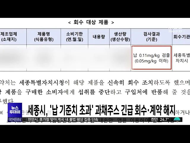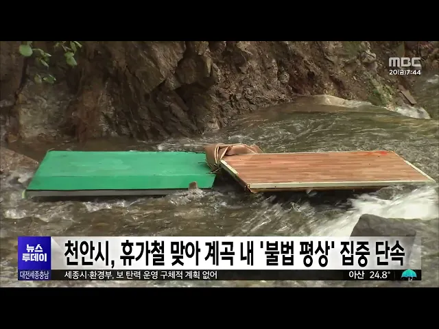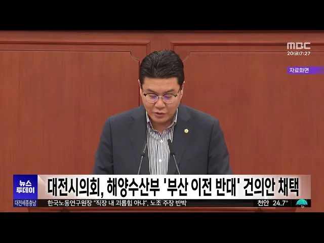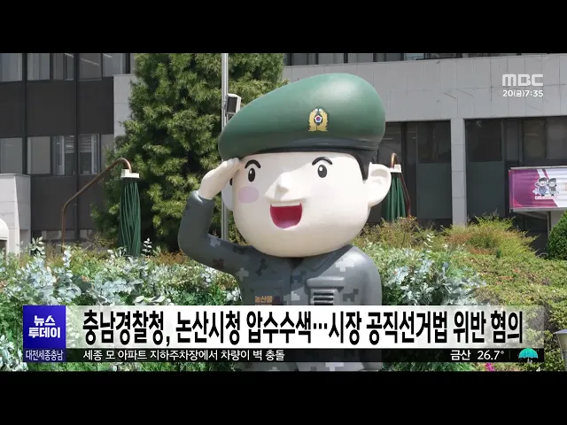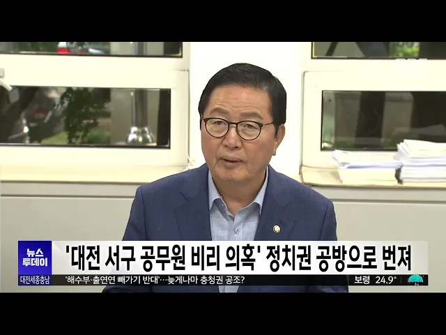 뉴스투데이 뉴스데스크뉴스투데이뉴스데스크 VOD(전체 다시보기)뉴스투데이 VOD(전체 다시보기)유튜브뉴스페이스북 뉴스카카오톡 뉴스인스타그램 뉴스 prev 2025.6.20 - 금요일 next 천안시, 휴가철 맞아 계곡 내 불법 평상 집중 단속 천안시가 여름 휴가철을 맞아오는 23일부터 8월 말까지 광덕산과 태조산 계곡 내 음식점을 대상으로 불법 평상 영업을 집중 단속합니다.이에 따라 계곡 음식점 10여 곳을 대상으로 다음 달 4일까지 사전점... 김윤미 대전대 대학로 일원 '오상욱 거리' 조성..오는 26일 선포식 대전대학교 서문 대학로 일원에펜싱 국가대표 오상욱 선수를 기념하는'오상욱 거리'가 조성됩니다.대전 동구는 대전대 출신이자 아시아 펜싱선수 최초로 개인전 그랜드슬램을 달성한 업적 등을 기념하기 ... 김윤미 충남도, 1천500억원 '벤처펀드' 본격 조성 충남도가 1천500억원 규모의 '벤처펀드' 조성에 속도를 내는 등 충남형 벤처 생태계 구축에 나섰습니다. 충남도는 NH농협은행, 신용보증기금 등과 '지방시대 벤처펀드 출자확약과 베이밸리 자금 신설 협약... 최기웅 보령컵 국제요트대회 사흘째…5일간 펼쳐져 그제 개막한 2025 보령컵국제요트대회가 보령요트경기장과 대천해수욕장 일대에서 닷새 간의 일정으로 열리고 있습니다. 이번 대회에는 선수단을 포함해 천250명의 임원과 관계자 등이 참석해 단거리 국가... 최기웅 대전하나시티즌, 김천과 0대0 무승부..선두와 8점 차 2위 K리그1 대전하나시티즌이 그제,대전월드컵경기장에서 열린 김천 상무와의리그 19라운드 경기에서 미드필더 이순민이퇴장당하는 어려움 속에 득점 없이 비겼습니다.현재 2위인 대전은 최근 7경기에서 1승에... 이승섭 특허청, 위조 화장품 79억 원 상당 유통 일당 검거 특허청 상표특별사법경찰은 맹물 수준의 위조 화장품을 유통한 혐의로 도매업자 등 4명을 검찰에 송치했습니다.이들은 지난 2023년 4월부터 1년간해외 유명브랜드의 위조 화장품 8만 7천여 점, 정품가액으... 문은선 세종시 '납 기준치 초과' 과채주스 긴급 회수·계약 해지 세종시 로컬푸드 매장인 싱싱장터에 납품된 과채주스에서 기준치를 초과하는납 성분이 검출돼 시가 긴급 회수하고해당 농업법인과 계약을 해지했습니다.세종시보건환경연구원은 최근 17개 품목의가공품 안... 문은선 충남경찰청, 논산시청 압수수색..시장 공직선거법 위반 혐의 충남경찰청이 관내 선거구민에게 시장 명함이 담긴 선물을 발송해 공직선거법 위반 혐의를 받는 백성현 논산시장과 공무원들을 대상으로 압수수색에 나섰습니다.충남경찰청 반부패경제범죄수사대는 어제 ... 김성국 '공무원 비리 의혹' 정치권 공방으로 번져 대전 서구 공무원들의 뇌물 수수 의혹이 지역 정치권 사이의 공방으로 확산하고 있습니다.국민의힘 대전시당은 논평을 내고,이번 사건에 연루된 서구 공무원 6명 가운데3명의 혐의는 더불어민주당 장종태 ... 이승섭 "직장 내 괴롭힘 아냐" 한국노동연구원장, 노조 주장 반박 한국노동연구원 허재준 원장이직장 내 괴롭힘과 노조 탄압 의혹에 대해사실이 아니라고 반박했습니다. 허 원장은 논란이 된 "건방지다" 등의폭언은 당시 연구원이 자신의 말을왜곡하려는 태도를 보여 이에... 이혜현 '교실 흔들림' 대전 특수학교 오늘부터 정밀 안전진단 최근 교실에서 흔들림이 발생해학생과 교직원 등 400여 명이 긴급 대피했던 대전의 한 특수학교에 대해 오늘부터 정밀 안전진단이 실시됩니다.대전시교육청은 흔들림이 발생한 교실에 대해보와 기둥 등을 ... 김윤미 한국서부발전·한전KPS, 사고 17일 만에 '김충현 씨 사고' 사과 태안화력발전소에서 하청 노동자 고 김충현 씨가 숨진 지 17일 만에,발전소 운영사인 서부발전이 사고에 대한 책임을 통감한다는 사과문을 발표했습니다.서부발전은 이정복 대표이사 명의로 사과문을 내고... 윤소영 세종시, '행정수도 완성' 국정과제 제안서 국정위에 전달 세종시가 새 정부의 국정과제 반영을 위해 국가균형발전을 위한 행정수도 완성 등을 담은 국정과제 정책제안서를 국정기획위원회에 전달했습니다.정책제안서에는 행정수도 지위를특별법 등으로 명문화하고... 김윤미 대전시의회, 해양수산부 부산 이전 반대 건의안 채택 대전시의회가 정부세종청사에 있는해양수산부의 부산 이전을 반대하는 건의안을채택해 국회와 중앙 정부에 전달할 예정입니다.국민의힘 정명국 시의원이 대표 발의한 건의안은 해수부의 부산 이전은행정의... 이승섭 세종보 재가동..과연 친환경인가?/투데이 ◀ 앵 커 ▶각종 지역 의제에 대한 참된 사실이 무엇인지찾는 팩트체크 기획 '뉴스참' 순서입니다.세종보 검증 두 번째 시간인데요, 이번에는 세종보의 탄력적인 수위 조절을 통해 체계적인 관리를 할 수 있... 김성국 '청소년까지 끌어들여' 5천 억 판돈...도박조직 일망타진/투데이 ◀ 앵 커 ▶해외에 불법 도박사이트를 개설한 뒤,5천 억 원 대의 도박판을 벌인 일당이 붙잡혔습니다.이들은 무려 6년간 잡히지 않고, 청소년들까지 끌어들여 참가자가 무려 4만 명에 달했는데요.윤소영 기... 윤소영 성추행 혐의 시의원에 실형..억울 vs 분노/투데이 ◀ 앵 