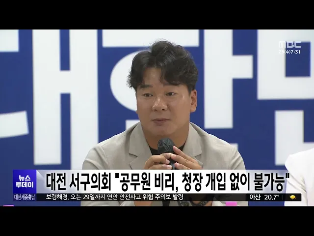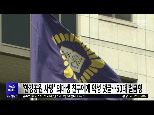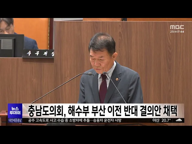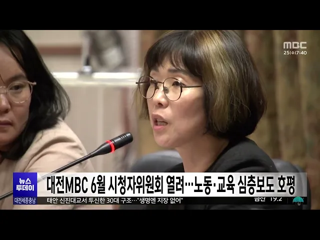 뉴스투데이 뉴스데스크뉴스투데이뉴스데스크 VOD(전체 다시보기)뉴스투데이 VOD(전체 다시보기)유튜브뉴스페이스북 뉴스카카오톡 뉴스인스타그램 뉴스 prev 2025.6.25 - 수요일 next 충남도의회 정례회 폐회…해수부 부산 이전 반대 결의안 채택 충남도의회가 본회의를 열어 '해양수산부 부산 이전 반대 결의안'을 채택하고 대통령, 국회의장, 여야 정당 대표 등에게 전달하기로 했습니다. 도의회는 결의안에서 "대통령의 해양수산부 부산 이전 지시... 최기웅 충청권 민주당 국회의원 '행정수도 특별법' 발의 더불어민주당 충청권 국회의원들이 국회와 대통령실의 완전한 세종 이전을 담은행정수도 건립을 위한 특별법을 발의했습니다.세종시가 지역구인 민주당 강준현 의원과 박범계, 장종태 의원 등은 국회에서 ... 김윤미 이 대통령, 해수부 부산 이전 거듭 지시 세종을 비롯한 충청권과 인천의 반발에도 이재명 정부가 해양수산부 부산 이전에 속도를 내고 있습니다.이재명 대통령은 어제 국무회의에서강도형 해양수산부 장관에게 우선 공간을 임대하는 방식으로해수... 문은선 대전권 8개 대학, 공동 창업대학 연합체 구성 대전지역 8개 대학이 한남대가 추진하는글로컬30 대학 비전인 대전권 공동 창업대학 연합체 구축에 힘을 모읍니다.한남대를 비롯해 대덕대와 대전과학기술대,대전대, 목원대, 배재대, 충남대, 한국침례신... 문은선 대전MBC 6월 시청위 열려..."노동·교육 심층보도 호평" 대전MBC에서 열린 6월 시청자위원회에서 위원들은 태안화력 노동자 사망 관련 연속 보도와 대전판 리박스쿨 집중 보도 등을 통해지역의 노동과 교육 문제를 파헤친 점을 높이평가했습니다.위원들은 또 토... 김지훈 중학교 시절부터 3년간 괴롭혀...청양 학폭 가해자 8명 입건 충남경찰청이 청양에서 중학교 시절부터동급생을 상습적으로 폭행하고 괴롭힌 혐의로고등학생 4명을 검거한 데 이어,가해 학생 4명을 추가로 입건했습니다.이들은 2022년 10월부터 올해 4월까지피해 남학... 윤소영 '한강공원 사망' 의대생 친구에게 악성 댓글 단 50대 벌금형 대전지법 제2-3형사부는 지난 2021년 한강공원에서 실종됐다가 숨진 채 발견된 의대생 고 손정민 씨의 친구를 향해 여러 차례 악성 댓글을 작성한 혐의로 기소된 50대 누리꾼에게 벌금 50만 원을 선고했습... 윤소영 천안시, 이상 동기·외국인 범죄 예방 민관 협력체계 구축 천안시가 이상 동기 범죄나 외국인 범죄를 막기 위해 경찰과 다문화센터, 외국인지원센터 등과 협력체계를 구축하고 합동 순찰을 강화합니다.또 범죄 분야 지역안전지수 향상을 위해 방범용 CCTV와 자율방... 김지훈 보령해경, 연안 안전사고 위험 주의보 발령 보령해양경찰서는 오는 29일까지 엿새 동안 연안해역에 안전사고 발생이 예상돼 위험 예보제 주의보 단계를 발령했습니다.이 기간 서해안 해상에는 초속 10미터 이상의 강풍과 최고 5미터가량의 물결이 일... 윤소영 환경단체 "증축 대전 선화초 벌목..백로 번식지 파괴" 대전의 대표적인 백로 번식지인 선화초등학교에서 증축 공사를 이유로무분별한 대규모 벌목이 이뤄져 번식지가 파괴됐다는 비판이 제기됐습니다.대전충남녹색연합과 대전환경운동연합은성명을 내고 "해마... 김윤미 공무원 비리 의혹 특위, "서철모 청장 개입 없이 불가능한 사건" 대전 서구의 공무원 비리 의혹을 규명하기 위해구성된 대전 서구의회 특별위원회가 민주당 대전시당에서 기자회견을 열어 "서철모 구청장 취임 이후 특정 업체가 사업의 80%를 따낸 건 상식적으로 불가능... 이승섭 카이스트, AI 3대 강국 도약 추진..국가 AI 연구거점 수행 카이스트가 AI 관련 3대 강국에 대한민국을 포함시키기 위해 'AI 기본사회' 실현을 목표로 인재 양성과 연구개발을 진행 중이라고 밝혔습니다.카이스트는 특히 '국가AI연구거점'사업을 주관하며, AI 기술... 김지훈 이장우 대전시장-지역 국회의원 오늘 간담회..현안 논의 이장우 대전시장이 오늘 국회를 찾아새 정부 출범 이후 처음으로지역 국회의원들과 간담회를 열어지역 현안을 논의합니다.이장우 시장은 더불어민주당 박범계, 장종태,박용갑, 황정아 의원을 만나대전 도... 이승섭 "모든 인연 끊어라"...아산 종교단체 "헌금도 강요"/투데이 ◀ 앵 커 ▶아산 농원에서 난동을 부린 종교단체 신도들이 과거 기자와 친부모까지 폭행한 사실을 단독으로 전해드렸죠.이 단체가 신도들을 세뇌해 이혼과 헌금을 강요했다는 의혹까지 새롭게 제기되고 있습... 김성국 "D등급 받았는데"...한전KPS, 안전 성과 부풀리기 의혹/투데이 ◀ 앵 커 ▶태안화력에서 홀로 작업하다 숨진 고 김충현 씨 사건과 관련해서 원청인 한전KPS의 안전 관리 책임이 연일 도마 위에 오르고 있습니다.한전KPS는 그동안 산업재해가 줄었다며안전 성과를 자랑해... 이혜현 "민주당 지긋지긋해"..."정당한 견제와 감시"/투데이 ◀ 앵 커 ▶국민의힘 소속인 최민호 세종시장과 민주당이 다수인 세종시의회가 예산을 놓고또 충돌했습니다.빛축제 예산 4억 원이 지난해에 이어 올해 추경안 심사에서 전액 삭감된 건데요.최민호 시장이 "... 김윤미 "'극우 발언' 교수 해당 수업서 배제"/투데이 ◀