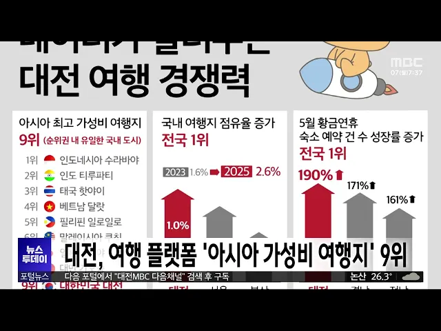 뉴스투데이 뉴스데스크뉴스투데이뉴스데스크 VOD(전체 다시보기)뉴스투데이 VOD(전체 다시보기)유튜브뉴스페이스북 뉴스카카오톡 뉴스인스타그램 뉴스 prev 2025.7.7 - 월요일 next 대전시, 해외직구 화장품 '중금속' 정밀검사 대전시는 이달부터 해외직구 화장품 안전성 확보를 위한 정밀 유해물질 검사에 나섭니다. 대전시는 보건환경연구원과 함께 시민들이 자주 구매하거나 안전성에 우려를 표한 화장품을 중심으로 제품을 수거... 최기웅 충남 축산기술연구소, 한우 유전체 분석 앱 개발 충남도 축산기술연구소가 전국 지자체 중 처음으로 도내 한우 농가의 생산비 절감과 생산 효율 향상을 위한 한우 유전체 분석 애플리케이션을 개발했습니다. 이번에 개발한 앱은 기존 한우 혈통 중심이 아... 최기웅 충남도, 농업기계 교육 통해 1천4백여 명 면허 취득 충남도 농업기술원이 2017년 소형 건설기계조종교육기관으로 지정된 이후 현재까지 1천4백여 명의 농업인이 면허를 취득한 것으로 나타났습니다. 도 농업기술원에 따르면 지난달 말 기준 굴착기 827명, 지... 최기웅 난치성 뇌질환 치료하는 마이크로 OLED 장비 개발 카이스트 최경철 이현주 교수 공동 연구팀이 마이크로 OLED를 활용한 얇고 유연한 뇌 자극용 의료기기를 개발했습니다.이 장비는 단일 침으로 휘어짐 없이 뇌에 삽입할 수 있고, 8개의 마이크로 OLED가 독... 고병권 표준연, 세계 최고 수준 '길이 측정 시스템' 개발 표준과학연구원이 세계 최고 수준 정밀도의 '길이 측정 시스템'을 개발했습니다. 이 기술은 단파장 레이저를 쓰는 기존 방식 대신 광 주파수 간섭계를 활용해 기존의 10억 분에 1미터 수준인 측정 정확도... 고병권 충남교육청, 이동형 수용장 활용 생존수영 교육 나서 충남교육청이 지역별 수영장 인프라 격차로 인해 수영교육에 어려움을 겪는 지역 초등학교를 대상으로 ‘이동형 수영장을 활용한 생존수영 교육’에 나섰습니다. 이동형 수영장 활용 생존수영 실기교육은80... 최기웅 대전, 여행 플랫폼 ‘아시아 가성비 여행지’ 9위 대전시가 글로벌 여행 플랫폼이 발표한‘2025 아시아 최고 가성비 여행지’ 순위에서9위를 차지해 국내 도시 중 유일하게 이름을 올렸습니다.해당 여행 플랫폼에 따르면, 대전은 1박 숙박비가 평균 12만 6천... 이교선 충남도, '반려동물 원-웰페어 밸리 조성 사업' 중앙투자심사 통과 충남도는 '반려동물 원-웰페어 밸리' 조성 사업이 행정안전부 중앙투자심사를 통과했다고 밝혔습니다.이 사업은 충남대 내포캠퍼스 내 2만8천952㎡ 부지에 2027년까지 국비 등 400억 원을 투입해 전국 최... 최기웅 한화, 33년 만에 전반기 1위 확정 한화 이글스가 키움을 상대로 주말 3연전을 모두 쓸어 담으며 1992년 이후 33년 만에 전반기 1위를 확정했습니다.어제 고척돔에서 열린 경기에서 한화는 와이스의 6이닝 11탈삼진 무실점 호투와 함께, 채... 이교선 수도권 초강력 대출 규제...충청권 풍선효과 올까 수도권을 향한 정부의 고강도 대출 규제로 충청권 부동산 시장에 풍선효과가 나타날 지 주목되고 있습니다. 한국부동산원의 주간 아파트 가격 동향에 따르면 지난달 30일 기준 서울의 아파트 매매가격지수... 최기웅 충남도, 천안의료원장에 채용 절차 위반 등 '기관장 경고' 충남도가 채용 절차 위반과 부당한 계약 체결 등의 책임을 물어 김대식 천안의료원장에게 '기관장 경고' 처분을 내렸습니다. 충남도가 천안의료원 운영 실태를 조사한결과 올해 초 채용공고 없이 내부 추... 최기웅 "눈높이를 맞추고" 유흥식 추기경 집전 미사/투데이 ◀ 앵 커 ▶충남 논산 출신으로 대전교구장을 지내고한국인 최초 교황청 장관이자 한국 천주교 역사상 4번째 추기경으로 선임된 유흥식 추기경이 서산 해미국제성지에서 지역 신자들을 만났습니다.휴가를 ... 박선진