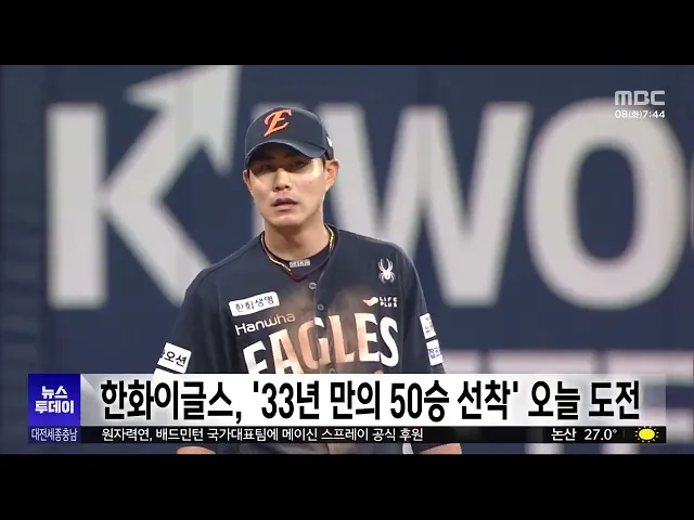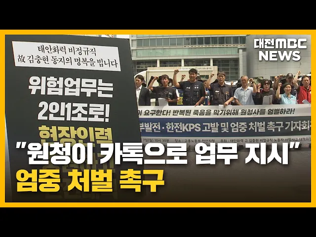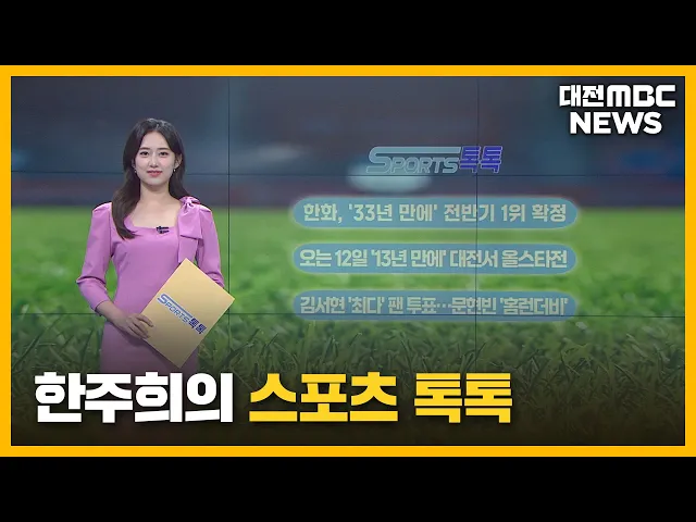 뉴스투데이 뉴스데스크뉴스투데이뉴스데스크 VOD(전체 다시보기)뉴스투데이 VOD(전체 다시보기)유튜브뉴스페이스북 뉴스카카오톡 뉴스인스타그램 뉴스 prev 2025.7.8 - 화요일 next 한화 50승 선착시 정규시즌 우승 확률 71% 프로야구 전반기 1위를 확정한 한화 이글스가 우승의 척도인 50승 선착에 도전합니다.단독 선두를 달리는 한화는 오늘부터 홈에서 4위 기아와 전반기 마지막 3연전에서 1승만 올리면 50승에 가장 먼저 오... 이교선 충청권 교육감 정책협의회...'학교 혼란' 고교학점제 정책 제안 올 상반기 충청권 교육감 정책협의회가세종시에서 열려 교육격차 해소를 위한하반기 공동사업 등을 협의했습니다.또 함께 열린 정책세미나에서는 학교 현장의반발이 거센 고교학점제 안착을 위해우수 사례... 문은선 '극우·혐오 발언' 국립대 교수 모든 수업 개설 취소 지역 국립대 교수가 수업 중 문재인 전 대통령을 간첩이라고 하는 등 편향된 발언을 했다는 대전MBC 단독 보도 이후대학 측이 해당 교수의 대학원 수업도모두 개설을 취소하기로 했습니다.대학 측은 학내 ... 문은선 대전시, 반려동물과 함께하는 물놀이장 24일 개장 대전시가 유성구 금고동 반려동물공원에 반려동물과 함께하는 물놀이장을 오는 24일 개장해 다음 달 10일까지 운영합니다.이용은 '대전OK예약서비스'에서 사전 예약 후무료로 이용할 수 있고, 보호자 1명... 조형찬 충남도, 무형유산 유기장 보유자 공모 충남도가 도 무형유산 유기장 종목 지정을 위해 오는 9월 2~4일 사이에 보유자 신청을 받습니다. 이번 지정 대상은 놋쇠를 다뤄 각종 기물을 만드는 유기장으로, 도 무형유산위원회 검토를 거쳐 보유자 인... 최기웅 우주망원경 스피어엑스, 관측 데이터 6천 여건 공개 한국 천문연구원과 미국 NASA가 공동 개발한 우주망원경 '스피어엑스'로 관측한 타란툴라 성운 등 최근 데이터 6천여 건을 전 세계에 공개한다고 밝혔습니다. 공개된 타란툴라 성운은 수 천 개의 젊고 무... 고병권 마약 유통한 외국인 남녀 등 3명 입건.."위장 수사에 덜미" 충남경찰청이 아산 지역에서 마약을 유통하고 투약한 혐의로, 베트남 국적의 20대 남녀와 이들에게 마약 판매를 알선한 30대 유흥업소 종업원을 입건했습니다.경찰은 외국인 전용 주점에서 마약이 유통된... 윤소영 서산 공군비행단 생활관서 병사 추락..."사고 경위 조사" 그제 오전 11시쯤, 서산 공군비행단 내생활관 건물 4층에서 20대 병사가 추락하는 사고가 발생했습니다.해당 병사는 경기 성남의 국군수도병원으로 옮겨져, 현재 생명에는 지장이 없는 상태로 알려졌습니... 윤소영 대전시, 전국 최초 소상공인 카드 통신비 지원 대전시가 전국 최초로 소상공인을 위한 카드 결제 통신비 지원에 나서기로 하고다음 달 8일까지 온라인으로 선착순 접수합니다.이 사업은 카드 결제 단말기 운용을 위한소상공인의 유‧무선 통신비용을 지... 이교선 대전 트램 예산 1,259억 원, 새 정부 추경 포함 이재명 정부의 첫 추경에서 대전의 현안 사업이 엇갈린 결과를 받았습니다.대전시에 따르면 대전도시철도 2호선 트램 건설비 1,259억 원을 추가 확보했고, 1호선 통신망 교체와 자연재해 위험지구 정비 예... 이교선 박수현 국정기획위 균형성장특위 위원장 위촉 공주부여청양 박수현 국회의원이 대통령 직속 국정기획위원회 산하 균형성장특별위원회 위원장으로 공식 위촉돼, 대통령의 행정수도 완성 공약이 속도를 낼 전망입니다.박 위원장은 대전MBC와의 통화에서 ... 김지훈 한화, 33년 만에 전반기 1위 확정/투데이 ◀ 앵 커 ▶스포츠톡톡 시간입니다.한화이글스가 지난 주말 3연전 키움에게 스윕을 거두며, 33년 만에 전반기 1위를 확정지었습니다.외국인 선발 와이스는, 아홉수를 털어내고 시즌 10승 고지를 밟았습니다.... "안전 관리는 원청 의무"...서부발전·KPS 책임자 처벌 촉구/투데이 ◀ 앵 커 ▶태안화력에서 숨진 하청 노동자고 김충현 씨가 원청인 한전KPS 관계자와나눈 메시지를 대전MBC가 단독 입수했습니다.작업 전 안전 확인을 스스로 요청하고,상급 기관의 지적 사항까지 전달해온정... 이혜현 "시끄럽게 쿵쿵"...층간소음 항의하자 기름 테러/투데이 ◀ 앵 커 ▶지난 주말, 대전에서 층간소음 문제로 찾아온 이웃 주민에게 끓는 식용유를 끼얹은 60대 남성이 경찰에 붙잡혔습니다.해당 남성은 흉기를 들고 주민들에게 위협을 가하기도 했습니다.윤소영 기자... 윤소영 '서울대 10개 만들기' "지역이 나서야 실현"/투데이 ◀ 앵 커 ▶서울대 10개 만들기는 이재명 정부의 핵심 교육 정책 가운데 하나죠.이 개념을 가장 먼저 제안한'서울대 10개 만들기' 책의 저자인김종영 교수를 만나 정책의 배경과 의미를 들어봤습니다.김 교... 문은선