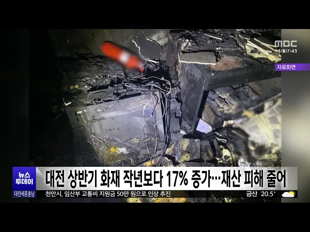 뉴스투데이 뉴스데스크뉴스투데이뉴스데스크 VOD(전체 다시보기)뉴스투데이 VOD(전체 다시보기)유튜브뉴스페이스북 뉴스카카오톡 뉴스인스타그램 뉴스 prev 2025.7.14 - 월요일 next 충남교육청, 차기 금고에 농협은행 재선정⋯내년부터 4년간 운영 충남도 교육청이 내년부터 4년간, 교육청 금고를 운영할 금융기관으로 'NH농협은행'을 재선정했습니다. 이번 약정에 따라 농협은행은 도교육청과 산하 교육기관의 금고 업무를 전담하게 되며, 운영 범위는... 김지훈 대전농협·대전 동구, 출생 신고 시 지역 쌀 제공 농협 대전본부와 대전 동구가, 지역 쌀 소비 촉진을 위해 출산 가구 쌀 지원 사업에 나섭니다. 이에 따라 출산 가정이 대전 동구 관내 행정복지센터에서 출생 신고를 하면 농협이 지역에서 생산된 쌀 4㎏ ... 김지훈 대전 상반기 화재 작년보다 17% 증가⋯재산 피해 줄어 대전소방본부는, 올해 상반기 대전에서 460여 건의 화재가 발생해, 지난해 같은 기간보다 17.2% 늘었다고 밝혔습니다. 인명피해는 사망 3명·부상 22명 등 25명으로, 사망자는 지난해보다 1명 줄었고 부상... 김지훈 충남 광역 외국인노동자 쉼터, 당진에 문 열어 충남도가 당진시 읍내동에 '충남 광역 외국인 노동자 쉼터'를 열고, 본격 운영에 들어갔습니다. 쉼터는 당진YMCA가 운영을 맡아 고용허가제 외국인 노동자가 실직한 경우 재취업 때까지 숙식 공간 제공과 ... 박선진 충남대, 총장 직속 'AI 융합연구원' 신설 충남대학교가 AI 융합연구원을 신설하고, 대학 전 분야에 인공지능 기반 혁신을 본격 추진합니다. 충남대 인공지능혁신위원회는 총장 직속기구로 AI 융합 연구원을 신설하기로 결정했다며, 연구원은 향후 ... 박선진 을지대의료원 사칭 '노쇼 사기' 주의⋯"의심되면 확인해야" 을지대학교 의료원은, 최근 의료원 기관장 또는 교수를 사칭한 일명 '노쇼' 사기가 발생하고 있다며, 주의를 당부했습니다. 의료원 측은 "교직원인 척하면서 식당이나 상점 등에 고액의 음식·물품을 주문... 김지훈 “홧김에 영업방해”…정비업체 입구에 차 세운 40대 벌금형 대전지법 형사9단독은, 자동차 정비업체와 다툰 뒤 업체 입구에 차량을 세워둔 40대에게, 벌금 200만 원을 선고했습니다. 피고인은 지난해 5월, 정비업체와 세금 문제로 갈등을 빚은 뒤 영업시간이 끝나자... 이교선 대전 아파트서 어머니·아들 숨진 채 발견⋯"생활고 시달려" 대전 서구의 한 아파트에서, 60대 어머니와 40대 아들 등 2명이 숨진 채 발견된 사실이 뒤늦게 알려졌습니다. 지난 9일 '악취가 난다'는 아파트 관리실 직원의 신고를 받고 출동한 경찰은 문을 강제로 열... 김성국 천안시, 임산부 교통비 지원금 50만 원으로 인상 추진 천안시가, 임산부 교통비 지원금을 기존 30만 원에서 50만 원으로 인상하는 관련 조례안을 입법 예고하고, 오는 16일 의회 심의를 앞두고 있다고 밝혔습니다. 임산부 교통비 지원사업은 정기적인 병원 방... 김지훈 공주 연간 생활인구 779만 명⋯전국 인구감소 지역 중 3위 공주의 지난해 생활인구가, 전국 인구감소 지역 가운데 세 번째로 많은 것으로 나타났습니다. 행정안전부와 통계청이 '2024년 인구감소 지역 생활인구'를 산정한 결과, 지난해 공주시의 연간 생활인구는 7... 김지훈 국힘 대전시당위원장, 박경호·이상민·한현택 '3파전' 국민의힘 대전시당이 위원장 선출을 위한 후보자 접수를 마감한 결과, 박경호 현 대덕구 당협위원장과 이상민 전 시당위원장, 한현택 전 동구청장 등, 3명이 등록을 마쳤습니다. 시당은 나흘 동안 선거운... 이교선 민주당 대전시당 "국힘, 민생회복 소비쿠폰 매도하지 말아야" 지난 11일 국민의힘 소속 대전시의원들이 기자회견을 열어, "민생회복 소비쿠폰이 미래 세대에게 부담을 떠넘기는 선심성 정책"이라고 비판한 가운데, 더불어민주당 대전시당은, "관련 정책을 매도하지 말... 김지훈 당진 석문간척지에 국내 최대 스마트팜 단지 조성/투데이 ◀ 앵 커 ▶ 여러분 안녕하십니까 뉴스투데이 대전세종충남입니다. 당진 석문 간척지에, 국내 최대 규모의 스마트팜 단지가 조성됩니다. 석문 국가산업단지에 들어설 제철 공장의 폐열을 활용... 최기웅