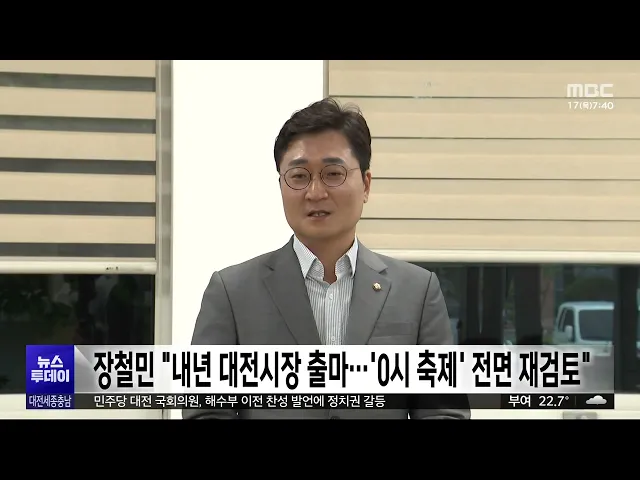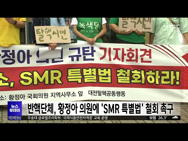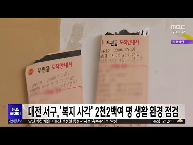 뉴스투데이 뉴스데스크뉴스투데이뉴스데스크 VOD(전체 다시보기)뉴스투데이 VOD(전체 다시보기)유튜브뉴스페이스북 뉴스카카오톡 뉴스인스타그램 뉴스 prev 2025.7.17 - 목요일 next 대전MBC '사랑의 집 고치기' 48호점 논산서 착공 대한전문건설협회 세종시·충남도회와 대전MBC가 함께 추진하는 사랑의 집 고치기 48호점 착공식이, 어제 논산시 채운면에서 열렸습니다. 지난 2007년 시작된 사랑의 집 고치기를 통해 47곳의 보금자리가 ... 김윤미 대전탈핵공동행동, 'SMR 특별법' 발의 철회 촉구 지난달 발의된 소형모듈원자로, SMR 특별법을 둘러싸고, 원자력계와 환경단체의 찬반 공방이 이어지고 있습니다. 대전탈핵공동행동은 법안을 대표발의한 대전 유성을 황정아 의원 사무실 앞에서 기자회견... 박선진 라이더유니온 "배달앱 업체, 안전운임제 도입해야" 폭염에 배달 노동자의 안전이 위협받고 있다는 지적이 잇따르는 가운데, 민주노총 라이더유니온 대전지회가 대전고용노동청 앞에서 기자회견을 열고, "폭염에도 인센티브를 앞세워 배달을 유도하는 배달앱... 김성국 면장 이어 부면장도 '성추행 혐의'.."군의원은 회유"/투데이 ◀ 앵 커 ▶ 금산의 한 면사무소 면장이 부하 직원을 성추행한 혐의로 직위해제됐다가 한 달 만에 복직한 사실을 단독으로 전해드렸는데요. 그런데 면장에 이어 부면장까지 같은 직원을 상대로 성범죄를 저... 김성국 국민의힘 충남도당위원장 강승규·세종시당위원장 이준배 선출 국민의힘 신임 충남도당위원장에, 홍성·예산 지역구의 강승규 의원이 선출됐습니다. 국민의힘 세종시당은 이준배 시당위원장의 연임을 확정했고, 박경호, 이상민, 한현택 3명의 후보가 출마한 대전시당위... 이승섭 장철민 "내년 대전시장 출마..'0시 축제' 전면 재검토" 대전 동구를 지역구로 둔 더불어민주당 장철민 의원이, 내년 6월 지방선거에서 대전시장 선거에 출마하겠다고 밝혔습니다. 장 의원은 지역 기자들과의 간담회에서 "대전에 새롭고 젊은 정치인이 필요하다"... 이승섭 '대전 0시 축제' 대전 원도심에서 다음 달 8일 개막 올해 '대전 0시 축제'가 다음 달 8일 개막해 9일 동안, 대전역에서 옛 충남도청에 이르는 중앙로 1km 구간에서 개최됩니다. 이번 축제에서는 대전의 과거와 현재, 미래를 보여주는 전시와 체험 공간이 마... 이승섭 유네스코 세계유산위원회 유치⋯내년 부산서 개최 세계문화유산 등재 등을 논의하는 내년 유네스코 세계유산위원회가, 부산에서 열립니다. 프랑스 파리에서 개최 중인 유네스코 세계유산위원회는 현지 시각으로 어제(15) 오후 차기 위원회 개최국으로 우리... 문은선 "통계 조작 지시 없었다" 증언...검찰은 공소장 수정/투데이 ◀ 앵 커 ▶ 문재인 정부 고위 인사들이 부동산 대책의 효과를 부풀리기 위해, 집값 등 통계를 조작했다는 의혹을 다투는 2차 공판이, 대전지법에서 열렸습니다. 이 자리에서, 직접적인 조작 지시가 없었다... 윤소영 청양 학폭 가해 학생 '퇴학 처분 취소' 소송 제기 수년간 동급생을 집단 폭행하고 금품을 빼앗은 이른바 '청양 학교폭력 사건'과 관련해, 가해 학생 1명이, 대전지법에 퇴학 처분 취소 소송과 함께, 퇴학 효력을 중지해 달라는 집행정지 가처분 신청을 했... 윤소영 대전·청주 편의점 돌며 강도 행각..10대 등 3명 체포 대전 중부경찰서가, 편의점을 돌며 직원을 협박하고 폭행한 뒤 강도 행각을 벌인 혐의로, 20대 남성 1명과 10대 2명 등, 3명을 긴급 체포했습니다. 이들은 어젯(15)밤부터 오늘(16) 새벽까지 충북 청주와 ... 김성국 대전노동청, '임금 체불 뒤 수사 불응' 사업주 체포 대전고용노동청이, 수백만 원의 임금을 체불한 뒤 근로감독관의 출석 요구에 불응한 혐의로, 사업주 1명을 체포했습니다. 대전 중구에서 음식점 등 가게 두 곳을 운영하는 이 사업주는 근로자 4명에게 3백... 김성국 이진숙 "자녀 불법 유학 죄송..논문 표절 사실 아냐"/투데이 ◀ 앵 커 ▶ 장관 후보자 가운데 가장 많은 자격 시비 논란을 빚고 있는 이진숙 교육부 장관 후보자에 대한 인사 청문회가 있었습니다. 논문 표절 의혹과 자녀 불법 유학문제가 집중적으로 거론됐는데, 이 ... 문은선 대전 서구, '복지 사각지대' 2천2백여 명 생활환경 등 점검 대전MBC가 단독보도한 생활고 모자 사망 사건과 관련해, 대전 서구가, 복지 사각지대 해소를 위한 점검에 나섭니다. 이에 따라 다음 달 14일까지 복지 사각지대 발굴 관리 시스템에 등록된 대전 서구 주민... 김지훈 대전 학교 급식 갈등 장기화..노사 교섭 난항 대전지역 학교 급식 갈등이 해결 기미를 보이지 않으면서, 2학기에도 일부 파행이 우려됩니다. 대전교육청과 전국학교비정규직노조 대전지부는 지난 5월 당직실무원 직종을 시작으로 직종교섭을 재개했지... 문은선 '민생회복 소비쿠폰' 오는 21일부터 신청·지급 정부가 모든 국민에게 지급하는 '민생회복 소비쿠폰'이, 오는 21일부터 신청과 지급 절차에 들어갑니다. 1차 신청은 오는 21일부터 9월 12일까지로 인구 감소 지역인 공주와 부여, 청양 등 충남 일부 시군... 이승섭 호우특보에 대전역-서울역 일반열차 운행 일시 중지 집중호우로 인해 오늘 경부선과 장항