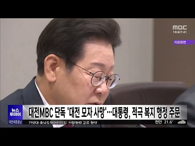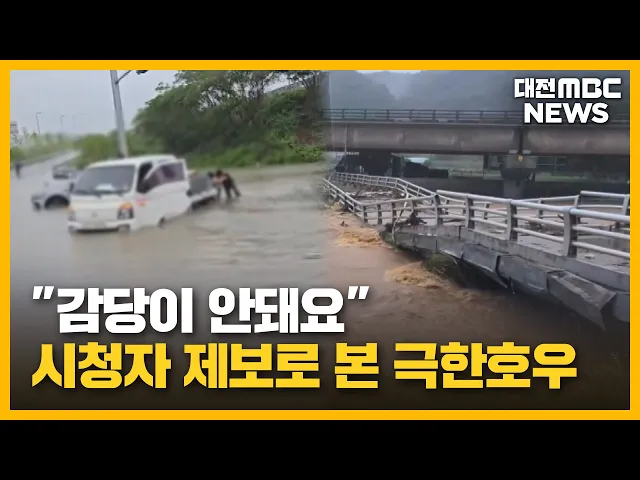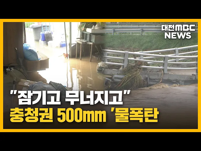 뉴스투데이 뉴스데스크뉴스투데이뉴스데스크 VOD(전체 다시보기)뉴스투데이 VOD(전체 다시보기)유튜브뉴스페이스북 뉴스카카오톡 뉴스인스타그램 뉴스 prev 2025.7.18 - 금요일 next 국힘 장동혁 "혁신 아니라 오발탄"…윤희숙 혁신위에 반발 국민의힘 장동혁 의원이 윤희숙 혁신위원장의 '인적 쇄신' 당사자 지목에 강하게 반발했습니다.장 의원은 SNS를 통해 "윤석열 전 대통령 지지자는 누가 지켜주느냐, 선거 끝나면 내쫓고 소금 뿌리는 게 혁... 이교선 '졸속 이전 반대' 해수부 노조 단식 해제.."적극 소통할 것" 전재수 해양수산부 장관 후보자가국회 앞에서 단식농성 중인 국가공무원노조 해수부지부 위원장을 찾아해수부 부산 이전과 관련해 적극적인소통을 약속했고, 노조 측은 단식 9일 만에단식을 끝냈습니다.전... 문은선 대전 제지공장서 근로자 추락..하루 만에 숨진 채 발견 대전 대덕구에 있는 제지 공장에서가동 중인 기계 안에서 근로자가 숨진 채 발견돼 경찰이 조사를 벌이고 있습니다.경찰은 그제 자정쯤 남편이 귀가하지않는다는 아내의 신고를 받고 휴대전화 위치추적 등... 문은선 태안화력 고 김충현 대책위 "정부, 협의체 가동해야" 태안화력 고 김충현 씨의 49재를 사흘 앞두고 대책위원회가 사태 해결을 위해 정부가 약속한 협의체를 조속히 가동하라고 촉구했습니다.이들은 용산 대통령실 앞에서 회견을 열고 "고 김충현 유가족은 정... 문은선 무면허 운전 중 사고로 택시기사 숨지게 한 10대 징역 6년 구형 지난 5월 아산에서 무면허로 과속 운전하다 사고를 내 맞은편에서 주행하던 택시 기사를 숨지게 한 10대에게 검찰이 징역 6년을 구형했습니다.검찰은 대전지법 천안지원 형사4단독 심리로 열린 공판에서 "... 김지훈 대전MBC 단독 '대전 모자 사망'..이 대통령, 적극 복지 행정 주문 대전MBC가 단독 보도한 '생활고 대전 모자 사망사건'과 관련해 이재명 대통령이 복지 사각지대와 관련해 적극 행정을 주문했습니다.이 대통령은 대통령실에서 주재한수석보좌관회의에서 "이런 비극이 반복... 문은선 "감당이 안 돼요"…시청자 제보로 본 극한 호우/투데이 ◀ 앵 커 ▶200년 만의 역대급 극한 호우에, 주민들은 할 말을 잃었습니다.시청자들이 보내주신 제보 영상으로, 피해 현장을 생생하게 재구성했습니다. 이교선 기자입니다.◀ 리포트 ▶오늘 새벽 4시, 서산시 ... 이교선 '도로 마비·열차 중단'..사상 최악 교통대란/투데이 ◀ 앵 커 ▶시간당 100mm가 넘는 기록적인 폭우가 쏟아진 충남 홍성과 예산,서산 등에서는, 도로가 물에 잠기고,길이 끊기는 최악의 교통대란도 빚어졌습니다. 주변 시군으로 나가는 도로는 대부분 마비됐고... 최기웅 물바다된 충남..금강 '대홍수' 위기?/투데이 ◀ 앵 커 ▶200년에 한 번 있을 법한 극한 호우에 충남의 주요 하천들이잇따라 범람하면서, 도시와 농촌을집어삼켰습니다.지방 하천의 경우, 제방 높이가 50년에서 80년 빈도에 맞춰 설계돼,200년 빈도의 ... 이혜현 "잠기고 무너지고"..충청권에 '500mm 물폭탄'/투데이 ◀ 앵 커 ▶충청권에는 밤사이 500mm, 말 그대로 '물폭탄'이 쏟아졌습니다.강수량으로 따지면, '200년 만'에 한 번 있을 정도의 극한호우였는데요.하천이 넘치고, 차량과 주택이 물에 잠기면서, 3명이 목숨... 윤소영 극한 호우에 쑥대밭 된 충청..내일까지 200mm 더 내려/투데이 ◀ 앵 커 ▶그제부터 500mm가 넘는 극한 호우가 퍼부은 충청권은 한마디로 쑥대밭이 됐습니다.200년에 한 번 내릴 법한 물폭탄이 쏟아지면서 3명이 숨지고, 천2백명이 넘는 주민들이 대피하는 등 피해가 잇... 김성국
