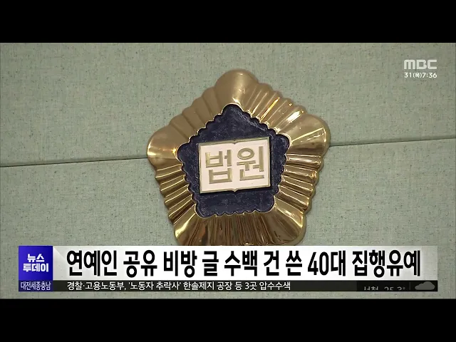 뉴스투데이 뉴스데스크뉴스투데이뉴스데스크 VOD(전체 다시보기)뉴스투데이 VOD(전체 다시보기)유튜브뉴스페이스북 뉴스카카오톡 뉴스인스타그램 뉴스 prev 2025.7.31 - 목요일 next 서산 드론 자유화 특례 2년 연장⋯"드론 산업 활성화" 서산시가 드론 자유화 구역으로 재지정돼, 드론 비행 관련 각종 규제 면제 등의 특례가, 2027년 6월까지 2년 연장됐다고 밝혔습니다. 지난 2023년 처음 드론 자유화 구역으로 지정된 서산시는 특별비행 승... 김지훈 카이스트, '빛 에너지' 활용 무선 웨어러블 플랫폼 개발 '빛 에너지'를 활용해 의료용 웨어러블 기기의 소형·경량화 과제를 극복할 '무선 웨어러블' 플랫폼을, 국내 연구진이 개발했습니다. 카이스트 권경하 교수 연구팀은 미국 노스웨스턴대와의 공동 연구를 통... 박선진 '관리 책임 한화로'..계약 변경 추진 논란/투데이 ◀ 앵 커 ▶ 복도 천장에서 간판이 떨어지는 등의 안전사고가 잇따르고 있는 대전한화생명볼파크. 야구장을 관리하는 대전시가, 정부가 지시한 안전 점검을 허술하게 진행했다는 의혹을 어제 단독으로 전해... 이승섭 대전시, 0시 축제 앞두고 다중이용시설 음식점 점검 대전시가 다음 달 8일부터 열리는 '대전 0시 축제'를 앞두고, 안전한 먹거리를 위한 관리를 강화합니다. 이에 따라 어제부터 사흘 동안 대전역과 복합터미널 등 다중이용시설 60곳에 있는 음식점을 대상으... 이승섭 대전시, 다음 달 대전사랑카드 캐시백 10% 확대 대전시의 지역화폐인 대전사랑카드의 캐시백이, 다음 달 한 달 동안 기존 7%에서 10%로 늘어납니다. 이에 따라 대전사랑카드를 사용하면 월 충전 한도인 50만 원을 기준으로 최대 5만 원의 적립금 혜택을 ... 이승섭 보건의료노조·장철민 "대전시가 의료 파업 해결 나서야" 보건의료노조와 장철민 국회의원이 대전시청 앞에서 기자회견을 열어, 대전 공공어린이 재활병원을 비롯한 지역 의료 파업 사태 해결에, 대전시가 적극 나서야 한다고 촉구했습니다. 이들은 "대전시가 안... 이승섭 "또 쓰러진 농민들"..죽음 부르는 농촌 폭염/투데이 ◀ 앵 커 ▶ 기후위기 속 '폭염 불평등' 실태를 분석하는 기획보도 다섯 번째 순서입니다. 연일 이어지는 폭염으로, 올해만 충남에서 2명이 온열질환으로 숨졌는데요. 실제 지난 5년간 자료를 분석해 보니, ... 김광연 "한전 송전선로 사업 적법"⋯2심 판결에 금산 주민 반발 한전이 추진하는 전북 정읍에서 계룡시를 잇는 송전선로 건설 사업이 적법하다는 법원의 판결이 나온 가운데, 금산 주민들이 반발하고 있습니다. 금산군 대책위원회는 기자회견을 열어 "한전이 법이 아닌 ... 이혜현 자신 폭행한 장애 동생 살해한 50대 누나 '징역 12년' 대전지법 천안지원 형사1부 전경호 부장판사가, 자신을 폭행했다는 이유로 하반신 장애가 있는 동생을 살해한 혐의로 기소된 50대 여성에게, 징역 12년을 선고했습니다. 피고인은 지난 1월 천안 자택에서,... 김성국 뇌성마비 조카 수급비 4천만 원 가로챈 외삼촌 구속 서산경찰서가, 뇌성마비 중증 장애가 있는 조카의 복지 급여 수천만 원을 가로챈 혐의로, 외삼촌을 구속 송치했습니다. 회사원인 피의자는 지난 2021년 11월부터 최근까지 조카의 기초생활수급비 4천여만 ... 김성국 "공유에게 겁박당했다" 허위 글 수백 건 쓴 40대 징역형 집유 대전지법 형사5단독 장원지 판사가, 유명 연예인인 공유에게 감시와 협박, 성희롱 등을 당했다고 주장하는 게시글과 댓글 수백 건을 작성한 40대 여성에게, 징역 6개월에 집행유예 2년을 선고했습니다. 피... 김지훈 대전서 '교제 살인' 20대 검거.."불원서 한 장이면 수사 중단"/투데이 ◀ 앵 커 ▶ 대전 도심 한복판에서, 사귀던 30대 여성을 흉기로 살해한 20대 남성이, 도주 24시간 만에 경찰에 검거됐습니다. 이 남성은 최근 한 달 전까지, 피해 여성을 상대로 한 주거침입과 폭행 등으로 ... 윤소영 전국시도교육감협, 지방교육재정 안정화 건의 전국 시도교육감협의회가 국정기획위 국가균형성장 특별위원회 박수현 위원장을 만나, 지방교육재정 안정화 방안 등 4대 교육 과제를 건의했습니다. 이들은 특히 지방교육 재정이 학생 맞춤형 교육 지원과... 문은선 이재명 정부 첫 시·도지사 간담회 예정..세종시장 조기 귀국 다음 달 1일 이재명 대통령과 전국 17개 시·도지사가, 서울 용산 대통령실에서 새 정부 들어 첫 간담회를 갖습니다. 해외 출장 중인 최민호 세종시장은 일정을 하루 앞당겨 오늘 귀국해 간담회에 참석할 ... 문은선 '전국 최고 공실률' 세종시, 상가 허용 업종 대폭 확대 중대형 상가 공실률이 25.2%로 전국에서 가장 높은 세종시가, 상가 공실 해소를 위해, 허용 업종을 크게 늘리는 쪽으로 지구단위계획을 변경했습니다. 이에 따라 간선급행버스체계 상가와 수변상가에는 운... 문은선 충청에 CTX 2개 노선 추진? "지역 운영비 등 부담"/투데이 ◀ 앵 커 ▶ 여러분 안녕하십니까 뉴스투데이 대전세종충남입니다. 충청권을 1시간 이내로 연결하는 광역급행철도 CTX 사업은, 이재명 대통령의 지역 핵심 공약 중 하나로, 충청권 메가시티를 염두에 두고 ... 문은선
