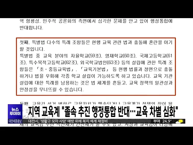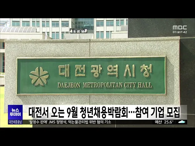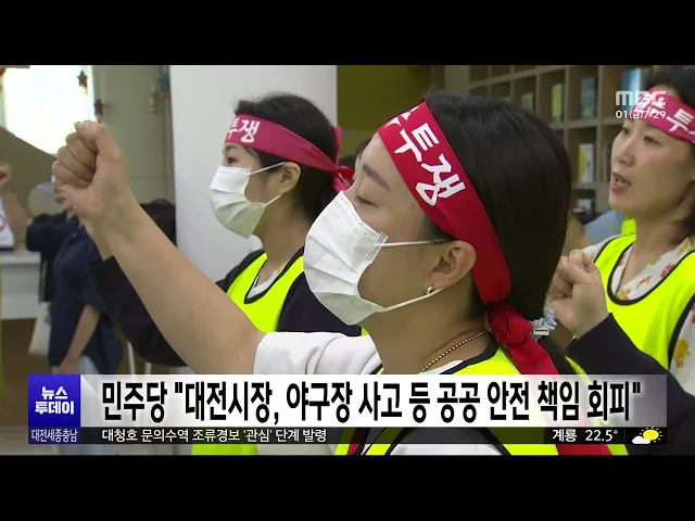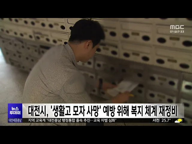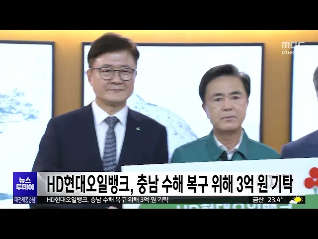뉴스투데이 뉴스데스크뉴스투데이뉴스데스크 VOD(전체 다시보기)뉴스투데이 VOD(전체 다시보기)유튜브뉴스페이스북 뉴스카카오톡 뉴스인스타그램 뉴스 prev 2025.8.1 - 금요일 next HD현대오일뱅크, 충남 수해 복구 위해 3억 원 기탁 HD현대오일뱅크가, 극한호우로 큰 피해를 본 충남 지역 복구를 돕기 위해, 성금 3억 원을 충남도에 추가 기탁했습니다. 임직원 급여 일부 등으로 마련된 성금은 사회복지공동모금회를 통해 수재민을 위한 ... 김윤미 당진화력 주변 주민·기업 연 2% 최대 5천만 원 융자 지원 당진시가 당진화력 주변 석문면·송악읍 주민과 기업에, 연 2% 금리의 융자를 지원합니다. 주민은 최대 2천만 원, 기업은 5천만 원까지 각각 융자 받을 수 있으며, 신청자가 많은 경우 장기 거주 주민·기업... 김지훈 대전서 오는 9월 청년채용박람회 개최..참여 기업 모집 지역 청년을 대상으로 일자리를 지원하는 대전 청년채용박람회가, 오는 9월 30일 대전시청에서 열립니다. 이번 박람회는 기업채용관, 청년정책관, 내일설계관으로 구성돼 청년 구직자들에게 다양한 직무와... 김윤미 스토킹 접근 금지 3천여 명 점검.."전자발찌 채운다"/투데이 ◀ 앵 커 ▶ 최근 교제 살인이 잇따르자, 경찰청장 직무대행이 급히 대전을 찾아, 관련 대책을 발표했습니다. 스토킹 등으로 접근금지 조치된 대상자 3천여 명을 모두 점검해, 재범 위험이 높은 경우 전자발... 김광연 태안군, 해수부에 격렬비열도 항만 개발 26억 원 요청 태안군이 '서해의 독도'로 불리는 격렬비열도의 영토 주권 확보를 강화하기 위해, 해양수산부에 격렬비열도 연안항 개발 설계비 26억 원을 반영해 달라고 요청했습니다. 격렬비열도는 지난 2022년 국가관... 김지훈 보령 대천리조트 관광단지 승인⋯3년간 514억 원 투입 보령시가, 숙원사업인 대천리조트 관광단지 조성계획이, 충남도 승인을 받아 확정됐다고 밝혔습니다. 이에 따라 오는 2028년까지 보령시 남포면 일원 96만여㎡에 민간자본 514억 원을 투입해, 기존 9홀 규... 김지훈 대전교육연대 "졸속 추진 대전충남 행정통합 반대" 충남교육청에 이어 대전지역 교육단체들도, 대전시와 충남도가 추진 중인 행정통합에 반대 입장을 냈습니다. 대전교육연대는 공동 성명에서 "행정통합 특별법 내 다수의 특례 조항이 현행 교육 관련 법과 ... 문은선 대청호 문의 수역 조류경보 '관심' 단계 발령 금강유역환경청이 어제 오후 3시를 기해, 대청호 문의 수역에 조류경보 '관심' 단계를 발령했습니다. 최근 집중호우에 댐으로 오염물질이 유입된 뒤 폭염이 이어지면서 유해 남조류가 급증했기 때문이라고... 김지훈 "폭염은 불평등한 재난"..사회 전반 안전망 필요/투데이 ◀ 앵 커 ▶ 기후 위기 속 '폭염 불평등' 실태를 짚어보는 기획 보도, 마지막 순서입니다. 도심의 폭염 격차. 폭염에 무방비인 농어촌을 통해, 이제 폭염이 자연재난을 넘어서 '불평등한 사회 재난'이 되고 ... 김성국 대전시, '생활고 모자 사망' 예방 위해 복지 체계 재정비 대전MBC가 단독 보도한 '대전 생활고 모자 사망 사건'과 관련해, 대전시가 복지 위기 발굴 체계를 재정비합니다. 이에 따라 일선 행정복지센터의 초기 상담을 강화해 고위험군을 빠르게 찾아내고, 공인중... 김지훈 "수업은 뒷전, 고함 반복" 서산 교사 '아동 학대' 수사 서산 교육지원청이, 지역 초등학교 담임 교사가 상습적으로 수업을 방임하고 학생을 학대했다는 의혹이 제기되자, 해당 교사를 아동학대 혐의로 경찰에 고발했습니다. 교육지원청은 이 교사가 수업 시간에... 윤소영 "해외번호를 010으로"..보이스피싱 도운 중계기 조직 검거 세종경찰청이, 해외 발신 보이스피싱 전화를, '010'으로 시작하는 국내 번호로 바꿔주는 불법 중계기를 설치·운영한 혐의로, 일당 20명을 붙잡아 14명을 구속했습니다. 이들은 지난 2022년 11월부터 수도... 김성국 "시간이 약은 옛말"..PTSD 치료 물질 개발/투데이 ◀ 앵 커 ▶ 충격을 겪은 뒤 심각한 불안과 고통을 호소하는 외상후 스트레스장애, 'PTSD'는, 그 경험이 잘 잊히지 않아 치료가 쉽지 않은데요. 국내 연구진이 발병 이유를 밝힌 데 이어, 치료 물질 개발에... 박선진 민주당 "대전시장, 병원 파업·야구장 사고 책임 회피" 대전 공공어린이재활병원 노사가 기본급 3% 인상에 합의하며 엿새만에 파업을 중단한 가운데, 민주당 대전시당이, "병원 파업 사태와 새 야구장 안전 사고 대응과 관련해, 이장우 대전시장의 책임 떠넘기... 이교선 장동혁 "당 대표 되면 윤 전 대통령 면회"…김소연도 최고위원 출사표 국민의힘 당 대표 선거에 나선 장동혁 의원이 대전시청 기자실을 찾아, "대표가 되면 윤석열 전 대통령 면회를 하겠다"고 말했습니다. 장 의원은 앞서 전한길 씨 등 보수 성향 유튜버들의 토론회에 참석해... 이교선 지역 경제단체 "노란봉투법 개정안 신중히 재검토해야" 노동조합법 2·3조 개정안, 이른바 '노란봉투법'이 국회 본회의 처리를 앞둔 가운데, 지역 경제단체들이 신중한 입법을 호소했습니다. 대전상공회의소 등은 "이번 개정안이 통과되면 경영상 판단에 따른 조... 문은선 관세청, '한미 관세 타결' 관련 세정 지원 확대 관세청이 오늘부