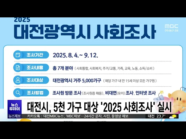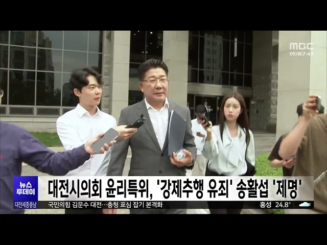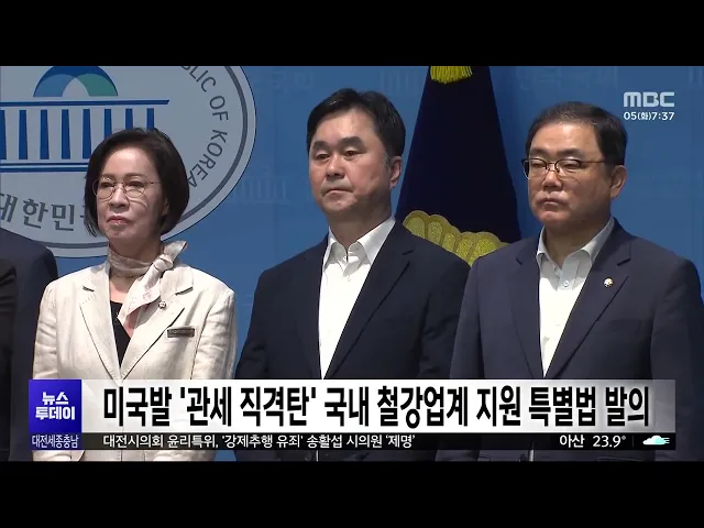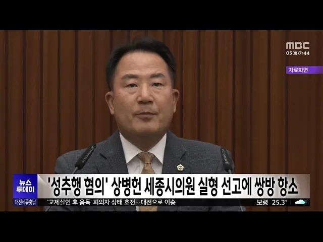 뉴스투데이 뉴스데스크뉴스투데이뉴스데스크 VOD(전체 다시보기)뉴스투데이 VOD(전체 다시보기)유튜브뉴스페이스북 뉴스카카오톡 뉴스인스타그램 뉴스 prev 2025.8.5 - 화요일 next '교제 살인 후 음독' 피의자 상태 호전...대전으로 이송 대전에서 전 여자친구를 살해하고 달아났다검거 직전 독극물을 마셔 충북의 한 병원에서 치료받던 20대 피의자가상태가 호전돼 대전으로 옮겨졌습니다.대전경찰청은 어제 전원이 가능하다는 주치의 소견에... 김윤미 '성추행 혐의' 상병헌 세종시의원 실형 선고에 쌍방 항소 세종시의회 의장을 지낼 당시 동성 동료 의원을 성추행한 혐의로 기소된 상병헌 세종시의원이 1심에서 실형을 선고받은 가운데 상 의원에 이어 검찰도 1심에 불복해 항소했습니다.상 의원은 선고 다음날인... 김윤미 대전시의회 윤리특위, '강제추행 유죄' 송활섭 시의원 ‘제명’ 대전시의회 윤리특별위원회가 강제추행 혐의로 1심에서 유죄를 선고받은 송활섭 시의원에 대해 제명을 의결했습니다.윤리특위는 송 의원의 품위유지의무 위반에 대한 제명안을 찬성 7표, 반대 2표로 가결... 이교선 금산 수난 사고 안전요원 등 3명 입건...경찰 "계도 없었다" 지난달 금산 금강 상류에서 물놀이하던20대 4명이 숨진 사고와 관련해경찰이 안전요원 2명과 금산군 공무원 1명을 업무상 과실치사 혐의로 입건했습니다.경찰에 따르면, 이들은 숨진 4명이물놀이 금지 구... 김성국 충남 상반기 무역수지 239억 달러 흑자…전국 시도 '1위' 충남이 올해 상반기 239억 달러의 무역수지 흑자를 기록해 전국 시도 가운데 1위를 차지했습니다. 충남도에 따르면, 수출은 전년 동기 대비 2.6% 감소한 427억 달러, 수입은 9.4% 줄어든 188억 달러로 집... 최기웅 대전시, 시민 5천 가구 대상 ‘2025 사회조사’ 실시 대전시가 ‘2025년 대전사회조사’를 다음 달 12일까지 실시합니다.시민 삶의 질과 의식 변화를 파악하기 위한이번 조사는 표본 선정 5천 가구를 대상으로 대중교통 만족도와 청년정책 선호도, 출산 지원 정... 이교선 '도요샛' 위성, 슈퍼 태양폭풍 속에서 우주 날씨 관측 지난 2023년 누리호를 통해 발사된 초소형 인공위성인 '도요샛'이 강력한 태양폭풍 속에서도 우주 날씨 관측에 성공했습니다.한국천문연구원은 지난해 5월 발생한 가장 강력한 태양폭풍 기간지구와 가장 ... 고병권 민주당 어기구 등 106명, 철강산업 지원 특별법 발의 미국발 '관세 폭탄'으로 직격탄을 맞은국내 철강업계를 지원하기 위한 특별법안이 여야 공동으로 발의됐습니다.당진을 지역구로 둔 민주당 어기구 의원 등은 국회에서 기자회견을 열고"철강산업의 경쟁력... 김윤미 독립기념관, 광복 80주년 기념 국제 학술심포지엄 개최 독립기념관은 광복 80주년과 개관 38주년을 기념해 내일국제 학술심포지엄을 개최합니다.'20세기 아시아, 탈식민으로의 경로'를 주제로 서울 글로벌센터에서 열리는 이번 심포지엄은제국주의 열강의 식민 ... 김윤미 서산시, 지난달 극한 호우 당일 주정차 위반 과태료 면제 서산시가 하루에만 400mm가 넘는 극한호우가 쏟아진 지난달 17일 단속된 주정차 위반 차량의 과태료를 전액 면제합니다.대상은 극한호우 당일 고정형 CCTV 등으로 단속된 주정차 위반 차량 86대로, 이미 ... 김윤미 당진시, 수재민 임시주거시설 임대료 6개월 지원 지난달 당진에서 극한호우로 주택 17채가 부서지고, 386채가 침수된 가운데임시주거시설 임대료가 지원됩니다.당진시는 수재민을 대상으로 이달부터 대덕동와 채운동 등의 LH 공공임대주택에 임시 거주할 ... 김윤미 대전시, 월평동 대전일보사 네거리 도로 확장 완료 상습 정체 구간이던 대전 서구 월평동 대전일보사 앞 네거리 도로가 확장공사를 마치고 전면 개통했습니다.대전시는 3억 2천만 원을 들여 약 200m 구간에 1개 차로를 추가 확보해 월평 네거리에서 갈마 네... 이교선 대전시 소비쿠폰 지급률 91.7%..신용카드 신청 '최다' 지난달 21일부터 정부가 지원에 나선'민생회복 소비쿠폰'의 대전시 지급률이 91.7%로 나타났습니다.대전시는 지난달 말 기준, 대상자의 91.7%인 130만 7천여 명에게 지급됐으며신청 수단은 신용·체크카드... 이교선 국민의힘 김문수·장동혁 나란히 방문..표심 잡기 본격화 국민의힘 당 대표 경선을 앞두고 후보들의 충청권 표심 잡기가 달아오르고 있습니다.김문수 후보는 대전을 찾아이장우 대전시장과 기자들을 잇따라 만나해수부 부산 이전 등을 비판하며 대여 투쟁의 적임... 이교선 한화, '베테랑 외야수' 손아섭 영입...'우승 향한 마지막 퍼즐'/투데이 ◀ 앵 커 ▶스포츠 톡톡 시간입니다.프로야구에서는 지난주, 한화이글스 팬들을 들썩이게 한트레이드 소식이 있었죠.KBO리그 최다 안타의 주인공이자베테랑 외야수 손아섭이,한화이글스에 합류했습니다.올 ... '진동 원인' 몰라도 안전?...교육청 "증축 공사 예정대로"/투데이 ◀ 앵 커 ▶교실이 좌우로 흔들려 수백 명이 대피하고, 곳곳에서 갈라짐 현상이 발생한 대전 특수학교에 대한 교육청의 긴급 정밀안전진단 결과가 나왔습니다.진동의 원인은 모르지만, 구조적으로 문제가 없... 이혜현 "겨우 응급 복구 마쳤는데.." '극한 날씨