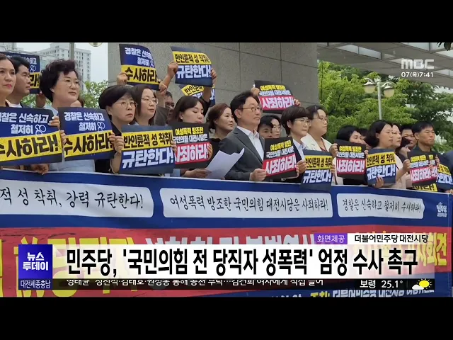 뉴스투데이 뉴스데스크뉴스투데이뉴스데스크 VOD(전체 다시보기)뉴스투데이 VOD(전체 다시보기)유튜브뉴스페이스북 뉴스카카오톡 뉴스인스타그램 뉴스 prev 2025.8.7 - 목요일 next 카이스트, 실시간 모양 바꾸는 로봇 소재 기술 개발 종이처럼 접었다 펴며 모양을 실시간으로 바꿀 수 있는 로봇 소재의 원천 기술이국내에서 개발됐습니다.카이스트 김정, 박인규 교수 공동연구팀은 로봇의 접는 위치와 방향 등의 접힘 구조를 실시간으로 ... 박선진 충남농업기술원, 침수 농업기계 1천여 대 긴급 수리 충남도 농업기술원은 지난달 쏟아진 극한 호우로 침수된 농업기계 1천80대를 긴급 수리했습니다. 아산과 서산, 당진, 예산 등 4개 시군에서 진행된 수리 작업은 경운기, 예초기, 관리기, 동력분무기 등 소... 최기웅 '국민의힘 전 당직자 성폭력' 경찰에 엄정 수사 촉구 더불어민주당 대전시당이 대전경찰청 앞에서 기자회견을 열고 불법 촬영물 유포 등의 혐의로 피소된국민의힘 대전시당의 전 당직자에 대한 엄정한 수사를 경찰에 촉구했습니다.민주당은 "이번 사건이 개인... 이승섭 금산공무원노조 "수난 사고, 개인 과실 아닌 군 차원 문제" 금산의 금강 상류에서 물놀이하던 20대 4명이 숨진 사고로 안전요원 2명과 공무원 1명이입건된 것과 관련해, 금산군 공무원노조가 반발하고 나섰습니다.노조 측은 "이번 사고 책임을군의 행정 시스템에 따... 김성국 대전 중앙로지하상가, '입찰 개입 의혹' 공무원 등 5명 고소 대전 중앙로지하상가 비상대책위원회가지난해 점포 입찰 과정에 대전시와 대전시설공단이 개입했다는 의혹을 제기하며 공무원 등 5명을 경찰에 고소했습니다.상인들은 입찰 참여자 수와 입찰 공고의 조회 ... 이승섭 세종시·충남도, 충남산림자원연구소 국유화 공동 건의 세종시와 충남도가 민간 매각을 추진해 온충남산림자원연구소 부지의 국유화 방안을 담은건의문을 국정기획위원회에 전달했습니다.두 지자체는 공동 건의문에서 연구소와 금강자연휴양림, 수목원을 국가 ... 문은선 환경단체, "4대강 재자연화 공론화" 환경부장관 사퇴 촉구 취임 사흘 만에 세종보를 찾아 4대강 재자연화 의지를 밝혔던 김성환 환경부 장관이 최근 공론화가 필요하다는 입장을 밝히자환경단체가 강하게 반발하고 있습니다.환경단체는 "이미 공론화를 거쳐 확정된... 김윤미 충청유니버시아드대회 개막 2년 앞두고 기념행사 개최 오는 2027년 충청권 4개 시도가 개최하는 충청 유니버시아드대회 개막을 2년 앞두고 내일 세종에서 기념행사가 개최됩니다.세종 호수공원에서 열리는 이번 행사에서는 지난달 독일 라인-루르 대회 폐막식... 김윤미 충남도, 폭우 피해 주민에 특별지원금 232억 지급 충남도가 지난달 극한호우 피해를 본 주민들을 위해 특별지원금 232억 원을 지급합니다.특별지원금은 충남도와 시군이 자체 재원으로 마련했으며 주택 피해의 경우 정부 지원액에 더해 최대 1억 2천만 원... 최기웅 충남 8개 시군·세종 전동면 특별재난지역 추가 선포 지난달 쏟아진 극한 호우로 큰 피해를 본 충남 지역 8개 시군과 세종 전동면이 특별재난지역으로 추가 선포됐습니다.대상 지역은 아산과 당진 등 충남 7개 시군과서천군 판교면과 비인면, 세종시 전동면으... 이승섭 충청권교육청, '교육자료' AIDT 사후 대책 마련 고심 초·중등교육법 개정으로 1년 만에인공지능 디지털교과서, AIDT가 교과서가 아닌 교육자료가 되면서시도교육청이 사후 대책 마련에 고심하고 있습니다.교육부는 최근 전국 시도교육청과 협의회를 열고 현장... 문은선 '대전 0시 축제' 교통 통제 시작..시설물 안전 점검 내일 개막하는 '대전 0시 축제'를 앞두고어제부터 12일 동안 행사장 주변인 대전역에서 옛 충남도청까지 1km 구간 등중앙로 일대의 교통이 전면 통제됩니다.이에 따라 통제 구간을 지나는 29개 시내버스 ... 이승섭 대전역·불티고개, 다음 달 트램 지하화 공사..일부 차로 통제 대전시가 대전도시철도 2호선 트램 노선의지하화 구간 가운데 일부인 대전역 지하차도와대전 서구 불티고개 공사를 다음 달부터 시작합니다.2~3년 동안 공사가 진행될 두 구간은 공사 기간에 차로가 기존... 이승섭 고장으로 멈춘 KTX..."3시간 넘게 터널에 갇혀"/투데이 ◀ 앵 커 ▶800명이 넘는 승객을 태우고 달리던 호남선 KTX 열차가 갑자기 고장 나세종시에 있는 터널 안에서 멈춰 서는 일이 발생했습니다.결국, 다른 열차를 투입해인근 오송역으로 옮겼는데요.3시간 넘게... 김성국 '대전 교제 살인' 피의자 구속...계획범죄 여부 등 집중 조사/투데이 ◀ 앵 커 ▶대전에서 전 여자 친구를 흉기로 살해한 혐의를 받는 20대 남성이 구속됐습니다.피의자는 경찰 조사에서 피해자가 "자신을 무시한다"고 느껴 범행을 저질렀다고 진술한 것으로 알려졌는데요. 경... 김광연 "대전에 5만 5천 개 일자리"...허울뿐인 약속?/투데이 ◀ 앵 커 ▶지역 현안과 사회 문제의 참된 진실을 파헤치는 팩트체크 기획보도뉴스참 순서입니다.대전시는 올해 청년 일자리 9천 개를 포함해모두 5만 5천 개 넘는 일자리를 만들겠다고 강조했는데요.대전시... 이혜현 명태균 SNS 파장 일파만파.."법적 대응 