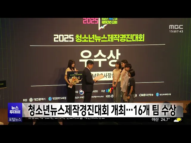 뉴스투데이 뉴스데스크뉴스투데이뉴스데스크 VOD(전체 다시보기)뉴스투데이 VOD(전체 다시보기)유튜브뉴스페이스북 뉴스카카오톡 뉴스인스타그램 뉴스 prev 2025.8.15 - 금요일 next '출소 9달 만에 지인 살해' 박찬성 무기징역 선고 교도소에서 출소한 지 아홉 달 만에 지인을 살해한 혐의로 기소된 박찬성에게, 무기징역이 선고됐습니다. 대전지법 제11형사부는 살인 혐의 등으로 기소된 박 씨에게 "누범 기간에도 각종 범죄를 반복했고... 김광연 전세 사기에 7백억 대 불법 대출 새마을금고 임직원 등 기소 대전지검 공판부가, 건설업자에게 금품을 받고 수백억 원대 불법 대출을 해주며 전세 사기의 자금줄 역할을 한 혐의로, 대전 모 새마을금고 임직원 6명 등 13명을 무더기로 기소했습니다. 이들은 건설업자... 김광연 대전시, 위기 가정 신고 '꿈씨 희망 명함' 배포 지난달, 대전 서구의 한 아파트에서 생활고에 시달리던 모자가 숨진 사건을 계기로, 대전시가, 복지 사각지대에 놓인 가정이 손쉽게 도움을 요청하도록 명함을 제작했습니다. 시는 시민 누구나 위기 상황... 이승섭 청소년뉴스제작경진대회 개최..세종캠퍼스고 등 16개 팀 수상 전국의 청소년들이 다양한 분야의 주제로 뉴스를 직접 제작해 기량을 겨루는 청소년 뉴스제작 경진대회 시상식이, 대전 시청자 미디어센터에서 열렸습니다. 미디어 인재 양성을 목표로 올해로 11번째 열리... 김윤미 "상향등 깜박이고 수상" 택시 기사 기지가 막은 '음주 도주극'/투데이 ◀ 앵 커 ▶ 한밤중 만취 상태로 대전 도심을 질주하던 40대 운전자가, 택시 기사의 기지와 끈질긴 추격 덕분에 경찰에 붙잡혔습니다. 상향등을 여러 차례 깜박이는 등, 수상한 모습을 무심코 넘기지 않았습... 이혜현 카이스트, '전력 없이 빛만으로' 세계 최고 광센서 개발 전력 없이 빛만으로 작동하는 무전력 광센서를, 국내 연구진이 개발했습니다. 카이스트 이가영 교수 연구팀은 전기 없이도 빛만으로 스스로 전기 신호를 만들면서도 기존 제품보다 민감도가 최대 20배 향... 박선진 천안시, '소비쿠폰' 천안사랑카드 적립금 행사 진행 천안시는 민생회복 소비쿠폰의 조기 사용을 독려하고 소비 활성화를 위해, 천안사랑카드 적립금 행사를 진행합니다. 이에 따라 이달 말까지 천안사랑카드로 지급된 소비쿠폰 전액을 사용한 시민을 대상으... 문은선 당진 관광객 500만 명 돌파⋯"올해 1천만 명 목표" 올해 들어 당진을 찾은 관광객이, 500만 명을 넘어선 것으로 집계됐습니다. 이는 지난해 같은 기간보다 10% 가까이 늘어난 것으로, 삽교호 관광지의 야간 콘텐츠 운영과 체류형 관광상품 육성 등의 효과로... 김윤미 충남 국립대 의대 신설 서명 100만 명 넘어서 충남도가 국립의대 신설을 위해 추진 중인 서명운동 참여자가, 100만 명을 넘어섰습니다. 서명운동은 지역 의료 기반 강화를 위해 공주대 예산캠퍼스에 의과대학을 신설해 달라는 요구를 담아 진행됐으며 ... 최기웅 '지천댐' 논란, 충남도·청양군 갈등 격화/투데이 ◀ 앵 커 ▶ 환경부가 기후대응댐 건설 문제에 대해 재검토에 들어가는 등 추진이 전면 중단되면서 ,'불똥'이 충남도와 청양군의 갈등으로 번지고 있습니다. 김태흠 지사가 댐 건설에 소극적이라... 최기웅 대청호 문의·회남수역 조류경보 '경계'로 상향 금강 유역환경청이, 대청호 문의·회남 수역 조류경보를 '경계' 단계로 높여 발령했습니다. 지난달 쏟아진 집중호우로 인·질소 등 영양염류가 많아진 상태에서 폭염까지 이어지면서 유해 남조류가 급증했기... 김지훈 국립세종수목원서 17일까지 '광복 80년 기념 무궁화 대축제' 산림청이 광복 80주년을 맞아 국립세종수목원에 마련한 '나라꽃 무궁화 대축제'가 개막해, 오는 17일까지 계속됩니다. 수목원에는 전국에서 출품한 무궁화 분화 천여 점이 선보이고 있으며 AI로 만나는 무... 문은선 독립기념관, 광복 80주년 '태극기, 바람 속의 약속' 특별전 독립기념관이 광복 80주년을 맞아, 태극기와 함께한 독립운동의 여정과 광복의 기쁨을 되새기는 특별전시회를, 오늘부터 개최합니다. '태극기, 바람 속의 약속'을 주제로 독립기념관 야외 공간에서 열리는... 김윤미 "제 본적은 독립기념관입니다."/투데이 ◀ 앵 커 ▶ 광복 80주년 기획보도 순서입니다. 윤동주 시인과 홍범도 장군, 나라를 지키기 위해 앞장섰던 이들에게는, 또 다른 공통점이 있습니다. 본적이, 다름 아닌 독립기념관이라는 건데요. 사연을, 박... 박선진 독립기념관서 제80주년 광복절 경축 문화행사 열려 제80주년 광복절 경축 문화행사 '겨레의 빛'이, 오늘 오전 10시 천안시 독립기념관 겨레의집에서 열립니다. 광복 80주년을 기념하는 경축식에 이어 겨레의 큰마당 등 독립기념관 일원에서는 블랙이글스에... 박선진 국힘 충청권 시도지사, 오늘 국민임명식 불참 오늘 서울 광화문 광장에서 열리는 이재명 대통령의 국민임명식에, 충청권 시도지사들은 참석하지 않는 것으로 확인됐습니다. 국민의힘 소속인 이장우 대전시장은 내일 저녁 0시 축제 광복절 퍼레이드 참... 문은선 고 김충현 노동자 사망 2달여..재발 방지 협의체 출범 고 김충현 노동자가 태안화력발전소에서 