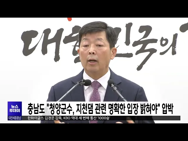 뉴스투데이 뉴스데스크뉴스투데이뉴스데스크 VOD(전체 다시보기)뉴스투데이 VOD(전체 다시보기)유튜브뉴스페이스북 뉴스카카오톡 뉴스인스타그램 뉴스 prev 2025.8.19 - 화요일 next 천안서 중학생 집단폭행한 10대 5명...일부 '촉법소년' 천안에서 중학생이 집단 폭행을 당해 경찰이 수사에 나섰습니다.천안동남경찰서는 지난 14일 천안시 신부동의 한 공터에서중학교 1학년 여학생을 무리 지어 폭행하고폭행 과정을 휴대전화로 촬영한 혐의 ... 이혜현 충남도 "청양군수, 지천댐 관련 명확한 입장 밝혀야" 압박 충남도가 "청양 지천댐 건설과 관련해 환경부의 조속한 결정을 촉구한 김돈곤 청양군수는 공식 입장을 밝혀야 한다"고촉구했습니다.박정주 행정부지사는 도청에서 기자회견을 열고 "군수의 모호한 입장은 ... 최기웅 카이스트·생명연 등 "노화 속도 늦추는 단백질 발견" 카이스트와 생명공학연구원 등 국내 공동 연구진이 노화의 속도를 늦추는 '펠로타' 단백질을 발견해 특성을 규명했습니다.연구팀은 펠로타 단백질이 세포의 신호전달과 단백질 합성을 조절하는 'mTOR'(엠... 고병권 철도공단, 녹색채권 700억 원 발행..호남고속철 2단계 투입 국가철도공단이 친환경 철도 건설 자금 조달을 위해 700억 원 규모의 녹색채권을 발행했습니다.이번 발행으로 확보한 700억 원 전액은 호남고속철도 2단계 건설사업에 투입됩니다.앞서 공단은 지난 2023년... 김지훈 세종시 추경예산 1천57억 편성..소비쿠폰 등 반영 세종시가 천57억 원 규모의 제2회 추경예산안을 편성해 세종시의회에 제출했습니다.이번 추경예산안에는 지역 소비 촉진과 소상공인 지원을 위한 민생회복 소비쿠폰 예산으로 726억 원이 반영됐고, 영유아... 김지훈 '꿈씨 스니커즈' 제작..올해 말 한정판 출시 예정 대전시와 대전관광공사, 미국 프리미엄슈즈 브랜드 등이 업무협약을 맺고대전의 대표 관광 캐릭터인 꿈씨패밀리를활용해 스니커즈를 제작합니다.시는 사업 총괄 조정과 행정 지원을,대전관광공사는 캐릭터... 문은선 2025 을지연습 나흘간 진행..20일 민방위 대피 훈련 대전시를 비롯해 각 기관별로 2025 을지연습이 시작돼 오는 21일까지 나흘 동안 계속됩니다.특히 올해 을지연습은 드론과 GPS,사이버 공격 등 신무기 대비 실전 훈련이대폭 강화됐습니다.을지연습의 일환... 문은선 금산 추부면 1천여 세대에 2028년부터 도시가스 공급 금산군 추부면 천여 세대에 오는 2028년 하반기부터 도시가스가 공급됩니다.이에 따라 오는 2028년까지 3년 동안132억 원이 투입돼 18km의 도시가스 배관이새로 구축됩니다.지난해 말 기준 충남의 도시가... 김지훈 청양군, 충청권 고속도로 휴게소 이용객에 관광지 할인 청양군이 '2025∼2026 충남 방문의 해'를 맞아 내년 말까지 충청권 고속도로 휴게소 이용객을 대상으로 지역 내 관광지 입장료 최대 50%를 할인해 줍니다.이에 따라 청양 지역 관광지 입장 시 1만 원 이상 ... 최기웅 서산시, 호우피해 마을안길·배수로 등 121곳 복구 박차 서산시는 지난달 극한호우 피해를 본 마을안길과 배수로 등 121곳 복구에 나섰습니다. 시는 다음 달까지 5억 5천여만 원을 투입해 침수·유실된 마을안길과 배수로를 정비하고 농경지 진입로를 복구하는 한... 최기웅 서천사랑상품권, 다음 달부터 월 100만 원까지 구매 가능 서천군이 다음 달부터 서천사랑상품권의 월 구매 한도를 70만 원에서 100만 원으로 늘립니다.보유 한도도 150만 원에서 200만 원으로 확대되고, 환급률 역시 10%에서 15%로 올라, 최대 15만 원까지 환급받... 윤소영 "충전 중 갑자기 펑"...'배터리 폭발 화재' 주의보/투데이 ◀ 앵 커 ▶얼마 전 대전 도심의 한 오토바이 매장에서 전기오토바이 충전 중에 불이 나인근 상가로 번지는 등 큰 피해가 났습니다.최근 자동차는 물론, 오토바이와 이륜 전동차, 드론 등에도 배터리가 널리... 이혜현 '기록의 사나이' 폰세, KBO리그 새 역사 쓰다/투데이 ◀ 앵 커 ▶스포츠 톡톡 시간입니다.프로야구 한화이글스의 '에이스'코디 폰세가, 한국프로야구 역사에 큰 획을 그었습니다.올 시즌 개막 후 선발 15연승을 이어갔고 역대 최소 경기200탈삼진을 기록하며, ... '성추행 혐의' 대전시의원 제명안 '또 부결'/투데이 ◀ 앵 커 ▶'성추행 혐의'로 1심에서 징역형을 선고받은송활섭 대전시의원 제명안이 대전시의회에서 또다시 부결됐습니다.시민사회는 "대전시민을 모욕한 처사"라며송 의원은 물론 대전시의원 전원 사퇴를촉... 문은선 '광복은 연합국의 선물' 김형석 사퇴 압박/투데이 ◀ 앵 커 ▶광복절 기념사에서 '광복은 연합국의 선물'이라고 말한 김형석 독립기념관장을 향한 비판 여론이 들끓고 있습니다.정치권과 대통령실, 지역 시민단체까지김형석 관장에게 사퇴 압박을 가하고 있... 이승섭