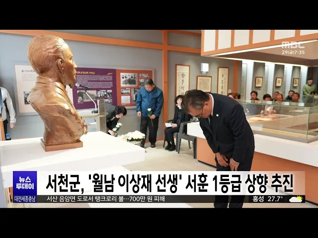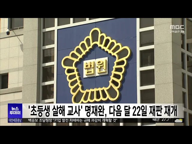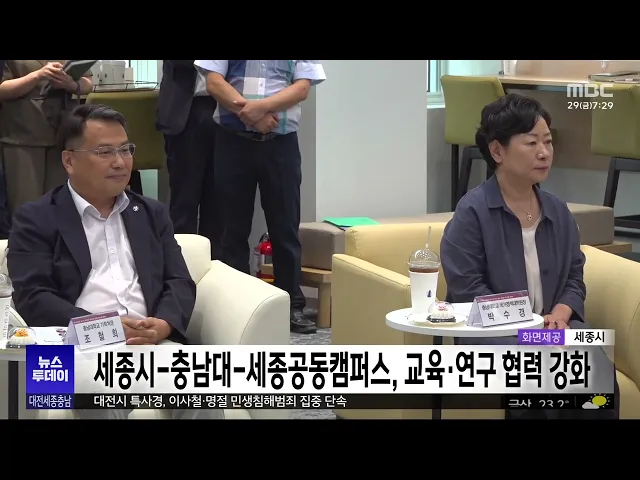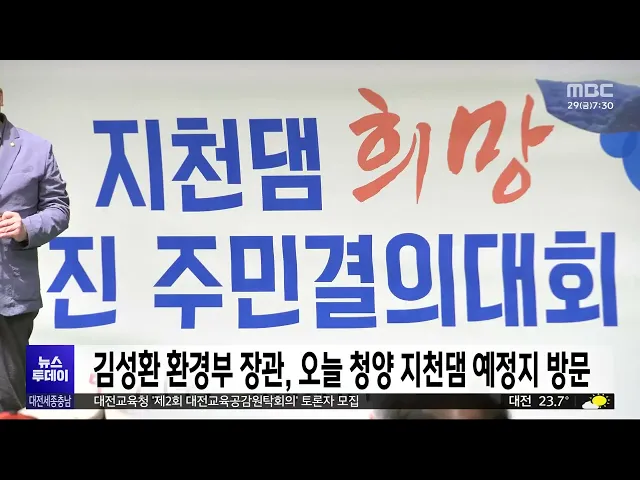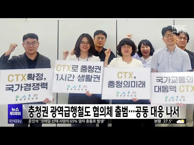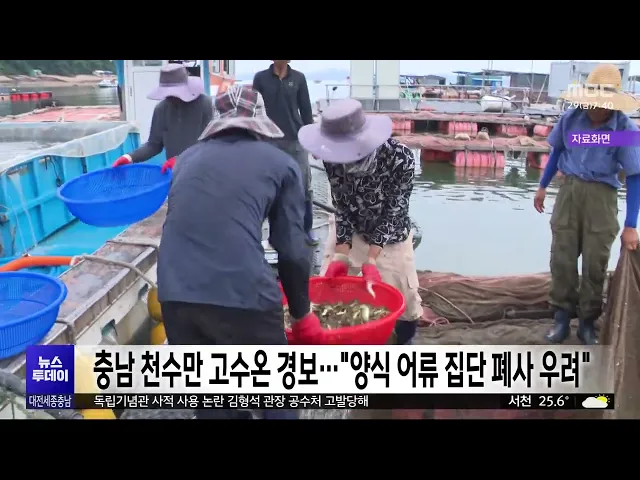 뉴스투데이 뉴스데스크뉴스투데이뉴스데스크 VOD(전체 다시보기)뉴스투데이 VOD(전체 다시보기)유튜브뉴스페이스북 뉴스카카오톡 뉴스인스타그램 뉴스 prev 2025.8.29 - 금요일 next '무궁화호 열차사고' 코레일, 추석 승차권 예매 2주 연기 지난 19일 발생한 무궁화호 열차 사고 여파로 추석연휴 승차권 예매가 2주 연기됐습니다.한국철도공사는 사고 관련 선로 안정화 조치 등으로 애초 다음 달 1일부터 4일까지였던 명철 승차권 예매를 다음 ... 문은선 1차 소비쿠폰 발행률 98% 웃돌아..다음 달 12일 신청 마감 대전과 세종, 충남 지역민의 98% 이상이정부의 민생회복 소비쿠폰을 받은 가운데각 시도가 아직 신청하지 않은 시도민의 조속한 신청을 당부했습니다.1차 민생회복 소비쿠폰은 다음 달 12일 저녁 6시까지 ... 이승섭 국민의힘 대전시당 주요 당직자 인선..지방선거 채비 장동혁 국민의힘 신임 대표가 선출 직후지방선거 준비기획단 발족을 강조한 가운데 지역에서도 주요 당직 인선을 서두르며 내년 지방선거 채비에 들어갔습니다.국민의힘 대전시당은 시당 부위원장과 특별... 문은선 서산 대산석유화학단지, '산업위기 선제대응지역' 지정 국내 3대 석유화학단지 가운데 하나로공급 과잉 등 구조적 어려움을 겪고 있는서산 대산석유화학단지가 '산업위기 선제대응지역'으로 지정됐습니다.이번 지정에 따라 정부는 2년 동안 서산시에 긴급 경영... 이승섭 충남 천수만에 고수온 경보.."양식 어류 집단 폐사 우려" 국립수산과학원이 충남 서해안 천수만 해역에 고수온 경보를 발령하고, 양식장 관리에주의를 당부했습니다.고수온 경보는 바닷물 온도가 사흘 이상 28도를 넘을 때 발령되는데, 현재 천수만 일부 해역 수... 김지훈 한화이글스, 10개 구단 중 안전사고 두 번째로 많아 야구장 안전사고가 해마다 증가하는 가운데 한화이글스가 10개 구단 가운데 안전사고가 두 번째로 많은 것으로 나타났습니다.한국야구위원회가 국민의힘 조은희 의원에 제출한 자료에 따르면, 최근 5년간 ... 김윤미 '초등생 살해 교사' 명재완, 다음 달 22일 재판 재개 대전의 한 초등학교에서 고 김하늘 양을 살해한 혐의로 구속기소된 전직 교사 명재완에 대한 재판이 다음 달 재개됩니다.대전지법 제12형사부는 명 씨 측이 신청한 정신감정을 이유로 지난 6월부터 잠정 ... 이혜현 법원 "한전KPS 불법파견..비정규직 직접고용 의무 있어" 태안화력에서 숨진 고 김충현 씨의 원청인 한전KPS의 비정규직 노동자들이 낸 소송에서법원이 한전KPS 직접고용 의무를 인정하며노동자들의 손을 들어줬습니다.서울중앙지법 민사합의41부는근로자지위확인... 이혜현 서천군, '월남 이상재 선생' 서훈 1등급 상향 추진 서천군이 광복 80주년을 맞아지역 출신 독립운동가인 월남 이상재 선생의서훈 등급 상향을 본격 추진합니다.서천군은 서훈 상향 추진위원회를 꾸려서훈을 1등급으로 격상하기 위해 공적 자료를 추가로 발... 문은선 부여 쌍북리 일대 '백제 사비기 사찰' 존재 가능성 확인 부여 쌍북리 일대에 백제 사비기 사찰이 존재했을 가능성이 확인됐습니다.국가유산청 국립부여문화유산연구소 등이 지난 6월과 7월 유구분포조사를 한 결과, 부소산 주변에서 중요 건물을 축조할 때사용하... 문은선 백석대·백석문화대 새 총장 취임, 미래 비전 선포 천안 백석대학교와 백석문화대학교가 총장 이·취임식을 열고 새로운 도약을 다짐했습니다.백석대는 장종현 총장이 이임하고 제8대 송기신 총장이 취임해 창의 융합 인재 양성을 강조했고, 백석문화대는 산... 이교선 건양대, ‘K-국방산업 선도대학’ 글로컬대학 비전 선포 건양대학교가 ‘K-국방산업 선도대학’을 목표로 글로컬대학 비전 선포식을 열고 미래 국방산업을 이끌겠다고 밝혔습니다.건양대는 논산 글로컬캠퍼스에서 열린 선포식에서 국방산업 중심의 지역발전 선도와... 이교선 김성환 환경부 장관, 오늘 지천댐 건설 예정지 방문 김성환 환경부 장관이 오늘 찬반 논란이 이어지는청양 지천댐 건설 예정지를 찾습니다.김 장관은 지천댐 건설 예정지를 찾아충남도와 한국수자원공사로부터 댐의 필요성과 후보지 검토 현황을 듣고,지역민... 김윤미 세종시-충남대-세종공동캠퍼스, 교육·연구 협력 강화 세종시와 충남대, 세종공동캠퍼스가 정부의 '서울대 10개 만들기' 정책에 맞춰지역의 교육 여건을 개선하고 교육과 연구 분야 협력을 강화하기로 했습니다.이들 기관은 업무협약에 따라 세종시는 지역 거... 이승섭 충청권 광역급행철도 협의체 출범..공동 대응 나서 충청권 광역급행철도, CTX 사업에 대해예비타당성조사 격인 민자 적격성 조사가 진행 중인 가운데 충청권 지자체들이 협의체를 공식 출범하고 공동 대응체계를 가동했습니다.대전과 세종, 충북은 첫 정례 ... 문은선 "화상입은 듯 타버려"..'햇볕데임'에 속 타는 과수 농가/투데이 ◀ 앵 커 ▶좀처럼 꺾이지 않는 폭염에 사과 주산지인 예산에 비상이 걸렸습니다.강한 햇빛에 과일이 타들어 가는 '햇볕데임', 일소 피해가 늘고 있기 때문인데요.추석을 앞두고 대목을 기대하고 있던 과수 ... 김성국 터질 것 같은 학교 생활복‥'살 빼서 옷에 