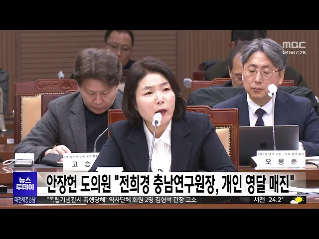 뉴스투데이 뉴스데스크뉴스투데이뉴스데스크 VOD(전체 다시보기)뉴스투데이 VOD(전체 다시보기)유튜브뉴스페이스북 뉴스카카오톡 뉴스인스타그램 뉴스 prev 2025.9.4 - 목요일 next 대전시, 추석 앞두고 식육 수급 총력.."도축 확대·위생 강화" 대전시 보건환경연구원이 추석을 앞두고 육류 소비가 급증할 것으로 보고 도축검사 강화와 작업장 위생 관리 등 식육 수급 안정에 나섭니다.이에 따라 8일부터 24일까지 도축장 작업 시작 시간을 평소보다... 김지훈 대전시, 대정동 종합물류단지 20년 만에 재정비 대전시는 유성구 대정동 일원에 46만㎡ 규모로 조성된 대전종합물류단지를 20년 만에 재정비합니다.이에 따라 물류 시설 건축물 높이 기준을완화하고, 대형 화물차 통행이 쉽도록 도로와 교차로 정비에 나... 김지훈 카이스트, 대전 로봇밸리 조성 추진..136억 원 투입 카이스트가 앞으로 3년여 동안 136억여 원을 들여 대전에 '로봇밸리'를조성합니다.이에 따라 원천기술을 바탕으로 혁신 로봇기업을 집중적으로 육성하고, 대전이 보유한 우수한 연구인력과 창업·투자 생태... 김지훈 '천안이봉주마라톤대회' 참가 신청 10여 분 만에 마감 다음 달 26일 천안종합운동장 일대에서 열리는 제4회 천안이봉주마라톤대회가 참가 신청 접수 10여 분 만에 5천 명이 신청하면서 조기 마감됐습니다.이 대회는 대한민국 마라톤의 상징으로 천안 출신인 이... 김지훈 보령 무창포 대하·전어 축제 12~28일 개최 보령시가 오는 12일부터 28일까지 무창포해수욕장에서 대하·전어 축제를 개최합니다.제철 대하와 전어를 맛본 뒤에는 무창포타워, 신비의 바닷길, 닭벼슬섬 등에서 '무창포 낙조 5경'을 감상할 수 있다고... 김지훈 충남 내포신도시서 20일 드론 페스타..1천2백 대 라이트쇼 충남도는 오는 20일 홍성·예산 내포신도시에서 '2025 드론 페스타'를 개최합니다.이번 행사에는 국내외 드론 스포츠 선수단과 관람객 등 만여 명이 참여할 것으로 예상되며, 드론 레이싱과 드론 농구 등으... 김지훈 공주에 한옥마을 4곳 추가 조성.."역사문화관광 거점화" 충남도가 백제 고도 공주를 역사문화관광의 거점으로 육성하기 위해 2036년까지 천3백 호 규모의 한옥마을 4곳을추가로 조성합니다.김태흠 충남지사는 시군방문 세 번째 일정으로공주를 찾아 이같이 밝힌 ... 김지훈 대전서 무단 방치 이동장치 4만 9천 건 단속 올해 들어 지난달까지 대전 지역 개인형 이동장치 무단 방치 단속 건수가 4만 9천여 건으로 지난해 1년치를 넘었습니다.현재 대전에서는 인도나 차도 등에 무단 방치된 개인형 이동장치가 발견되면대여 업... 김지훈 세종경찰, 사흘 동안 26차례 차 털이 10대 7명 송치 세종남부경찰서가 세종과 충북 일대를 돌며 주차된 차량 안에서 수백만 원의 금품을 훔친 혐의로 10대 7명을 불구속 송치했습니다.10대 피의자들은 지난 7월 세종시 다정동의 한 아파트 지하 주차장에 세... 김지훈 허위 난민 신청 알선한 혐의로 40대 몽골인 송치 법무부 대전출입국·외국인사무소가장기 체류를 원하는 몽골인들을 상대로 돈을 받고 허위로 난민 신청을 알선한 혐의로 몽골 국적의 40대 여성을 불구속 송치했습니다.이 여성은 지난 2023년 6월부터 지난... 김성국 대전시민천문대, 8일 개기월식 공개 관측회 열어 오는 8일 달이 지구 그림자로 완전히 들어가는 개기월식이 3년 만에 펼쳐질 예정인가운데, 대전시민천문대가 공개 관측회를 마련합니다.이번 개기월식은 8일 새벽 1시 26분 시작해 새벽 2시 반쯤 달이 최... 김지훈 세종 심정지 환자 회복률 2년 연속 전국 최고 세종시의 심정지 환자의 회복률이 20.9%로 2년 연속 전국에서 가장 높은 것으로 나타났습니다.최근 5년 평균 심정지 환자 회복률 역시 17.7%로 전국 평균 10.8%를 크게 웃돌았습니다.세종소방본부는 1급 ... 김지훈 "전희경 충남연구원장, 개인 영달에 매진" 전희경 충남연구원장의 부적절한 정치 행보에대한 대전MBC 보도와 관련해, 충남도의회에서도"전희경 원장이 개인 영달을 위해 업무 외 일에 매진한다"는 비판이 나왔습니다.충남도의회 안장헌 의원은 도 ... 김지훈 '익산 고구마 버거' 흥행...소외된 농산물 빛 볼까/투데이 ◀ 앵 커 ▶세계적인 패스트푸드 프랜차이즈인 맥도날드가 얼마 전 전북 익산 고구마를 활용한 버거를 출시했는데, 한 달 만에 판매량 200만 개를 돌파하며 큰 인기를 끌었습니다.농산물 판로 확보에 어려움... 윤소영 기후대응 '지천댐'...대응인가? 위기인가?/투데이 ◀ 앵 커 ▶앞서 지천댐을 둘러싼 지역 내 찬반 갈등을 어제 집중적으로 전해드렸는데요.과연 지천댐이 '기후대응댐'이라는 이름에걸맞게 실제로 기후 위기를 극복할 수 있는 대안이 될 수 있을지를,김성국 ... 김성국 본인도 몰랐던 기소유예.."무너진 코리안 드림"/투데이 ◀ 앵 커 ▶한국인으로서 삶을 꿈꾸던 베트남 여성이 자신도 몰랐던 '기소유예 처분' 때문에 귀화가 불발됐습니다.대전경찰에 불법행위가 적발된 다른 여성이 신분증을 도용한 건데, 수사당국은 무너진 코리... 김광연 주민 뺀 '행정통합' 졸속 추진..."시대착오"/투데이 ◀ 앵 커 ▶인구 감소와 수도권 쏠림에 대응하기 위해대전시와 충남도가 '