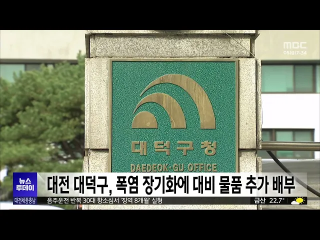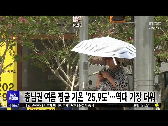 뉴스투데이 뉴스데스크뉴스투데이뉴스데스크 VOD(전체 다시보기)뉴스투데이 VOD(전체 다시보기)유튜브뉴스페이스북 뉴스카카오톡 뉴스인스타그램 뉴스 prev 2025.9.5 - 금요일 next 조달청, 혁신제품 67개 지정..공공구매 규모 2조 원 확대 조달청이 공공성과 기술 혁신성을 인정받은 67개 제품을 혁신제품으로 지정했습니다.혁신제품에는 AI기반 개인정보 보안 솔루션, AI 광역 재난 현장 지휘차 등 다양한 AI 분야 제품이 포함됐습니다.혁신제... 문은선 대전시, '꿈돌이 컵라면'도 출시..12일부터 출시 행사 대전시가 지역 대표 캐릭터 '꿈돌이'를활용한 꿈돌이 라면에 이어 컵라면을 오늘 출시합니다.꿈돌이 컵라면은 대전역 3층과 꿈돌이 하우스, 신세계백화점 대전홍보관, GS25 편의점 등에서 판매되며 대전시... 문은선 산림청, 드론 등 활용해 임산물 불법 채취 집중 단속 산림청이 임산물 수확기를 맞아 오는 15일부터 다음 달 말까지무분별한 임산물 채취를 집중 단속합니다.이를 위해 주요 임산물 자생지 등에특별사법경찰 등을 집중 배치하고,드론감시단과 산불무인감시카... 문은선 대전 중구통, '자치구 최초' 국비 지원..지침 개정 성과 지역화폐 국비 직접 지원에서 배제됐던특·광역시 자치구도 국비를 직접 받을 수 있게 됐습니다.대전 자치구 가운데 유일하게 지역화폐 '중구통'을 발행하는 중구는 정부에 관련 지침 개정을 건의해 올해 ... 문은선 충남 청년농 500여 명 '스마트팜 청년 협회' 구성 충남 지역 스마트팜 청년 농업인 500여 명이 '충남 스마트팜 청년 협회'를 꾸리고본격 활동에 들어갔습니다.협회는 시설원예 2천㎡ 이상을 경영하는 45살 이하 청년 농업인으로 구성됐으며 청년 주도의 생... 최기웅 음주운전 수차례 반복 30대, 항소심서 실형 선고 음주운전으로 3차례나 처벌받고도 집행유예 기간 또다시 술에 취해 운전한 30대에게 항소심에서 실형이 선고됐습니다.대전지법 3-3형사부는 지난해 6월, 충남 보령에서 청양까지 약 10km 구간을면허 정지 ... 김성국 '아동안전지킴' 편의점, 길 잃은 아이 도와 가족 인계 길을 잃은 아이를 무사히 가족에게 보내준아동안전지킴이집 편의점 사연이 뒤늦게 알려졌습니다.지난 7월 대전 서구의 한 편의점에 10살 아이가 들어와 '길을 잃었다'며 도움을 청하자, 20대 아르바이트생... 김성국 '비위 의혹' 가세로 태안군수 "정치적 음해…군정 방해 안 돼" 각종 비위 의혹으로 수사 대상에 오른 가세로 태안군수가 기자회견을 열고 "지방선거를 앞두고 현직 군수를 흠집내기 위한 정치적 음해와 모함"이라고 반박하며 "결국 피해는 군민에게 돌아간다"고 주장했... 최기웅 대전시, '가뭄 재난' 강릉에 병입 수돗물 긴급 지원 대전시가 극심한 가뭄으로 재난사태가 선포돼 제한 급수를 시행 중인 강릉시에 병입 수돗물 1차분, 1.8ℓ짜리 8천 병을긴급 지원했습니다.대전시는 강릉 지역의 가뭄이 장기화할 경우, 추가 지원을 검토할 ... 문은선 대전 대덕구, 폭염 장기화에 대비 물품 추가 배부 폭염이 장기화하면서 대전 대덕구가냉방기기가 없는 취약 어르신과장시간 실외 활동을 하는 주민들에게폭염 대비 물품을 추가 배부합니다.이에 따라 폭염 취약 어르신 370명에게쿨매트와 넥쿨러를 우선 전... 문은선 충남권 여름 평균 기온 '25.9도'..역대 가장 더워 대전과 세종, 충남 지역의 올여름 날씨가역대 가장 더웠던 것으로 나타났습니다.충남권의 올해 6월에서 8월까지 평균 기온이평년보다 1.8도 높은 25.9도로 역대 가장높았고, 늦더위가 이어지면서 폭염일수... 김성국 '학생 성추행 혐의' 서산 중학교 교사 직위 해제 서산의 한 중학교 교사가 여학생들을 지속적으로 성추행한 혐의로 경찰 수사를 받는 가운데 학교 측이 해당 교사를 직위 해제했습니다.학교 측은 교장 명의 사과문을 통해"해당 교사에 대해 즉시 학생과 ... 김광연 계룡군문화축제 오는 17일 개막..이모티콘 선착순 무료 배포 계룡시가 2025 계룡군문화축제 홍보를 위해오는 8일 오후 2시부터 카카오톡을 통해 '계룡이' 이모티콘을 선착순 무료 배포합니다.이모티콘은 카카오톡에서 계룡시 채널을 추가하면 받을 수 있고, 특히 올... 문은선 공주시, 오늘부터 '공주 문화재 야행' 개최 공주시가 야간 문화재 체험 행사인 '공주 문화재 야행'을 오늘부터 사흘 동안무령왕릉과 왕릉원, 제민천 일원에서 엽니다.올해로 9번째를 맞은 이번 행사를 위해 공주시는 근대 신문과 엽서를 토대로 1920... 김지훈 '기록 제조기' 폰세, '228K' 역사를 쓰다/투데이 ◀ 앵 커 ▶'기록의 사나이', '기록 제조기'로 불리는프로야구 한화이글스의 외국인 투수 코디 폰세가 그야말로 역사를 쓰고 있습니다.올 시즌 228번째 탈삼진, 한 시즌 최다 탈삼진 신기록인데요.올 시즌 M... 이승섭 독립기념관 노조 '1인 시위'..."자괴감마저 느껴"/투데이 ◀ 앵 커 ▶광복절 기념사 논란으로 촉발된김형석 독립기념관장에 대한 사퇴 압박이안팎에서 거세지고 있습니다.내부 구성원들이 자괴감을 호소할 정도로 반발이 극심한 가운데 노조가 1인 시위에 들어갔습... 이교선 수해 가구에 전기요금 '230만 원'...한전 "감면 불가"/투데이 ◀ 앵 커 ▶지난여름 물난리를 겪었던당