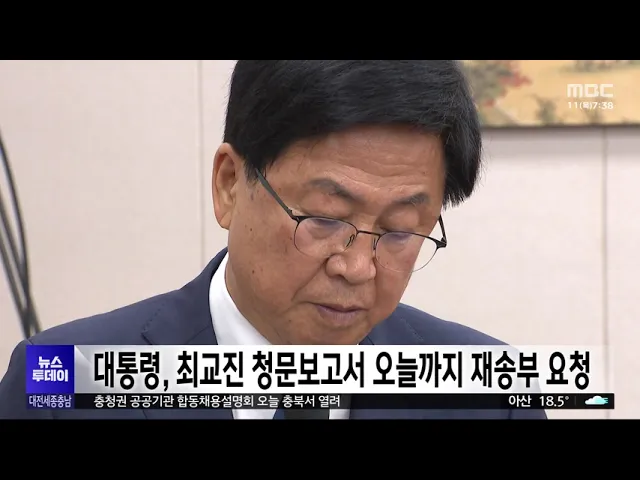 뉴스투데이 뉴스데스크뉴스투데이뉴스데스크 VOD(전체 다시보기)뉴스투데이 VOD(전체 다시보기)유튜브뉴스페이스북 뉴스카카오톡 뉴스인스타그램 뉴스 prev 2025.9.11 - 목요일 next 3년간 주택분양보증 감소..박용갑 "윤 정부 주택공급 실패" 대전 중구의 더불어민주당 박용갑 의원이, 윤석열 정부의 주택 공급 실패를 주장했습니다. 박 의원실이 주택도시보증공사 보증 상품별 실적을 분석한 결과, 윤 정부가 주택 270만 가구 공급을 약속했지만 ... 문은선 충남 학교 운동장 23곳서 유해 물질 기준치 초과 충남 지역 학교 23곳의 운동장 우레탄 트랙에서, 유해물질이 안전 기준치를 초과해 검출됐습니다. 특히 이들 학교 가운데 천안 성거초와 당진 당진초 등 2곳은 안전 기준치의 46배에 달하는 프탈레이트가 ... 김지훈 김성환 "기후에너지부 다음 달 출범..신규 댐은 절반만" 기존 환경부에 산업통상자원부의 에너지 정책 기능을 옮겨 확대 개편되는 기후에너지환경부가, 이르면 다음 달 1일 출범할 전망입니다. 김성환 환경부 장관은 최근 기자간담회에서 "오는 25일 전후로 국회... 김윤미 "죽지 않고 일하고 싶다"..고 김충현 노동자 기억식/투데이 ◀ 앵 커 ▶ 고 김충현 노동자가 혼자 일하다 숨진 지 백일을 맞아, 태안화력발전소 앞에서 김충현 씨를 기리는 기억식이 열렸습니다. 6년 전 숨진 고 김용균 씨 조형물 옆에 추모비와 나무가 나란히 세워졌... 김광연 서천군, '수해 복구' 특별교부세 35억 4천만 원 확보 지난 7월 집중호우로 특별재난지역으로 선포된 서천군이, 행정안전부로부터 특별교부세 35억 4천만 원을 확보했습니다. 군은 앞서 재해복구를 위해 국비와 도비 177억 원을 확보한 데 이어 특교세 추가 확... 윤소영 대전 유성구, 내년까지 324곳에 신재생에너지 설비 설치 대전 유성구가 내년까지, 주택 등 324곳에, 태양광과 태양열, 지열 등 신재생에너지 설비 설치를 지원합니다. 이는 산업통상자원부의 신재생에너지 융복합지원사업 공모에 선정돼 국비 13억 원을 확보한 ... 윤소영 대통령, 최교진 청문보고서 오늘까지 재송부 요청 대통령이 최교진 교육부 장관 후보자의 인사청문경과보고서를 오늘(11)까지 보내달라고 국회에 다시 요청해, 사실상 최 후보자에 대한 임명 수순을 밟겠다는 뜻으로 풀이됩니다. 인사청문회법에 따르면 대... 김지훈 충남교육감 "독립기념관장 교과서만 봤어도 역사 왜곡 없었을 것" 김지철 충남교육감이, '광복은 연합국의 승리로 얻은 선물' 발언으로 논란을 일으킨 김형석 독립기념관장에 대해, "역사 교과서만 제대로 읽었어도 역사 왜곡은 없었을 것"이라고 꼬집었습니다. 김 교육감... 김윤미 황석영 "이미 국민이 퇴출"…기도회 업추비도 논란/투데이 ◀ 앵 커 ▶ 광복절 기념사 논란으로 촉발된 김형석 독립기념관장 퇴진 요구가, 한 달 가까이 이어지고 있습니다. 문학계 원로 황석영 작가까지 나서, "이미 국민이 김 관장을 퇴출시켰다"며, "왜곡된 역사... 이교선 대전시, 불법 축산물 유통 6곳 적발 대전시가 여름철 식중독 예방을 위해, 지난 두 달간 축산물 취급 업체를 대상으로 기획 수사를 벌여, 위반 업체 6곳을 적발했습니다. 적발된 업체들은 신고도 하지 않고 야영장에서 9억 원 상당의 고기를 ... 문은선 관세청, 추석 성수품 수입 제품 원산지표시 단속 관세청은 추석 명절을 앞두고 다음 달 4일까지 한 달 동안, 백화점과 대형마트, 전통시장 등을 대상으로, 제수용과 선물용 수입 물품의 원산지표시 위반 행위를 집중 단속합니다. 이번 단속에서는 저가의 ... 문은선 대전시의회, '반려견 순찰대' 지원 추진 대전시의회가, '반려견 순찰대' 지원을 추진합니다. 시의회 정명국 의원이 대표 발의한 조례안에는 공개 모집을 통해 선발한 반려견 순찰대는 교육과 훈련을 이수한 뒤 범죄와 안전 예방 순찰 등을 하는 ... 문은선 보령 원산도 대규모 리조트 2년 넘게 지연 보령 원산도 대규모 리조트 건립 사업이, 기공식을 한 지 2년이 지나도록 표류하고 있습니다. 대명소노그룹은 지난 2023년 9월 보령 원산도 오봉해수욕장 일원에 천5백여 객실을 갖춘 대형 리조트를 건립... 김지훈 '해외직구' 어린이 제품서 발암물질 기준치 5천 배 초과 해외직구 플랫폼에서 판매 중인 일부 어린이 제품에서, 1급 발암물질 등 유해 성분이 다량 검출됐습니다. 관세청이 해외직구 어린이 제품 110종의 성분을 분석한 결과 34종에서 국내 안전 기준치를 초과했... 김지훈 충청권 공공기관 합동채용설명회 오늘 충북서 열려 충청권 4개 시도가 참여한 충청광역연합이 국토교통부와 함께, 오늘 충북대에서 충청권 공공기관 지역인재 합동 채용설명회를 엽니다. 이번 채용설명회에는 충청권 50개 공공기관이 상담부스를 마련해 채... 문은선 "한국 취업 100% 보장"...외국인 노동자 모시기 사활/투데이 ◀ 앵 커 ▶고령화와 인구 감소, 힘겨운 일을 기피하는 현상 등으로 외국인 노동자는 우리 일터의 빈자리를 메워주는 든든한 버팀목이 되고 있는데요.사정이 이렇다보니 농촌은 물론 도시 지역 모두 다양한 ... 윤소영 '국가자격시험 정보 유출' 천안 특성화고 교사 3명 검찰 송치 천안동남경찰서가, 천안의 한 특성