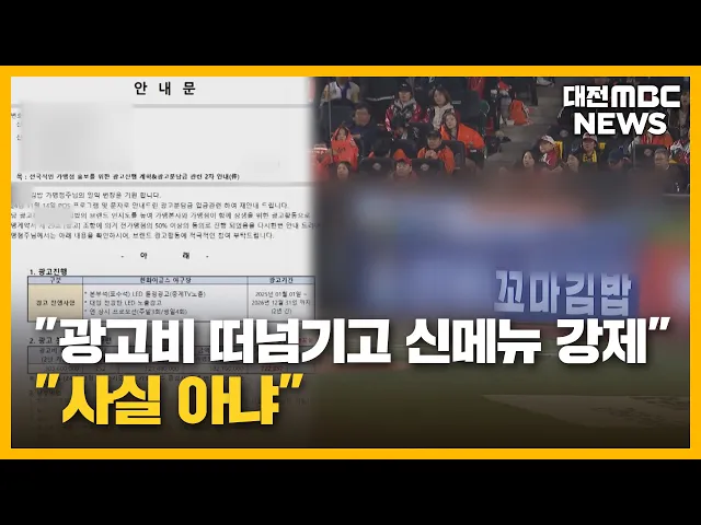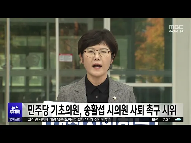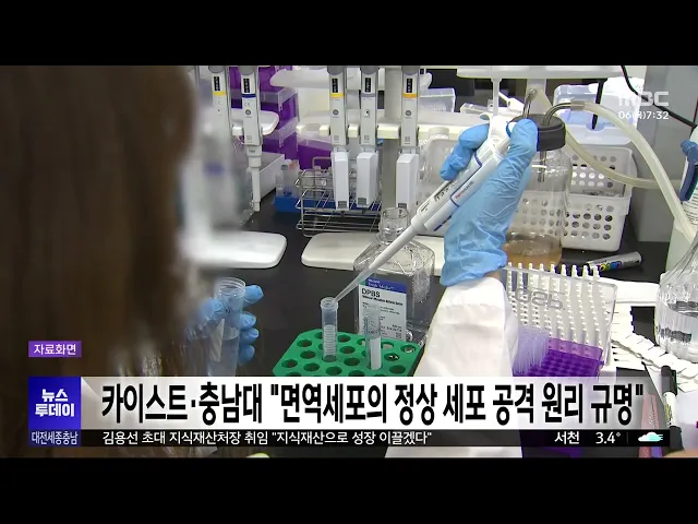 뉴스투데이 뉴스데스크뉴스투데이뉴스데스크 VOD(전체 다시보기)뉴스투데이 VOD(전체 다시보기)유튜브뉴스페이스북 뉴스카카오톡 뉴스인스타그램 뉴스 prev 2025.11.6 - 목요일 next [리포트]충청권 찾은 장동혁 "현안 지원".."세종보 재가동해야" ◀ 앵 커 ▶국민의힘 장동혁 대표 등 당 지도부가 충청권을 찾아 예산정책협의회를 열고 지역 현안에 대한 지원을 약속했습니다.내년 지방선거를 앞두고 중원 표심 공략에 나선 것이라는해석도 나오는데요. ... 박선진 보철거 시민행동 "고발 행위는 지방선거 의식한 지지세력 결집" 세종보 철거를 주장하며 천막 농성 중인 환경단체를 세종시가 경찰에 고발하자환경단체가 성명을 내고 최민호 세종시장을 규탄했습니다.보철거 시민행동은 성명에서 "세종시의 고발은 지방선거를 의식한 ... 김광연 행복청, 집현동 복합커뮤니티센터 완공 세종시 4 생활권인반곡동과 집현동을 지원하는복합 커뮤니티센터가 공사를 마치고, 이달 중 세종시와 세종경찰청 등에 이관돼 내년부터 정식 운영에 들어갑니다.집현동 복합커뮤니티센터는 지하 1층, 지상... 이승섭 장애인차별철폐연대, 세종시에 장애인 권리 보장 예산 반영 촉구 전국 장애인 차별철폐연대가 세종시청에서 기자회견을 열고 장애인 권리 보장을 위한 예산 편성을세종시에 촉구했습니다.이들은 "세종시가 장애인을 위한 특별교통수단과 공공 일자리, 장애인자립생활센터... 이승섭 대전시의회, 대전교통공사 사장 후보자 인사청문회 대전시의회가 이광축 대전교통공사 사장 후보자에 대한 인사청문회를 열고 전문성과 도덕성 등을 검증했습니다.시의회는 교통공사가 도시철도와 타슈 등4개 조직이 모여있는 조직인 만큼이 후보자의 전문... 박선진 [리포트]"광고비 떠넘기고 신메뉴 판매 강제"⋯"사실과 달라" ◀ 앵 커 ▶전국 규모의 김밥 프랜차이즈 가맹점주들이본사의 횡포가 도를 넘고 있다며 공정위에 신고했다는 소식 전해드렸는데요.이번에는 광고비를 가맹점에 떠넘기고신메뉴 판매를 강제했다는 추가 갑질 ... 김광연 충남보건연 "해외 직구 화장품서 중금속 초과 검출" 충남도 보건환경연구원이 최근 해외 직구 화장품 등 54건의 안전성을 검사한 결과, 아이섀도 1건에서 국내 기준치를 초과한 니켈이 검출됐습니다.니켈은 알레르기 접촉성 피부염을 유발할 수 있고, 장기간... 김지훈 카이스트·충남대 "면역세포가 정상 세포 공격하는 원리 규명" 카이스트와 충남대 공동 연구팀이 면역세포가 바이러스가 아닌 체내 정상 세포를 공격하는 원인을 규명했습니다.연구팀은 단백질인 사이토카인이 원인이라는 선행 연구에서 더 나아가 사이토카인의 일종인... 고병권 국세청, '연말정산 미리보기' 서비스 시작 국세청이 연말정산 예상 세액을 확인할 수 있는 미리보기 서비스를 홈택스에 개통하고, 주요 항목별 맞춤형 안내 서비스도 내년 1월 말까지 제공합니다.연말정산 미리보기에서는 올해 1월부터 9월까지의 ... 김윤미 보령·홍성·태안 어촌에 2029년까지 300억 원 투입 충남도는 해수부 주관 어천 신활력 사업에보령 밤섬 권역과 홍성 속동 권역,태안 청산 권역 등 3곳이 선정됐다고 밝혔습니다.이들 권역에는 오는 2029년까지 각 100억 원이 투입돼 어항과 배후 마을 생활 ... 김지훈 충남도, 내년 예산 12조 4천6백억 원 편성⋯5.9% 증액 충남도는 올해보다 6천 9백억 원, 5.9% 늘어난 12조 4천 628억 원 규모의 내년 예산안 편성해 도의회에 제출했습니다.주요 예산 내용을 보면, 자연재해 위험 개선에 천억 원, 충남국제컨벤션센터 869억 원... 김지훈 조승래, '온라인 플랫폼 암표 근절' 법안 대표 발의 대전MBC가 프로야구 암표 문제를 집중 보도한 가운데, 민주당 대전 유성갑 조승래 의원이 온라인 티켓 재판매 플랫폼의 부정 판매를 금지하고암표 거래 처벌을 강화하는 내용의 법률 개정안을 대표 발의했... 김지훈 [리포트]'함께의 가치' 대동 하늘마을 벽화거리 재탄생 ◀ 앵 커 ▶과거 대전 대동 주민들과 함께 울고 웃은1년의 시간을 기록했던 다큐 뉴스,'하늘동네 이야기', 기억하시나요? 15년이 넘는 시간이 흐른 이곳은 여전히 '함께'의 가치를이어가고 있습니다. 박선진... 박선진 "동영상 보면 수익금" 전기통신금융사기 인출책 실형 유튜브 동영상을 시청하면 수익금을 준다고 속여 투자금 명목의 수백만 원을 가로챈 범죄 조직의 30대 인출책에게 징역 1년의 실형이 선고됐습니다.해당 인출책은 지난해 12월 피해자가 이체한 433만 원을... 김광연 충남서 집단학교폭력 발생⋯교육청 진상 조사 지난 1일 충남의 한 야산에서 고교생 7명이 동급생 한 명을 집단으로 폭행해골정상을 입혀, 교육청이 진상 조사에 착수했습니다.해당 지역 교육지원청은 가해 학생들에게 일단 출석정지 조치를 내리고, 사... 김지훈 충남도, 생태관광지 10선 온라인 스탬프 투어 진행 충남도가 올해와 내년 충남 방문의 해를 맞아'생태 관광지 10선 온라인 스탬프 투어'를 운영합니다.스탬프 투어 대상지는 예산 황새공원과 서산 천수만, 태안 신두리 사구, 공주 계룡산 등 10곳입니다.충... 김지훈 감사원, 독립기념관에 직원 파견..운영 실태 점검 김형석 
