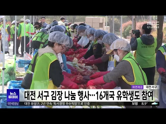 뉴스투데이 뉴스데스크뉴스투데이뉴스데스크 VOD(전체 다시보기)뉴스투데이 VOD(전체 다시보기)유튜브뉴스페이스북 뉴스카카오톡 뉴스인스타그램 뉴스 prev 2025.11.7 - 금요일 next 단독[리포트]'갑질 의혹' 김밥 프랜차이즈⋯잇단 분쟁에도 '0건' 거짓 홍보 ◀ 앵 커 ▶대형 김밥 프랜차이즈 횡포 관련 속보이어갑니다.해당 프랜차이즈에서 계약을 거절당한1호 가맹점주가, 지난 6월 본사를 상대로 소송을 내고,다른 점주들도 재료비 폭리 등을 이유로공정위에 분... 김성국 대전 갑천생태호수공원 개장 한 달 만에 22만 명 찾아 대전 갑천생태호수공원이 개장 한 달여 만에 누적 방문객 22만 명을 넘어섰습니다.대전시는 지난 9월 말 생태호수공원 임시 개장한 뒤 평일에는 평균 7천 명, 주말과 휴일에는 최대 2만 명이 찾고 있다며... 김지훈 세종참여자치시민연대, "세종중앙공원 파크골프장 조성 철회해야" 세종 참여자치 시민연대가 세종 중앙공원에서 추진되는36홀 규모의 파크골프장 조성 사업을철회해야 한다고 주장했습니다.연대 측은 "세종시의 생태와 휴식을 상징하는공간을 특정 연령층과 동호인을 위한... 이승섭 당진 주요 철강기업 상반기 660억 원 적자⋯가동률 하락 철강업계가 내수 부진과 50% 대미 관세 등으로 위기에 직면한 가운데 당진의 주요 철강기업의 수익 구조가 붕괴 위기에 진입한 것으로 나타났습니다.당진상공회의소 등에 따르면 올해 상반기 당진의 주요 ... 김지훈 보령해경, 대조기 맞아 방파제 등 출입통제 집중 단속 바닷물의 조수 차이가 커지는대조기를 맞아, 보령해양경찰서가 오는 23일까지 방파제와 갯바위 등 출입통제장소에 대한 집중 안전관리와 단속에 나섭니다.출입이 통제되는 장소는 보령 죽도 방파제와 서천... 김윤미 [리포트]"시민이 직접 감시!" '업무추진비 맛집지도' 나왔다 ◀ 앵 커 ▶한때 '쌈짓돈'처럼 여겨졌던 공무원들의 업무추진비, 이제는 이 예산을 좀 더 투명하게 사용하도록 하는 지침들이 하나둘 생겨나고 있는데요.그러나 해마다 주말 사용이나 사적 이용 의심사례 등... 박선진 천안의료원 채용 부적정 등 무더기 적발⋯'기관 경고' 충남도의회가, 채용 절차 위반과 부당한 수의계약 등으로 논란이 된 천안의료원에 대한 기관경고를 내리고원장과 직원들의 징계를 요구하기로 했습니다.도의회 조사 결과, 천안의료원은 임시직 이송 요원... 김지훈 "김치 원산지 둔갑 막는다" 관세청 3주간 특별 단속 김장철을 맞아 저가의 수입 김치가 국산으로 둔갑될 가능성이 높아짐에 따라 관세청이 다음 달 5일까지 3주간 원산지표시 특별 단속에 나섭니다.단속 대상은 저가나 저품질 수입 김치 등을국내산으로 속여... 김윤미 검찰, 운전 중 택시 기사 폭행한 카이스트 교수 항소 기각 요청 택시 기사를 폭행한 혐의 등으로 기소된카이스트 교수에 대해 대전지법에서 열린항소심에서 검찰이 1심을 유지해달라고 항소 기각을 요청했습니다.피고는 지난 2023년 서울에서 대전으로 가는 택시 안에서... 김광연 표준연 창립 50주년 기념식, "글로벌 표준기관 되겠다" 한국표준과학연구원이 어제 대전 본원 대강당에서 창립 50주년 기념식을 열었습니다.이호성 표준연 원장은 기념사에서 "앞으로 50년은 대한민국을 넘어 세상의 기준을 만드는 글로벌 표준기관으로 자리매... 고병권 단독[리포트]"수시 입시 한창인데.."⋯뒤늦게 확인된 성적 오류 ◀ 앵 커 ▶수능을 일주일 앞둔 지금, 수시 입시가 한창인데요.수시 발표를 앞두고 고1 때의 내신 점수가 잘못 입력된 사실이 이제 확인된다면 얼마나 황당할까요?대전예술고에서 벌어진 일입니다.학교 측은... 이교선 대전서 1만 6천여 명 수능 응시⋯35개 학교서 치러져 대전시교육청은 오는 13일 열리는 2026학년도 대학수학능력시험에 지난해보다 6백여 명 증가한 만 6천여 명이 응시한다고 밝혔습니다.올해 수능시험은 대전 지역 35개 학교, 590개 시험실에서 치러지며, ... 김지훈 '제63회 소방의 날' 기념식..순직 소방관 추모 시설 조성 소방청이 오는 9일 제 63회 소방의 날을 앞두고, 세종시 세종 문화예술회관에서 윤호중 행정안전부 장관과 순직 소방공무원 유가족 등이참석한 가운데 기념식을 열었습니다.이 자리에서 윤호중 장관은 "소... 이승섭 세종시, '2025 창업 한마당' 개최 세종시가 오늘까지 이틀 동안세종공동캠퍼스에서 '2025 창업 한마당'을 개최합니다.이번 행사는 행정중심 도시, 스마트시티 국가 시범도시와 같은 세종시의 특성을 살려 공공데이터를 기반으로 한 창업 모... 이승섭 [리포트]MZ세대 홀린 '꿈돌이'⋯'꿈돌이 도시' 이어가려면? ◀ 앵 커 ▶대전 엑스포의 마스코트 꿈돌이가30년 만에 재탄생해 대전의 상징으로다시 떠오르고 있는데요.지역 경제를 살릴 구원투수로 활약하고 있는데,문구류나 먹거리 등의 단순 제품을 넘어 관광객 유입... 박선진 카이스트, '휴대전화 사진으로 정밀 3차원 공간 복원' 기술 개발 카이스트 윤성의 교수팀이 휴대전화 사진 2~3장 만으로 고정밀 3D 공간을 복원할 수 있는 시뮬레이션 기술을 개발했습니다.이 기술은 사진을 통해 사물의 3차원 형태와 카메라의 시선 방향을 동시에 추정... 고병권 기