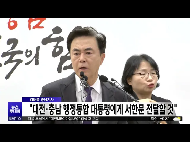 뉴스투데이 뉴스데스크뉴스투데이뉴스데스크 VOD(전체 다시보기)뉴스투데이 VOD(전체 다시보기)유튜브뉴스페이스북 뉴스카카오톡 뉴스인스타그램 뉴스 prev 2025.11.19 - 수요일 next [리포트]"충남에 국내 최대 돔구장"..활용 방안·재원 '의문' ◀ 앵 커 ▶여러분 안녕하십니까 뉴스투데이대전세종충남입니다.충남도가 KTX 천안아산역 인근에, 프로야구 경기와 K팝 공연 등이 가능한국내 최대 규모 돔구장 건립을추진하겠다고 나섰습니다.2031년까지 1... 최기웅 김태흠 "대전·충남 행정통합 대통령에게 서한문 전달할 것" 김태흠 충남지사는 대전·충남 행정 통합과 관련해, "우리의입장을 담은 서한문을 대통령에게전달할 것"이라고 밝혔습니다.김 지사는 도청에서 연 기자회견에서 "정치권을 압박하고 도민의 요구를 설명하기... 최기웅 '석유화학 부진' 서산시, 고용위기 선제대응지역 지정 석유화학 산업의 부진으로 고용 둔화가 지속되는 서산시가,경북 포항과 함께, 고용위기 선제대응지역으로 지정됐습니다.이번 지정으로 서산지역 재직자와 실업자, 자영업자는 국민내일배움카드의 지원 한... 김윤미 건양대병원, 사전연명의료의향서 등록기관 지정 건양대병원이 보건복지부로부터, 사전연명의료의향서 등록기관으로 지정됐습니다.사전연명의료의향서는 19살 이상 성인이 임종 과정에 있는 환자가 됐을 때를 대비해 연명의료 중단 등에 대한 의사를 밝힌... 김윤미 홍성군 고향사랑기부제 누적 모금액 10억 원 돌파 홍성군의 고향사랑기부제 누적 모금액이, 10억 원을 넘어섰습니다.홍성군은 전체 8천 36명 가운데 10만 원 이하 기부자가 7천여 명으로 대부분을 차지했고,100만 원 이상 고액 기부자도 48명으로 나타났다... 김윤미 [리포트]세종시 '행정구 신설' 주장 제기 ◀ 앵 커 ▶세종시가 심각한 재정난에 허덕이면서, 교부세 제도를 개선해야한다는 목소리에 이재명 대통령도공감한 바 있는데요.세종시가 교부세를 추가로 확보하고,지역의 균형 잡힌 발전을 위해세종 북부 ... 이승섭 최민호 세종시장 "교통 범칙금 지방세 전환해야" 최민호 세종시장이 간부회의에서,"무인 교통 단속으로 발생한교통 범칙금을, 지방세로 전환하는 방안을 고민해야 한다"고 주장했습니다.현행 도로교통법상 무인 교통 단속으로 생긴범칙금은 국고에 귀속되... 이승섭 세계적 방산·항공기업 에어버스 연구 공간 대전에 둥지 세계적인 방산·항공기업 '에어버스'의 핵심 연구 공간인테크 허브가, 싱가포르, 일본 등에 이어,전 세계 4번째로 대전 도룡동에 들어섰습니다.대전시는 에어버스와 업무협약을 맺고카이스트와 대덕특구 내... 박선진 행복청, 22일부터 국가상징구역 국민참여투표 실시 국회 세종의사당과 대통령 세종집무실 등이 들어설 국가상징구역의도시설계 공모 과정에, 국민참여투표가 실시됩니다.행정중심복합도시건설청은 국내 설계공모 최초로 국민이 직접 선택하는 국민참여투표... 이승섭 카이스트·서울대, 여름엔 더 시원, 겨울엔 더 따뜻 '열 조절기' 개발 카이스트와 서울대 공동 연구팀이,'포플러' 나무의 열 조절 방식을 본떠, 여름에는 더 시원하고겨울에는 더 따뜻한 '열 조절기'를 개발했습니다.이 장치는 포플러처럼 수분의 증발·응축에 따른 잠열 조절... 고병권 [투데이 초대석] 대전역세권 개발 계획 공개...'원도심 부활' 기대 ◀ 앵 커 ▶지역의 주요 이슈를 인물을 중심으로풀어가는 '투데이 초대석'입니다.이재명 대통령이 지방 우선, 지방 우대 원칙을 거듭 밝히고, 공공기관 지방 이전에도 박차를 가하겠다고 최근 밝혔죠.오늘은... 문은선 우송대 솔브릿지 국제경영대, 아시아 콘퍼런스 개최 우송대 솔브릿지 국제경영대학이, 국내에서는 처음으로 유럽경영대학협의회 아시아 콘퍼런스를 개최했습니다.인공지능과 국제화, 지속가능성을 주제로 열린 이번 회의에는 유럽과 아시아 18개국의 경영대... 박선진 '정치자금법 위반' 이동한에 항소심 벌금 3백만 원 구형 검찰이, 지난해 대전 중구청장 재선거 때 불법으로 자금을 건네받은혐의로 기소된 이동한 대전과학산업진흥원장에 대해, 항소심에서도 벌금 300만 원을 구형했습니다.당시 무소속으로 출마한 이 원장은 캠... 김성국 태안 천리포수목원 조성 기록, 국가유산 등록 '보류' 우리나라 최초의 사립수목원인 태안 천리포수목원 역사를 담은기록 자료를 국가유산으로 등록하려던절차가 보류됐습니다.국가유산청에 따르면, 문화유산위원회 산하 근현대문화유산분과는 지난 3월 등록을... 최기웅 보령에 2029년까지 2조 원 규모 AI 데이터센터 건립 충남도와 보령시, 웅천에이아이캠퍼스가 투자협약을 맺고, 오는 2029년까지 2조 원을 투입해,보령 웅천산업단지에 인공지능 데이터센터를 건립하기로 했습니다.10만 3천여 ㎡ 부지에 지어지는 보령 AI 데... 최기웅 [리포트]"온실가스 10배 우려" 대전열병합발전 다시 추진? ◀ 앵 커 ▶4년 전 주민 반발로 멈췄던 대전 열병합발전 증설 논의가다시 추진되면서, 논란이 나오고 있습니다. 발전용량이 4배 늘면서 온실가스 배출량도 지금보다 10배 가량 늘어날 수 있기 때문인데, 환... 이혜현 '대전 불꽃축제' 앞두고 대전