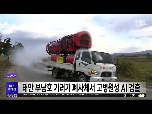 뉴스투데이 뉴스데스크뉴스투데이뉴스데스크 VOD(전체 다시보기)뉴스투데이 VOD(전체 다시보기)유튜브뉴스페이스북 뉴스카카오톡 뉴스인스타그램 뉴스 prev 2025.11.26 - 수요일 next [리포트]충남 첫 '아프리카돼지열병'⋯방역 비상 ◀ 앵 커 ▶치사율이 100%에 달하는 아프리카돼지열병이, 충남에서 처음으로 발생했습니다.특히 강원·경기에서 야생멧돼지 등을 통해 발생하던 병이 축산 메카 충남까지 확산하면서, 전국으로 퍼지는 것 아... 최기웅 태안 부남호 기러기 폐사체서 고병원성 AI 검출 철새에 의한 AI 확산 우려가 커지는 가운데, 태안군 남면 부남호 야생 기러기 폐사체에서, 고병원성조류인플루엔자 바이러스가 검출됐습니다.지난 19일 폐사한 이 개체 시료를 분석한 국립야생동물질병관... 최기웅 지역 11월 소비자심리지수 113.5⋯지난달보다 4p 상승 한국은행 대전세종충남본부가 발표한이달 지역 소비자심리지수는113.5로, 지난달보다 4p(포인트) 상승했습니다.이는 전국 평균보다 1.1p 높은 것으로, 두 달 연속 소폭 하락하던 해당 지수가상승 전환하며... 문은선 대전 자영업자 늘고 폐업률도 상승세 대전지역 자영업자가 늘고 있는추세지만, 불황이 장기화하면서,도소매업을 중심으로 폐업률이 동반 상승한 것으로 조사됐습니다.한국은행 대전세종충남본부가 발표한자영업 현황 보고서를 보면 올 2분기 ... 문은선 [리포트]투데이 초대석-박정현 부여군수 ◀ 앵 커 ▶지역의 주요 이슈를 인물을 중심으로풀어가는 투데이 초대석 시간입니다.다음 달 출범하는 150조 규모의국민성장펀드는 재원의 40% 이상을 지방에 투입하는 게 목표입니다.이 지역 배정액을 활용... 문은선 충청권 의원, U대회 성공개최 법안 공동 발의 박수현 의원 등 충청권 국회의원29명이, 2027 충청 유니버시아드대회성공 개최를 위한 법안을 공동 발의했습니다.개정안은 국제경기대회 조직위원회가대회 운영에 필요한 기부금품을 직접 접수,사용할 수 ... 문은선 "세종중앙공원 파크골프장 최민호 시장 지시" 주장 제기 세종중앙공원에 추진돼 논란을 빚는 36홀 규모의 파크골프장 조성 사업이, 최민호 세종시장의 지시였다는 주장이제기됐습니다.이순열 세종시의원은 시의회 본회의 5분 발언에서 "세종시설관리공단이 지난 ... 이승섭 국민의힘, 오늘 천안에서 '민생회복 법치수호 국민대회' 개최 국민의힘이 오늘, 천안버스터미널 조각광장에서,'민생회복 법치수호 국민대회'를 개최합니다.장동혁 대표 등 국민의힘 지도부는이번 행사에서 이재명 정부의 국정 운영을비판하고, 대장동 사건 항소 포기... 이승섭 정의당 "신계룡-북천안 송전선로에 대전 포함⋯철회해야" 경기 용인 '반도체 메가 클러스터'구축을 위해 추진 중인신계룡-북천안 송전선로 건설사업대상 지역에 대전 일부 지역이 포함된 것으로 전해져, 지역 정치권이반발하고 있습니다.정의당 대전시당은 용산 ... 문은선 [리포트] 국정자원 국가전산망 화재도 '인재'‥원장 등 19명 입건 ◀ 앵 커 ▶지난 9월, 국가 전산망 마비 사태를 부른 대전 국가정보자원관리원화재가, 기본적인 안전 수칙도지키지 않은 '인재'였다는 수사 결과가 나왔습니다.그 배경에는, '불법 하도급'이 있었는데요.경... 이혜현 대전시, 반려동물 산업 체계적 육성 지원 대전시가 대학, 연구기관, 기업 등과 업무협약을 맺고,반려동물 산업의 체계적인 육성과 미래 인재 양성에 협력합니다.이들 기관은 반려동물 관련 학과 학생들의현장 직무체험, 진로탐색 프로그램 공동 운... 문은선 대전시의회, 베트남 빈롱성 대표단 접견⋯교류의향서 서명 대전시의회가 시의회에서,보반민 베트남 호찌민시 인민의회의장 등, 빈롱성 대표단을 접견했습니다.이번 방문은 지난 10월 시의회의 베트남 호찌민시 방문에 따른 것으로 양측은 기존 58개 성에서 28개 성... 문은선 대전시, 여성친화기업 12곳 선정⋯환경개선 등 지원 대전시는 고용과 직장 문화 개선, 일과 생활 균형 지원 부문에서노력해 온 여성친화기업 12곳에,현판을 전달했습니다.이들 기업은 채용·인사·교육 분야에서성별·혼인·임신·출산 여부와 관계없이성평등 일... 문은선 공주시, 지역 상권 '온라인 단골' 기반 강화 공주시가 지역 상권 활성화를 위해,온라인 단골 기반을 강화합니다.시는 카카오와 협력해 지난 7월부터5개월간 100여 개의 점포가 참여한 가운데산성시장, 공산성골목형상점가 등에서카카오톡 채널 친구 2... 문은선 단독[리포트]발주금 중복 오류⋯"비밀로 해달라?" ◀ 앵 커 ▶김밥 프랜차이즈의 재료비 폭리 등 각종 갑질 의혹을 대전MBC가 연속 보도한 이후, 점주들의 추가 폭로가 이어지고 있습니다.이번에는 POS기로 본사에 재료를발주할 때, 금액이 중복으로 부과되... 김성국 '위험천만' 대전 백운초 통학로 개선⋯전신주 지중화·보도 확장 대전시가 서구 괴정동 백운초등학교통학로 안전 확보를 위해, 시 재정6억 원을 긴급 투입해, 겨울 방학기간 전신주를 지중화하고,보도를 늘리는 공사를 진행하기로 했습니다.보도 폭이 1미터 안팎인 해당 ... 문은선 4차 발사 앞둔 누리호, 발사대 기립 작업 완료 전남 고흥 나로 우주센터에서 4차 발사를 앞