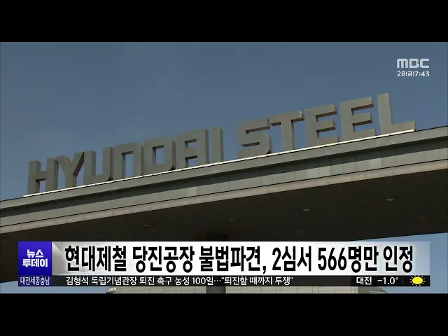 뉴스투데이 뉴스데스크뉴스투데이뉴스데스크 VOD(전체 다시보기)뉴스투데이 VOD(전체 다시보기)유튜브뉴스페이스북 뉴스카카오톡 뉴스인스타그램 뉴스 prev 2025.11.28 - 금요일 next [리포트]농성 100일 "퇴진할 때까지 투쟁" ◀ 앵 커 ▶왜곡된 역사관과 독립기념관의 사유화 의혹 등, 갖가지 논란을 일으킨김형석 독립기념관장.김형석 관장의 퇴진을 촉구하며백 일째 농성 중인 독립유공자 후손과 시민사회단체가,'끝장 투쟁'을 예... 이승섭 부여군수, '내란 전담 재판부 설치' 촉구 1인 시위 지난 3월 전국 지자체장 가운데처음으로 윤석열 전 대통령 파면을 촉구했던 박정현 부여군수가,내란 전담 재판부 설치를 촉구하며1인 시위에 들어갔습니다.박 군수는 "내란 발발 1년을 코앞에 두고 있지만... 김지훈 [리포트]뉴스참⑧-1 세종시 발전, '수도권 과밀 해소' 효과 얼마나? ◀ 앵 커 ▶각종 지역 의제에 대한 참된 사실이 무엇인지 찾는 팩트체크 기획 '뉴스참' 시간입니다.세종시는, 13년 전 수도권 과밀을 해소하고 지역 균형 발전을 선도한다는 목적을 안고 출범했는데요.인구 ... 김광연 '신계룡∼북천안 송전선로' 포함 대전·세종 주민 반발 확산 경기 용인 '반도체 메가 클러스터'구축을 위해 추진 중인 신계룡∼북천안 송전선로 구간에, 대전에 이어 세종시 일부 지역이포함되면서 주민 반발이 확산하고 있습니다.세종시 금남면과 장군면 등에 거주하... 김지훈 단독[리포트] CCTV에 찍힌 처참한 현장..."잠 깨운다고 폭행" ◀ 앵 커 ▶만취한 승객이 대리기사를차량에 매달고 달려 숨지게 한 사건과관련해 당시 상황을 기록한 CCTV가 공개됐습니다.대리운전기사를 죽음에 이르게 한 운전자는 단지 차가 과속방지턱을 넘다 덜컹거... 이혜현 사고 후 음주측정 거부로 실형⋯최광희 도의원 "선처 호소" 음주운전 사고를 낸 뒤 경찰의 음주 측정을 거부한 혐의로 1심에서징역 1년을 선고받아 법정구속된최광희 충남도의원이, 항소심 재판에서잘못을 인정하고 선처를 호소했습니다.최 의원은 어제 열린 항소심... 김광연 송활섭·박종선 대전시의원 국외 출장 부결 무소속 송활섭, 박종선 대전시의원이 임기를 7개월 남짓남기고 계획한 해외 출장이,심의 단계에서 부결됐습니다.대전시의회 공무국외출장심의위원회는체육발전연구회 소속인 두 의원이 다음 달 17일부터 3... 이승섭 당진시의회, 국민의힘 소속 서영훈 의장 불신임안 가결 당진시의회가, 국민의힘 소속 서영훈 의장에 대한 불신임안을 가결했습니다.당진시의회는 시의원 5명이 공동 발의한 서 의장에 대한 불신임안을 찬성 8표, 반대 5표로 가결했으며 불신임안 가결은 당진시... 최기웅 [리포트]'갑질 의혹' 김밥 프랜차이즈 "진짜 '상생' 하겠다" ◀ 앵 커 ▶김밥 프랜차이즈의 갑질·횡포의혹을 다룬 대전MBC의 연속 보도와 관련해, 본사 대표가 처음으로 취재진과 만나 입장을 밝혔습니다.재료비 폭리 등 논란에 대해서는 오해가 있다면서도, 점주들과... 김성국 현대제철 당진공장 불법파견, 2심서 566명만 인정 현대제철 당진제철소 하청노동자들을 사실상 정규직 신분으로인정한 1심 판결이, 2심에서 일부 뒤집혔습니다.금속노조 충남지부에 따르면 서울고법에서 열린 현대제철 당진공장 사내 협력업체 소속 노동자... 김지훈 '취미로 가장' 가방·지갑 조립 키트 유통한 일당 기소 지식재산처는, 소비자가 직접 위조 가방과 지갑을 제작할 수 있도록 위조상품 조립 키트를 제작해유통한 일당을, 상표법 위반 혐의로불구속 기소했습니다.이들은 단속을 피하기 위해 완제품이 아닌 조립 ... 김광연 충남도, 천안 일반산단 AI 전환 실증산단으로 조성 최근 인공지능 대전환을 선언한충남도가, 천안 일반산업단지를AI 전환 실증산단으로 조성하기로 했습니다.AI 전환 실증산단 조성 사업은 천안 제2·3·4일반산업단지에 국비 140억 원 등 총 228억 원을 투입... 최기웅 충남도, 축산물 취급업소 집중 단속 14건 적발 충남도가 도내 축산물 취급 업소를단속해, 축산물위생관리법 위반 행위 14건을 적발했습니다.도 민생사법경찰팀은 지난달 13일부터 지난 7일까지 도내 대형마트와 정육점 등 430여 곳을 점검한 결과, 영업... 최기웅