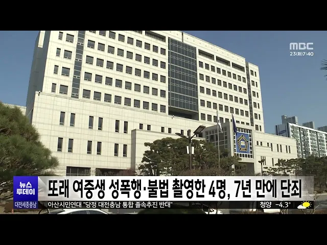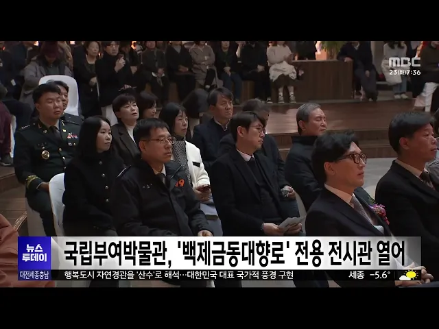 뉴스투데이 뉴스데스크뉴스투데이뉴스데스크 VOD(전체 다시보기)뉴스투데이 VOD(전체 다시보기)유튜브뉴스페이스북 뉴스카카오톡 뉴스인스타그램 뉴스 prev 2025.12.23 - 화요일 next [리포트]"모두가 만드는 미래"⋯국가상징구역 '청사진' ◀ 앵 커 ▶행정수도 세종의 심장부가 될 국가상징구역의 밑그림이 완성됐습니다.시민 공간을 중심에 두고, 대통령 집무실과 국회 세종의사당을 하나의축으로 잇는, '모두가 만드는 미래'가 청사진인데요.김... 이교선 세종시 행정수도 완성 추진⋯대법원·5개 부처 이전 대전·충남 행정통합이 속도를 내는 가운데, 정부가 '세종시행정수도' 위상 제고도동시에 추진합니다.더불어민주당 박정현 대전시당위원장은기자간담회에서 "이재명 대통령이충북은 추후 논의해 대전충남 ... 문은선 [리포트]내년 3월 특별법 통과⋯"특례 최대치 담는다" ◀ 앵 커 ▶대전·충남 행정통합을 위한법안 마련 등 일정이 구체화하고 있습니다.통합시는 인구 360만 명으로, 경기, 서울에 이어 전국 세 번째규모의 대도시 탄생이 초읽기에 들어간 건데요.특별법에는, 대... 문은선 대전시장 "대전·충남 행정통합, 중앙 권한 대폭 넘겨야" 이장우 대전시장이, "내년 대전·충남 행정통합 출범을 전제로자치권을 넓히고, 중앙 권한을 최대한넘겨받을 수 있도록 전략을 짜야한다"고 강조했습니다.이 시장은 주간업무회의에서 이같이 말하고"대전·... 김지훈 대전 트램 12공구 유천동∼문창동 구간 착공 대전시는 도시철도 2호선 트램12공구, 중구 유천동에서 문창동까지총연장 4.7km 구간에, 6개의 정거장을 설치하는 공사를 시작했습니다.해당 사업지는 서대전육교와 테미고개 2곳이 지하화되는 핵심 구간... 김지훈 대전 둔곡교차로 BRT 승강장 새해부터 운영 대전시가 신동·둔곡 국제과학비즈니스벨트 거점 지구에,둔곡교차로 간선급행버스, BRT 승강장을 다음 달 1일부터 운영합니다.대전역부터 정부세종청사를 지나 오송역까지 운행하고 있는 B1 노선이 정차하... 박선진 [리포트]예산 조기집행 67%…숫자와 체감 사이 ◀ 앵 커 ▶지역 현안과 사회 문제에 대한 참된 사실이 무엇인지 찾는 팩트체크 기획보도, 뉴스참 순서입니다.대전시의 올해 상반기 예산조기집행률이 67%로, 정부 목표를크게 웃돌았습니다.지역 경제 활성... 이교선 "오감으로 느낀다"⋯부여박물관 백제대향로 전용 전시관 열어 백제 문화와 금속 공예의 정수를보여주는 국보인 백제금동대향로만을위한 전용 전시관인 국립부여박물관 백제대향로관이, 오늘 문을 엽니다.언론에 미리 공개된 77평 규모의 전용 전시관은벽체와 모서리는... 김광연 충남 서해안서 해넘이·해맞이 행사 다채 충남 서해안 일원에서 해넘이·해맞이행사가 다채롭게 펼쳐집니다.먼저 서해안 3대 낙조 명소인 태안 꽃지해수욕장에서 오는 31일 오후부터 해넘이 행사가 진행되고, 이튿날인 새해 1월 1일 새벽 6시부터는... 김지훈 충남 최고 축제는 천안흥타령·논산딸기·서산해미읍성축제 충남도가 15개 시·군 축제 중 천안 흥타령과 논산딸기, 서산해미읍성축제를, 최고 등급의 '일품 축제'로 선정했습니다.또 시·군별 대표 축제로 보령 무창포신비의바닷길축제, 아산 성웅이순신축제, 계룡 ... 최기웅 [리포트]"만취해 택시 훔쳐 질주"⋯도 넘은 '주취 난동' ◀ 앵 커 ▶대전에서 술에 취해 택시기사와 실랑이를 벌이다, 택시를 훔쳐 달아난10대가, 경찰에 붙잡혔습니다.면허도 없이 운전을 하다 사고까지 낸10대는, 본인이 직접 경찰에 전화를 거는황당한 일까지 ... 이혜현 또래 여중생 성폭행·불법 촬영한 4명, 7년 만에 단죄 대전지법 제12형사부 김병만 부장판사가, 7년 전 또래 여중생을 성폭행하고, 이를 불법 촬영해 유포한혐의로 기소된 20대 남녀 3명에게,징역 4년에서 8년의 실형을,나머지 한 명에게는 징역 2년 6개월에 ... 김지훈 대전 중구, '전국 대도시중심구 구청장협의회' 개최 대전 중구가 전국 대도시중심구 구청장 협의회를 열고, 지역화폐'중구통' 발행과 운영 등, 각 지역에서추진 중인 주요 시책을 공유했습니다.협의회는 서울 중구와 부산 중구, 대구 중구 등각 대도시 중심... 박선진 류현진·오상욱-꿈씨패밀리 콜라보 상품 출시 대전 대표 스포츠 스타인 한화이글스 류현진 선수와 오상욱 선수를, 꿈씨패밀리 캐릭터로표현한 상품이 출시됩니다.대전시는 '우주올림픽 준비 대작전! 꿈씨패밀리 지구 특훈 모험!'이라는 주제로 류현진 ... 박선진