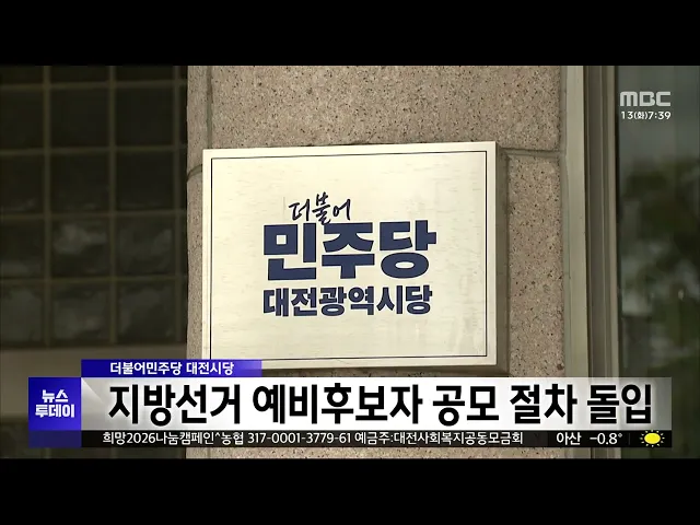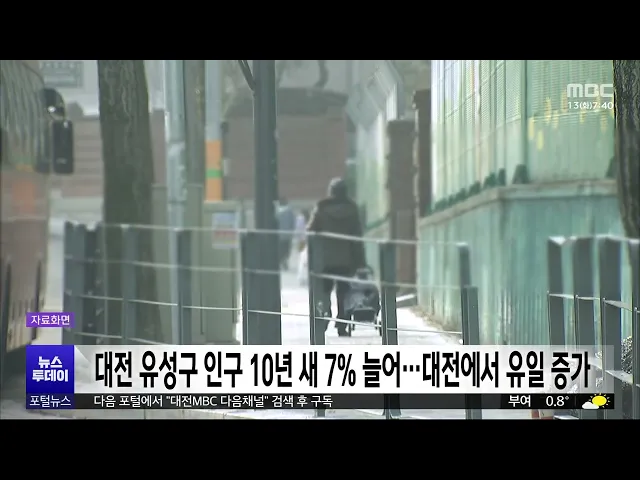 뉴스투데이 뉴스데스크뉴스투데이뉴스데스크 VOD(전체 다시보기)뉴스투데이 VOD(전체 다시보기)유튜브뉴스페이스북 뉴스카카오톡 뉴스인스타그램 뉴스정정 및 반론보도 모음 prev 2026.1.13 - 화요일 next 정청래 민주당 대표 "행정통합 특별법 설 연휴 전 처리" 정청래 더불어민주당 대표가 어제 열린 최고위원회의에서, 대전충남 행정통합 특별법을 다음 달 설 연휴전에 처리하겠다고 말했습니다.정청래 대표와 민주당 지도부는 내일, 서산에서 현장최고위원회의를 ... 이승섭 행복청, 대통령 세종집무실 건축 설계 공모 시작 행정중심복합도시건설청이, 대통령 세종집무실의 건축 설계공모에 들어갑니다.행복청은 품격 있는 디자인과 국정 효율성,최고 수준의 보안과 국민 소통과의 조화를설계 주안점으로 두고, 연면적 4만㎡ 규... 이승섭 [리포트]면허 반납 그 후⋯위험천만 실버카 ◀ 앵 커 ▶차가 없으면 외출조차 어려운 농촌의 현실을 앞서 전해드렸습니다.어르신들은 자동차를 대신할 교통수단으로, 이른바 실버카를많이 이용하는데요.실버카 역시, 또다른 사고 위험을안고 도로 위를... 이혜현 '청년농 전원주택' 부여 은산·공주 신풍 다음 달 입주 시작 부여 은산지구와 공주 신풍지구에서진행한 청년농 등을 위한 주거환경개선 사업인 충남형 농촌리브투게더사업이, 다음 달 입주를 시작합니다.부여과 공주에 각각 20가구와 19가구의분양 전환 공공임대주택... 문은선 태안해양치유센터 정식 개장..40% 할인 행사 충남 서해안 지역 해양 치유의거점이 될 태안해양치유센터가,어제부터 정식 운영에 들어갔습니다.태안해양치유센터는 태안군 남면달산포체육공원 일대에 지하 1층, 지상 2층규모로 조성돼 피트와 소금, 지... 이승섭 '예산 확보 난항' 태안 설날장사씨름대회 무산 위기 태안군이 3년 연속으로 개최하려던설날 장사씨름대회가,예산을 확보하지 못해무산될 위기에 놓였습니다.태안군의회는 지난 9일, 임시회를 열어추가경정예산안 등을 심의했지만,설날장사씨름대회 예산은 논... 이승섭 [기획/리포트]트램①공사 본격화⋯"올 하반기부터 정체 극심" ◀ 앵 커 ▶새해를 맞아 대전의 교통지도를 완전히 바꿀대전도시철도 2호선 트램에 대해 집중적으로 살펴봅니다.먼저 올해 본격 공사가 시작되면서 올 하반기부터 극심한 교통 불편이 예상되는데요.먼저 문... 문은선 [기획/리포트]국내 첫 수소 트램 도입⋯"대전의 과제는?" ◀ 앵 커 ▶대전도시철도 2호선 트램은국내에서 처음 도입되는 것이고, 그리고 수소를 연료를 사용하는 것도첫 시도입니다.처음인 만큼 풀어야 할 과제들도 적지 않은데요,이승섭 기자가 짚어봤습니다.◀ 리... 문은선 이춘희 전 세종시장, 세종시장 선거 출마 선언 이춘희 전 세종시장이 어제세종시청에서 기자회견을 열어,오는 6월 지방선거에서, 세종시장선거에 출마하겠다고 선언했습니다.이춘희 전 시장은 "행정수도 세종을국정의 중심지로 만들고, 문화와 스포츠기... 이승섭 더불어민주당 대전시당, 지방선거 예비후보자 공모 절차 돌입 더불어민주당 대전시당이 오는 6월 지방선거를 앞두고,예비후보자 공모 절차에 들어갔습니다.민주당은 오는 22일까지 기초단체장과 광역의원, 기초의원 선거에 출마할 모든 후보자를 대상으로 신청받아예... 이승섭 대전 유성구 인구 10년새 7% 증가⋯대전서 유일 증가 전국적인 인구 감소세에도,대전 유성구 인구는 최근 10년간대전에서 유일하게 늘어난 것으로나타났습니다.행정안전부 주민등록 인구통계 분석 결과,지난해 유성구 인구는 36만 7천여 명으로10년 전보다 7.... 문은선 [리포트]겨울 수난사고 '1천여 건'⋯얼음 깨짐 주의 ◀ 앵 커 ▶평년보다 온화한 날씨가 이어지면서,수난 사고가 잇따르고 있습니다.대전에서는 얼음이 깨지면서,초등학생이 물에 빠지는 사고가 나기도 했는데요.김성국 기자가, 겨울철 수난 사고의주의 사항을... 김성국 대전서 미성년자 유괴 5년 사이 25건⋯교육청 대책 강화 대전에서 학생 유괴가 해마다 발생하는 가운데, 대전교육청이 범죄 대응 방안을 마련해 본격 시행에 들어갑니다.대전에서는 지난해 2월, 초등학교 교사였던명재완이 1학년 학생을 교내에서 살해하는사건이... 이교선 대전시교육청, 소재 미확인 취학 대상 아동 4명 수사 의뢰 대전시교육청이, 올해 초등학교입학 대상 아동 가운데 소재가 파악되지 않은 4명의 수사를 경찰에 의뢰했습니다.대전교육청은 소재가 확인되지 않은 어린이 7명가운데 출국 기록이 있고 부모와 연락이 닿... 이승섭 대전 서구, 공동주택 지원 사업 신청 접수 대전 서구는 공동주택 주거 환경개선과 관리비 절감을 위해,공동주택 지원사업을 합니다.대상은 노후 공용시설 보수 지원, 스마트 공동주택 안전관리 시스템 구축,가로등 전기료 지원 등 9개 분야로,올해 ... 문은선
