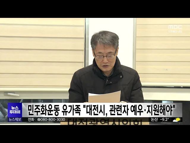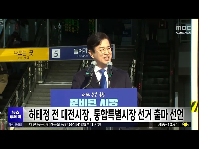 뉴스투데이 뉴스데스크뉴스투데이뉴스데스크 VOD(전체 다시보기)뉴스투데이 VOD(전체 다시보기)유튜브뉴스페이스북 뉴스카카오톡 뉴스인스타그램 뉴스정정 및 반론보도 모음 prev 2026.2.3 - 화요일 next [리포트]이제 '국회의 시간'⋯이장우·김태흠 "자치권 포기" ◀ 앵 커 ▶국민의힘에 이어 최근 더불어민주당까지충남대전 행정통합을 위한 특별법을발의하면서, 국회의 입법 절차가 본격화됐습니다.하지만 대전시장과 충남지사가,"민주당 법안은 사실상 자치권을 포기... 이승섭 행정통합 시도지사 연석회의 "행정통합 기본법 제정해야" 이장우 대전시장과 김태흠충남지사 등 광역자치단체 간의 행정통합을 추진 중인 시도지사들이긴급 회동해, "재정 분권과 자치권 등 공통의 원칙을 담은 행정통합 기본법을 제정해야 한다"고 요구했습니다.... 이승섭 전교조 대전지부 "행정통합 특별법에 교육 자치 훼손" 규탄 국회에 제출된 더불어민주당의 충남대전 행정통합 특별법과관련해, 지역 교육계의 반발도이어지고 있습니다.전교조 대전지부는 성명을 내고"민주당의 특별법이 교육 자치를 심각하게 침해하고 있다"고 규... 이승섭 최민호 "세종시 재정난 해소 위해 정부 지원해야" 최민호 세종시장이, 행정수도의기능에 비해 세종시에 대한 재정지원이 부족하다며, 정부의 지원을 촉구했습니다.최 시장은 기자회견을 열어 "출범 초기에 시 재정의 중장기 전망이 부족했고, 부동산 거래... 이승섭 [리포트]여야 내놓은 '통합 특별법'⋯"어떻게 다른가?" ◀ 앵 커 ▶충남대전 행정통합의 가장 중요한기대효과는 '민생 개선'인 만큼,이를 위한 충분한 '재정' 지원이가장 큰 쟁점입니다.하지만 핵심 쟁점을 둘러싼 여야 입장차가 워낙 커,난관이 예상되는데요.여... 김지혜 허태정 전 대전시장, 통합특별시장 선거 출마 선언 오늘부터 시도지사와 교육감부터 시작되는 6·3 지방선거 예비후보자등록을 앞두고, 예비주자들의 출마 선언이 잇따르고 있습니다.더불어민주당 허태정 전 대전시장은 대전역 서광장에서 기자회견을 열고 "... 이승섭 민주화운동 유가족 "대전시, 민주화운동 관련자 예우해야" 대전에 사는 민주화운동유가족들이 대전시의회에서기자회견을 열고, 대전시가 민주화운동관련자의 예우와 지원에소홀하다고 지적했습니다.이들은 지난 2022년 7월 대전시의회에서민주화운동 관련자에게 생... 이승섭 대전시 제4시립도서관, 2032년까지 대덕구에 조성 대전시가 공공도서관을 비롯한 문화 시설이 부족한 대덕구에, 오는 2032년까지 제4시립도서관을 건립합니다.대덕구 오정동에 들어설 제4시립도서관은연면적 만 2천㎡ 규모로,오는 2030년 착공할 예정이며... 이승섭 [리포트]아파트 이웃 살해 '양민준' 첫 재판⋯"심신 미약" ◀ 앵 커 ▶지난해 12월 천안의 한 아파트에서 공사 소음이 시끄럽다며 70대 윗집 이웃을 흉기로 살해한 양민준에대한 첫 재판이, 어제 열렸습니다.양 씨 측은 심신 미약을 주장하며 정신 감정을 요청하겠다... 김성국 '첨단기술 유출 혐의' 전 원자력안전기술원장 등 4명 기소 국내 기술로 개발된 원자력발전소관련 기밀 자료를 무단으로 유출한혐의로, 전직 한국원자력안전기술원원장과 직원 등 4명이, 불구속 상태로재판에 넘겨졌습니다.이들은 2023년 말부터 두 차례에 걸쳐심사... 이혜현 '연구 성과 계승' KAIST, 초세대협업연구실 2곳 추가 개소 한국과학기술원 카이스트가, 은퇴를 앞둔 교수가 축적해 온 연구 성과를 잇기 위해, 후배 교수와협업하는 '초세대 협업연구실' 2곳을 추가로 개소했습니다.지난 2018년 도입된 초세대협업연구실은이번 추... 이혜현 충남도 특사경, 학교 주변 식품·유해환경 합동단속 충남도 특별사법경찰이 개학을앞두고 오는 20일까지, 학교 주변의식품 취급 업소와 청소년 유해환경에대한 합동단속에 나섭니다.단속에서는 학교 주변 식품 조리·판매업소를 대상으로 부정 또는 불량 식품... 김윤미 [리포트]자전거 타고 내달려 '심폐소생술'⋯심정지 이웃 살린 이장 ◀ 앵 커 ▶심정지 환자를 살릴 수 있는골든타임은, '4분'이라고 합니다.최근 논산의 한 마을에서, 심정지로쓰러진 이웃의 골든타임을 지키려, 119보다 먼저 도착해 10분 가까이심폐소생술을 이어간 이장이 ... 이혜현 세종~청주 오가는 광역노선 B7 버스 운행 확대 지난 2024년 개통돼 세종과 청주를 오가는 대표 광역노선인B7 버스의 운행이 확대됩니다.세종시는 기존 다른 노선 일부 감차를 통해 오는 7일부터 버스 차량 4대를 증차하고,배차 간격을 20분 이내로 단축... 김윤미 충남도, 설 연휴 귀성·귀경길 정비 설 연휴 귀성·귀경길에 대비해,충남도가 오는 15일까지 도로 정비에 나섭니다.정비 대상은 도와 시군이 관리하는 6천431㎞로, 교량과 터널 진·출입부 등 결빙 우려 구간을 중점 관리 대상으로 지정해 집중... 최기웅
