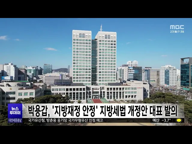 뉴스투데이 뉴스데스크뉴스투데이뉴스데스크 VOD(전체 다시보기)뉴스투데이 VOD(전체 다시보기)유튜브뉴스페이스북 뉴스카카오톡 뉴스인스타그램 뉴스정정 및 반론보도 모음 prev 2026.2.23 - 월요일 next [리포트] 다주택자 대출 옥죄기...지역 부동산 '혼란' ◀ 앵 커 ▶이재명 대통령이 다주택자를 겨냥해연일 압박 수위를 높이는 가운데, 금융당국이 임대 사업자의 대출연장 제한을 검토하고 있습니다.하지만 가뜩이나 부동산 경기가얼어붙은 우리 지역에서는,수... 김지혜 더불어민주당 충남대전통합특위 "특별법 본회의 통과시킬 것" 더불어민주당 충남대전통합 특별위원회는 국회에서 긴급 기자회견을 열고, "국민의힘의 방해에도 본회의에서 반드시특별법을 통과시키겠다"고 밝혔습니다.특위는 "대전충남 행정통합이 국민의힘의반대로 ... 박선진 안장헌 아산시장 예비후보, 충남·대전 통합 촉구 단식 농성 더불어민주당 소속 안장헌 아산시장 예비후보가, 그제 오후부터 서울 국회의사당 앞에서 충남·대전 행정통합의 조속한 완수를 촉구하며,노숙 단식 농성에 나섰습니다.안 예비후보는 "국회 특별법 통과를 ... 최기웅 김태흠 충남지사, 충남대전 행정통합 영상 유튜브 공개 김태흠 충남지사가 대전충남 행정통합 필요성과 정부의 재정·권한이양 중요성을 강조하는 영상을,개인 유튜브 채널에 공개했습니다.김 지사는 '행정통합의 진실을 알려드립니다'라는 제목의 영상을 통해 "... 박선진 [리포트]'70년 외길' 옹기 장인⋯국가무형유산 승격 눈앞 ◀ 앵 커 ▶70년 넘게 전통 옹기만을 고집스럽게 만들어온 방춘웅 충남무형문화재 옹기장이, 국가무형유산으로 승격을 앞두고 있습니다.오랜 세월 지역을 지키며 전통적인방식으로 옹기를 만들어온 80대장인... 최기웅 박용갑, '지방재정 안정' 지방세법 개정안 대표 발의 더불어민주당 박용갑 국회의원이,연 7조 원 규모의 지방소비세 전환 사업 비용 보전 규정을 연장하는내용의 지방세법 개정안을대표 발의했습니다.박 의원은 올해 말로 해당 규정 적용이 끝나면시도별로 연... 문은선 세종시, 불법 현수막 정비 기간⋯ 644개 수거 세종시가 설 명절 연휴 기간 불법 현수막이 급증함에 따라,정비 기간을 운영해 모두 644개를 수거했습니다.시는 어린이 보호구역이 밀집한 아름동과유동인구가 많은 나성동 등을 중심으로집중 정비를 벌여... 박선진 세종시, 무주택 청년 주거 임대료 지원 최대 20만 원 세종시가, 지역 청년의 주거비부담을 줄이기 위한 주거 임대료지원에 나섭니다.임대료 지원 대상은 19~39살 무주택 청년 1인 가구로,매달 최대 20만 원씩 최대 10개월간 지원하며임차보증금 1억 원 이하, ... 박선진 충남 배 과수원 '월동 해충 방제' 지난해 대비 6일 빨라져 충남도 농업기술원이, 지역 배 과수원 월동 해충 방제 시기를 지난해보다 6일 빠른 오는 26일로 예측했습니다.이는 올해 2월 최고 기온이 예년보다 큰 폭으로 상승해 월동 병해충의 발생이 빨라질 것으로 ... 박선진 대전소방, 올해 다중출동체계 연중 상시 가동 대전소방본부가 중증 응급환자 대응을 강화하기 위해,소방펌프차와 구급차가 동시 출동하는 다중출동체계, '펌뷸런스'의 출동체계 상시 가동에 나섰습니다.현재 대전에는 소방공무원 332명과차량 27대를 ... 박선진 대전 중구-부여, 지역화폐 앱 연계 '고향사랑기부' 상호 홍보 대전 중구와 부여군이 고향사랑기부제 참여 확대를 위해,상호 홍보에 나섰습니다.두 지자체는 오늘부터 각각의 지역화폐 앱인 중구통과 굿뜨래페이를 통해 상대 지자체의 고향사랑기부제를 홍보하는 기부 ... 박선진 한국, '마이크로 LED 전사기술' 특허 세계 1위 OLED, LCD 보다 뛰어난 성능과내구성 등으로 '꿈의 디스플레이'로주목받는 마이크로 LED 디스플레이전사기술 분야에서, 한국이 가장 많은 특허 출원을 한 것으로 나타났습니다.지식재산처가 최근 20년간 ... 문은선