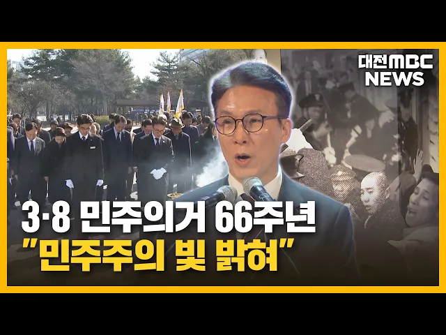 뉴스투데이 뉴스데스크뉴스투데이뉴스데스크 VOD(전체 다시보기)뉴스투데이 VOD(전체 다시보기)유튜브뉴스페이스북 뉴스카카오톡 뉴스인스타그램 뉴스정정 및 반론보도 모음 prev 2026.3.9 - 월요일 next [리포트] 3·8 민주의거 기념식..."대전, 민주주의 빛 밝혀" ◀ 앵 커 ▶충청권 최초의 학생 민주화 운동인 '3·8 민주의거'가, 어제로 66주년을 맞았습니다.후손들은, 독재에 맞서 민주주의를 앞당긴 이들의 정신을 되새겨, 지역의 빛나는 유산으로 이어가겠다고 다짐... 김지혜 여야, 행정통합 논의 '공전'..특별법 처리 난항 오는 7월 통합특별시 출범을 위한대전충남 행정통합 특별법 제정의 사실상 마지막 시한인 국회 본회의를 사흘 앞두고, 여야가 좀처럼입장 차를 좁히지 못하고 있습니다.정청래 더불어민주당 대표는 어제, ... 이승섭 대전 인구 올해 들어 676명 증가 올해 들어 대전시 인구가, 600명 넘게 증가한 것으로 나타났습니다.대전시에 따르면, 지난달 말 기준 '시 주민등록' 인구는 144만 1,405명으로 지난해 12월 대비 676명 늘었습니다.시는 같은 기간 서울과 ... 고병권 만취 상태로 택시 기사 폭행한 50대 구속 아산경찰서가 술에 취해택시 기사를 폭행한 혐의로,50대 남성을 구속했습니다.피의자는 지난 5일 저녁, 만취 상태로 택시를 타 운전하던 70대 기사에게욕설하며 마구 때리고, 아산 온양온천역 인근에 차를... 이승섭 충남도, 소상공인 위기 극복·재창업 지원 나서 충남도와 충남 경제진흥원이 사업비 30억 원을 투입해, 경영난을 호소하는 소상공인을 지원합니다.도는 지난해보다 월평균 매출이 감소했거나재창업을 희망하는 소상공인을 대상으로사업화 자금을 지급하... 이승섭 카이스트 "탄소 배출 한계 2배 초과⋯기후 급변 우려" 이산화탄소 배출을 탄소 총량으로계산하는 기존 방식 대신,질소 오염과 같이 연간 배출량으로재산정한 결과, 탄소 배출량이 지구가 감당 가능한 한계를 두 배 이상 초과했다는 연구 결과가 나왔습니다.카... 김지혜 천안·아산 손잡고 ‘AI 특화 시범도시’ 공모 도전 천안시와 아산시가 업무협약을맺고, 정부의 AI 특화 시범도시 공모 선정을 위해 전략적인 협력에 나섭니다.두 도시는 국토교통부가 대전·충청권과강원권에서 각각 1곳씩 선정하는 AI 특화 시범도시 공모에... 이교선 세종시, 오늘부터 농업인 수당 접수 세종시가 오늘부터 4주 동안,올해 농업인 수당을 신청받습니다.농업인 수당은 지난 2023년 1월부터 현재까지세종시에 사는 농업인을 대상으로지역화폐인 여민전으로 농가당 60만 원이지급됩니다.시는 지난... 이승섭 세종시, 유해 야생동물 일제 포획 세종시가 오늘까지 원수산과 전월산, 읍면 지역에서, 유해 야생동물을 일제 포획합니다.시는 농작물 피해를 막고,시민들의 안전을 보호하기 위해 포획 활동을 벌이고, 포획한 멧돼지를 대상으로 아프리카... 이승섭 충남도, 흰다리새우 양식재해보험 운영 충남도가 지난해 전국 최초로도입한 흰다리새우 양식재해보험을,올해도 운영합니다.해당 보험은 보령과 당진 등 도내 7개 시군에서0.5g 이상의 흰다리새우를 양식하는 어가를대상으로 태풍과 홍수 등의 자... 이승섭 대전시 무형유산 초고장·국화주 신규 보유자 탄생 대전시가 공석 상태였던 시 무형유산 초고장과 국화주 보유자로, 양인화 초고장과 송영진 주조장을 각각 인정했습니다.이들은 1995년 각각 짚풀공예와 송순주 주조에 입문해 이전 보유자인 부친과 모친으... 김광연