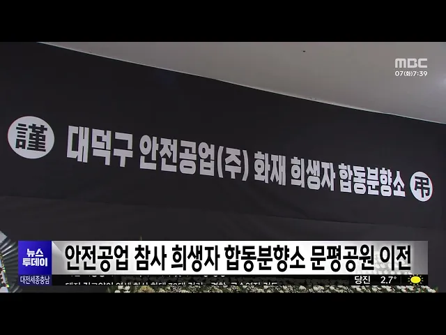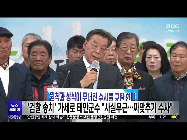 뉴스투데이 뉴스데스크뉴스투데이뉴스데스크 VOD(전체 다시보기)뉴스투데이 VOD(전체 다시보기)유튜브뉴스페이스북 뉴스다음 뉴스인스타그램 뉴스정정 및 반론보도 모음 prev 2026.4.7 - 화요일 next [리포트]최민호 등판·민주당 2인 결선..불붙은 세종시장 선거전 ◀ 앵 커 ▶최민호 세종시장이, 충청권 시도지사 가운데 처음으로 지방선거 출마를 위해 시장직에서 물러났습니다.더불어민주당은 세종시장 후보를 놓고, 이춘희, 조상호 경선 후보가 결선 투표를 벌이게 됐... 이승섭 민주당 충남지사 경선 '박수현-양승조' 결선 진출 더불어민주당 충남지사 경선에서,박수현 후보와 양승조 후보가결선을 치르게 됐습니다.민주당 선거관리위원회는, 경선투표에서 과반 득표자가 나오지않아, 최다 득표를 한 박수현 후보와양승조 후보의 결... 이승섭 [리포트]장철민 "대전의 미래" vs 허태정 "준비된 경험" ◀ 앵 커 ▶대전시장 선거도 지난 주말 결선을 치를 더불어민주당 2명의 후보가 정해지면서, 본격적인 당내 본선 경쟁이 시작됐습니다.전직 시장의 경험론과 대전의 미래를 강조한 이른바 장장연대로, 각각 ... 문은선 민주당, 김종천·전문학 서구청장 예비후보 재심 인용 더불어민주당 대전 서구청장 후보 공천에서 컷오프됐던 김종천전 대전시의회 의장과, 전문학 민주당 당대표 특보의 재심 신청이 받아들여졌습니다.이에 따라, 5명으로 압축됐던 민주당 서구청장 예비후보... 문은선 국민의힘 "홍성군수 경선 절차 공방 마무리" 국민의힘 홍성군수 후보 경선에서, 컷오프에 반발한 이정윤홍성군의원의 재심 신청과 가처분이모두 받아들여지지 않았습니다.국민의힘 충남도당 공천관리위원회는, "이 예비후보가 신청한 재심 신청과 법... 최기웅 [리포트]금산군 민생 지원 '30만 원' 지급...'선거용' 비판도 ◀ 앵 커 ▶정부의 고유가 피해지원금과 별도로, 금산군이 처음으로 전액 군비로 30만 원씩 민생안정 지원금 지급에 나섰습니다.중동 전쟁에 따른 유가 등 물가 상승과, 경기 침체를 극복하기 위한 대응책인... 김지혜 김태흠 지사 "고유가 지원금 등은 전액 국비 부담해야" 정부가 중동전쟁 위기 극복을 위해 고유가 피해지원금 등을 추진 중인가운데, 김태흠 충남지사가,지방비 부담 없이 전액 국비로 지원해야 한다고 밝혔습니다.김 지사는 도청 지휘부 회의에서,"초과 세수를... 최기웅 서천군, 세 자녀 이상 가정에 '대학생 생활지원금' 서천군이 세 자녀 이상 가정에 대학생 생활지원금을 지급하기로하고, 오는 17일까지 신청을 받습니다.대상은 3년 이상 군에 주소를두고 있는 세 자녀 이상 가정으로, 신입생은 1학년 1학기 첫 학기에100만... 김윤미 '국가상징구역 조성 참여' 국민자문단 본격 활동 국가상징구역 조성에 참여하는 시민과 전문가 등으로 구성된국민자문단이, 본격적인자문 활동에 들어갔습니다.국민자문단은 국가상징구역 조성 현장을 찾아, 대통령 세종집무실과 국회세종의사당 등의 추... 박선진 대전 유일 공립 위탁형 대안교육기관 '꿈나래교육원' 입교식 대전 유일의 공립 위탁형 대안교육기관인 '꿈나래교육원'이,고등학교 1, 2학년 위탁 학생들을 맞이하는 입교식을 열었습니다.꿈나래교육원은 개원 10년 차를맞아, 올해부터는 연극과 영상콘텐츠 제작 등, ... 이혜현 [리포트]'10명 희생' 2층 3D 재구성⋯"공간 전체가 밀폐" ◀ 앵 커 ▶대전 안전공업 화재 참사로 희생된 14명 가운데 10명이, 불법 증축된 2층 휴게 공간에서 발견됐습니다.대전MBC가 전직 직원들의 진술 등을 토대로 당시 내부 공간을 3D 도면으로 재구성해 봤더니... 김성국 대전 안전공업 합동분향소 문평근린공원으로 이전 대전 안전공업 화재 참사 추모 기간이 지난주로 끝남에 따라,대전시가 시청에 있던 합동분향소를문평동 문평근린공원으로 옮겨, 오늘부터 다음 달 9일49재 때까지 운영합니다.이전하는 합동분향소는, 유가... 문은선 세월호 참사 12주기 대전준비위 "사회적 재난 끊이지 않아" 세월호 참사 12주기 대전준비위원회가 대전시청 앞에서 기자회견을 열고, 노동자 14명이 희생된 안전공업 화재 참사가 발생하는 등 사회적 재난이 끊이지않는다며, 안전한 사회가 되지 못한현실을 규탄했... 이혜현 '경부선 직선화' 한남대·철도공단 갈등 심화 대전 도심을 통과하는경부고속철도 대전 북연결선 사업을 놓고, 국가철도공단과 공사 구간에포함된 한남대 사이 갈등이 커지고 있습니다.한남대는 공청회를 열고,교내에 설치되는 터널 출입구 등안전성 우... 문은선 사파리 확대 '오월드 재창조 사업'⋯환경단체 반발 대전도시공사가 3천억 원 넘는예산을 투입해, 오월드에 놀이시설과사파리를 확대하는 '재창조 사업'을추진하자, 환경단체들이강하게 반발하고 있습니다.이들은 대전도시공사 앞에서 기자회견을 열고, "해... 이혜현 [리포트]초반 부진 시티즌⋯ 우승 도전 빨간불? ◀ 앵 커 ▶K리그1 대전하나시티즌이, 시즌 초반 부진의 늪에서 헤어나지 못하고 있습니다.아쉬운 득점 실패와 오심, 예기치 못한 퇴장 등, 선수들의 경기력에 비해, 운이 따르지 못하고 있다는 평가입니다.... 박선진 대전서 길고양이에게 화상 입힌 70대 검거