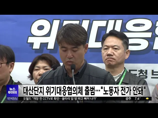 뉴스투데이 뉴스데스크뉴스투데이뉴스데스크 VOD(전체 다시보기)뉴스투데이 VOD(전체 다시보기)유튜브뉴스페이스북 뉴스다음 뉴스인스타그램 뉴스정정 및 반론보도 모음 prev 2026.4.9 - 목요일 next [리포트]대전 오월드 늑대 탈출⋯밤새 못 찾아 ◀ 앵 커 ▶어제 오전 대전의 '오월드' 동물원에서 늑대 한 마리가 탈출해 도심 곳곳을 활보하는 일이 벌어졌습니다.경찰과 소방당국의 대대적인 수색에 이어 밤샘 수색까지 벌였지만, 도심으로 빠져나간 늑... 이혜현 [리포트]"늑대가 나타났다!" 8년 전 '퓨마 탈출' 공포 또한번 도심 발칵 ◀ 앵 커 ▶동물원을 탈출한 늑대가 대전 도심까지 나가면서, 인근 마을이 발칵 뒤집혔습니다.과거 오월드에서 퓨마가 탈출했던 사건을 기억하는 시민들은, 또다시 불안에 떨었는데요.환경단체는, 반복된 맹... 이혜현 이장우 시장 "늑대 탈출로 심려 송구⋯피해 없도록 책임" 대전 오월드 늑대 탈출 사고와 관련해 이장우 대전시장이,심려를 끼친 데 대해 사과하는 한편,시민 안전을 책임지겠다고 약속했습니다.이 시장은 자신의 SNS에,"오월드 늑대 탈출 사고로 심려를끼쳐 송구... 문은선 [리포트]'선택2026' 지역 일꾼은?_공주시장 선거 ◀ 앵 커 ▶6·3 지방선거를 앞두고 지역별 판세를 짚어보는 기획보도 '선택 2026', 오늘은 공주시장 선거입니다.공주시는 전통적으로 보수세가 강하지만, 민선 7기에는 진보 진영이 당선된 바 있어, 이번에... 김지혜 '결선' 민주당 충청권 경선⋯탈락 후보 지지 '변수' 6.3 지방선거 더불어민주당충청권 시도지사 경선이 모두결선투표로 최종 후보를 정하게되면서, 탈락한 후보의 표심이막판 변수로 꼽힙니다.모레부터 사흘간 치러지는 민주당 대전시장 결선은, 탈락한장종... 문은선 국민의힘 충남도당, 기초단체장 후보자 확정 국민의힘 충남도당이, 6·3 지방선거에 나설 15개 시군의기초단체장 후보자를 모두 확정했습니다.국민의힘은, 3선 연임 제한에 걸린보령시장을 제외한 현직 시장과 군수 9명 가운데, 이용록 홍성군수를제외... 이승섭 [리포트]공공 부문 차량 2부제 시행⋯에너지 절약 안간힘 ◀ 앵 커 ▶중동 사태로 자원안보위기 경계 단계가 내려지면서, 어제부터 공공 부문에는 차량 2부제가, 민원인에게도 5부제가 적용됩니다.에너지 위기를 극복하기 위해 승강기 운행을 제한하거나 주 4일제와... 김광연 대산석유화학단지 위기대응협의체 출범.."노동자 전가 안돼" 서산 대산석유화학단지의 구조적 위기에 대응하기 위해 노동계와 시민사회단체가 연대한지역 협의체가 출범했습니다.민주노총 세종충남지역본부와 노동·시민단체 등은 충남도청에서기자회견을 열고, "석유... 최기웅 지역 상장사, 중동사태 여파로 시총 한 달 새 17조 원 증발 중동 사태의 여파로 지역 상장사들의 시가총액이,한 달 사이 17조 원 이상 증발한 것으로 나타났습니다.한국거래소 대전혁신성장센터의지난달 대전충청지역 상장사증시동향을 보면, 대전과 세종, 충남 지... 문은선 [리포트]치솟는 고유가⋯운전습관으로 연비 잡는다 ◀ 앵 커 ▶중동 정세의 악화로 국내 기름값이 리터당 2천 원에 근접하면서, 기름 넣기 부담스럽다는 분들 많으실 겁니다.이제는 기름을 조금이라도 아끼기 위한 운전자들의 관심이 높아지고 있는데요.일상... 전효정 대전시, 내년 국비 5조 원 목표⋯국비 사업 47건 발굴 대전시가 내년도 국비 5조 원을 목표로, 국비 확보에 나섭니다.시는 내년 국비 사업 목표액을 올해보다 5% 늘어난 5조 406억 원으로잡고, 국가 양자클러스터 구축 사업,인공지능과 바이오테크놀로지 혁신 ... 문은선 지식재산처, 위조 K-팝 굿즈 단속 강화 최근 완전체로 복귀한 방탄소년단콘서트를 앞두고, 위조 K-팝 상품이기승을 부려, 지식재산처가 온오프라인 단속을 강화합니다.지식재산처는, 방탄소년단의 공연이있는 오늘부터 주말 사이 공연장일대에서... 문은선 코레일, 5월 연휴 기간 열차 운행 확대 한국철도공사 코레일은 다음 달 1일에서 어린이날인5일까지 이어지는 징검다리 연휴를맞아, 열차 운행을 확대합니다.이에 따라 경부와 호남선 등 전국 6개 노선에 KTX와 일반 열차를64차례 추가 운행하고,... 문은선 인류무형유산 당진 기지시줄다리기축제 9일 시작 유네스코 인류무형유산으로등재된 기지시 줄다리기를 주제로 한 축제가, 오늘부터 오는 12일까지 당진시 송악읍일대에서 열립니다.기지시 줄다리기 축제는, 첫날당제를 시작으로 용왕제와 마을기원제가 이... 최기웅 기계연 "올해 휴머노이드 상용화 원년"⋯대응 전략 제시 한국기계연구원이, 올해를 휴머노이드 로봇이 RD 단계를벗어나 상업적 응용 단계로전환되는 ‘상업적 임계점’ 진입의 해로 진단했습니다.기계연은 최근 발간한 보고서에서, "AI가 물리적 신체를 갖는 '피지... 이교선 대전 동구, '오상욱 거리' 조형물 설치 대전 동구가 명예도로 '오상욱 거리'를 기념하기 위해,오상욱 선수의 모교인 대전대잔디광장 인근에 상징 조형물을 설치했습니다.명예도로명과 오상욱 선수, 꿈돌이 캐릭터로 구성한 상징조형물은, 아시아... 문은선