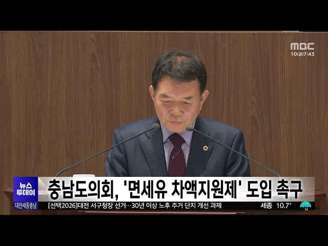 뉴스투데이 뉴스데스크뉴스투데이뉴스데스크 VOD(전체 다시보기)뉴스투데이 VOD(전체 다시보기)유튜브뉴스페이스북 뉴스다음 뉴스인스타그램 뉴스정정 및 반론보도 모음 prev 2026.4.10 - 금요일 next [리포트]'늑구' 사흘째 행방 묘연?"애꿎은 늑대 희생 없어야" ◀ 앵 커 ▶대전의 오월드 동물원을 탈출한 늑대가수색 사흘째인 오늘 아침까지도잡히지 않고 있습니다.어제부터 내린 비로 수색에 난항을 겪은 데다오인 신고까지 겹치며, 마지막으로 모습이 확인된 지 하... 김윤미 [리포트]'늑대와 함께 밤을'?⋯늑대사 옆 글램핑장 논란 ◀ 앵 커 ▶이번 오월드 늑대 탈출 사건으로, 대전시가 추진하는 오월드 재창조사업도 전면 재검토해야 한다는목소리가 커지고 있습니다.특히 해당 사업에는, 이번에 사고가 난 늑대 사파리 바로 옆에,글램... 문은선 지역 정치권 "오월드 재창조 중단·재검토해야" 대전 오월드 늑대 탈출 사건과 관련해 정치권에서도, 오월드 재창조 사업에 대한 점검을 요구하는목소리가 나오고 있습니다.허태정 더불어민주당 대전시장 경선 후보는, "현재 추진 중인 오월드 재창조 사... 문은선 대전역세권 복합2-1구역 개발사업 차질⋯대전시 대응 나서 대전역 동광장 일대 2만 8천여㎡ 부지에 주거와 숙박 등 복합도시공간을 조성하는 대전역세권 복합2-1구역 개발사업이, 중동 정세 불안 등으로 차질을 빚고 있습니다.대전시에 따르면, 최근 개발사업 주관... 김광연 '승용차 2부제' 대전 동구, 퇴근 전용 통근버스 운영 공공기관 승용차 2부제 시행에따라, 대전 동구가 퇴근 전용통근버스를 신설해 운영합니다.동구는 퇴근 시간대 직원들편의를 위해, 주요 지하철역과버스 환승 거점을 중심으로 노선을구성하고, 이용 수요를... 문은선 [리포트]"친환경 트램인데.."⋯공사에 가로수 70% '싹둑' ◀ 앵 커 ▶내후년 개통을 목표로 대전시가추진 중인 2호선 트램 공사가,지난달부터 본격적으로 시작됐습니다.그런데 공사를 위해 도로를확장한다며, 벚나무 등 기존 가로수수천 그루가 잘려 나가 논란입니... 전효정 환경단체, '하천 불법 공사' 유성파크골프협회 검찰 고발 환경단체들이 유성파크 골프협회의 반복적인 하천 불법 공사를규탄하며, 협회를 검찰에 고발했습니다.대전환경운동연합 등은 대전지방검찰청 앞에서 기자회견을 열고, "지난해 11월 갑천 용신교 상류에 무... 전효정 논산 오리농장서 고병원성 AI 항원 검출..긴급 방역 논산의 한 오리농장에서 고병원성이 의심되는 H5형 조류인플루엔자 항원이 검출돼,충남도가 해당 농장의 오리 2만6천 마리를 살처분하는 등 긴급 방역에 나섰습니다.방역당국은 또 해당 농장의 출입을전면... 이승섭 '층간소음에 가려진 살인' 목요언론인클럽 이달의 기자상 수상 지난해 12월 천안에서 이웃을살해한 혐의로 기소된 양민준 사건의 이면을 보도한 대전MBC의 연속 보도가, 목요언론인클럽 올해 1분기 이달의 기자상 방송 부문을 수상했습니다.대전MBC 취재진은, 발생 초... 이승섭 [리포트]'선택2026' 지역 일꾼은?_서구청장 선거 ◀ 앵 커 ▶6·3 지방선거를 앞두고 지역별 판세를 짚어보는 기획보도,오늘은 대전 서구청장 선거입니다.국민의힘 소속 현직 구청장이 재선 도전에 나선 가운데,민주당에서는 7명이 치열한 경선을벌이는 구도... 김광연 민주당 시도지사 경선 탈락 후보 이합집산 가속화 더불어민주당이 충청권 시도지사 후보 선출을 위한 결선 투표를앞둔 가운데, 결선 후보마다 탈락한후보의 지지세를 흡수하려는 움직임이 빨라지고 있습니다.민주당 충남지사 결선 주자인박수현 후보는, 경... 이승섭 세종시, '지역 선거구 조례' 시의회에 재의 요구 세종시가 오는 6월 지방선거에서일부 광역의원 선거구를 조정하는내용을 담아, 세종시의회가,의결한 조례안에 대해 재의를 요구했습니다.시는 조례안을 애초 오늘 공포하려했지만, 국회에서 선거구 획정 ... 이승섭 환경단체 "세종보, 표몰이 도구로 활용 말아야" 세종보 철거를 주장하는 보 철거 시민행동이 세종시장 선거에 나선 후보들을 향해, 세종보를 표몰이 도구로 활용해서는안 된다고 지적했습니다.환경단체는 성명을 통해, "각 후보가 세종보의 재가동이나 ... 이승섭 [리포트]안전공업 참사 여파⋯완성차 업계 '직격탄' ◀ 앵 커 ▶대전 안전공업 화재 참사여파가, 자동차 산업 전반으로번지고 있습니다.14명의 목숨을 앗아가는 등 74명의 사상자를 낸 화재로엔진부품 공급이 멈추면서, 국내 완성차 공장에서 생산 차질이 빚어... 이교선 충남도, 금속가공 사업장 긴급 안전 점검 충남소방본부가 도내 금속가공 사업장 268개소를 대상으로,고용노동부와 긴급 합동 안전 점검에 나섭니다.대전 안전공업 화재와 같은 대형 화재 재발 방지를 위해 추진되는 이번 점검에서는, 절단·단조·열... 최기웅 충남도의회, 농업면세유 '차액지원제' 촉구 충남 농어업인의 경영 위기 해소를 위해서, 면세유 차액지원제도를 도입해야 한다는 목소리가충남도의회에서 나왔습니다.국민의힘 정광섭 의원은 5분발언을 통해, "면세유 가격이 일정 기준 이상 상승할 ... 최기웅 대전시, 야구장에 다회용 컵 46만 개 공급 대전시가 일회