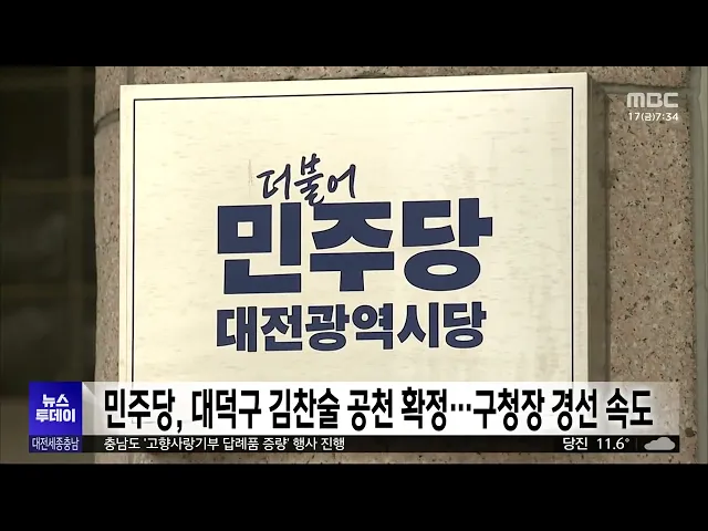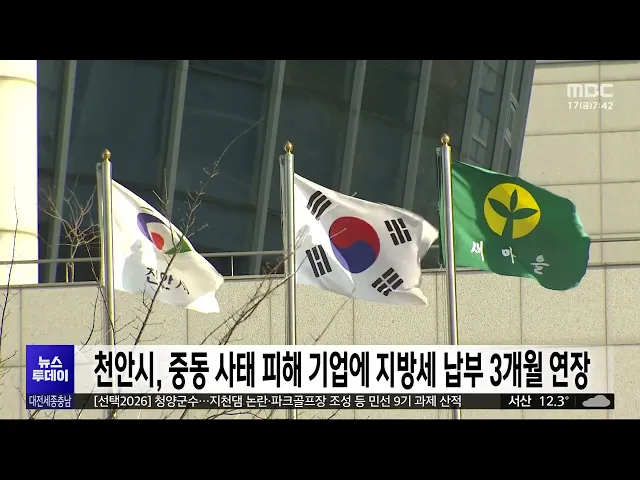 뉴스투데이 뉴스데스크뉴스투데이뉴스데스크 VOD(전체 다시보기)뉴스투데이 VOD(전체 다시보기)유튜브뉴스페이스북 뉴스다음 뉴스인스타그램 뉴스정정 및 반론보도 모음 prev 2026.4.17 - 금요일 next [리포트]열흘간 추적 끝에 '늑구' 생포⋯"건강 이상 없어" ◀ 앵 커 ▶대전 오월드 동물원에서 탈출했던 늑대 '늑구'가 열흘 만에 생포됐습니다.밤사이 동물원에서 2km가량 떨어진 고속도로 나들목 인근에서 무사히 잡혔는데요.열흘째 이어진 수색 끝에 포획된 늑구... 전효정 이재명 대통령 "지역에 대규모 규제특구 도입 필요" 이재명 대통령이 국가균형발전차원에서, 지역에 대규모 규제특구도입 필요성을 강조했습니다.그제 청와대에서 규제합리화위원회 첫 회의를 주재한 이재명대통령은, "지방소멸 방지는 단순 시혜나 배려가 ... 문은선 행복청, 대통령 세종집무실 설계 공모작 국민공감투표 진행 대통령 세종집무실 설계 공모의 2차 심사에 진출한 5개 작품을 대상으로 오늘부터 일주일 동안 국민 참여 투표가 진행됩니다.투표는 작품의 상징성과 한국적 건축미 등을기준으로 성인 누구나 참여해마음... 이승섭 [리포트]민주당 세종시장 조상호 확정...대진표 완성 ◀ 앵 커 ▶더불어민주당 세종시장 후보로,조상호 전 세종시 부시장이결선투표 끝에 확정됐습니다.조 후보가 세대교체를 기치로내걸었던 새로운 리더십이,판세를 뒤집은 것으로 분석됩니다. 김지혜 기자가 ... 김지혜 행정수도 특별법, 이달 내 국회 상임위 상정 전망 국회 국토교통위원회 법안소위원회에서 두 차례 논의가미뤄진 행정수도 특별법이, 이달 말국토위 전체회의에 상정될 전망입니다.국회 국토위 소속 조국혁신당 황운하 의원은, 이종욱 국토위 법안소위 위원... 이승섭 FISU 회장단 방한..충청U대회 정부 지원 요청 레온즈 에더 국제대학스포츠연맹회장을 비롯한 FISU 회장단이어제 방한해 최휘영 문화체육관광부장관을 만나, 내년 충청 유니버시아드대회의 성공 개최를 위한정부의 지원을 요청했습니다.최휘영 장관은 ... 이승섭 [리포트]'선택2026' 청양군수 선거⋯첫 '3선 군수' 나오나? ◀ 앵 커 ▶6.3 지방선거를 앞두고 지역별판세를 짚어보는 기획보도 '선택 2026', 오늘은청양군수 선거 순서입니다.청양군은 충남에서 인구가 가장적은 곳이지만, 농어촌 기본소득과지천댐 논란 등, 지방선... 이승섭 이장우·김태흠 "빚내서 통합"⋯박정현 "국힘의 무지" 통합 무산을 놓고 네 탓 공방을벌였던 지역 정치권이, 정부 추경에서 전남광주특별시 출범준비 예산이 전액 삭감된 것과관련해 또다시 공방을 벌이고 있습니다.국민의힘 소속 이장우 대전시장과김태흠 충... 문은선 민주당, 대덕구 김찬술 공천 확정⋯구청장 경선 속도 더불어민주당이 대전 대덕구청장후보로 김찬술 전 대전시의원을확정하는 등, 구청장 경선에 속도를 내고 있습니다.7명이 공천을 신청했던 서구청장경선에서는, 신혜영 서구의원과 전문학 전 대전시의원이,... 문은선 [리포트]"몸이 열 개라도 부족해요"⋯농촌 인력난 심화 ◀ 앵 커 ▶심각한 고령화와 인구 감소를겪고 있는 농촌에서는, 농번기를맞은 요즘 일손을 구하는 게 하늘의 별 따기인데요.인건비는 오르고 인력은 부족한 상황이라 올해 30만 명이 넘는 지원 인력이 투입... 최기웅 충남도, 소상공인 사회보험료 지원⋯부담금 20% 지급 충남도는 중동 사태 등으로 어려움을 겪는 소상공인의 경영부담을 줄이고 근로자 고용 안정을돕기 위해, 소상공인에 사회보험료를 지원합니다.지원 대상은, 근로자 10명 미만사업장 가운데 월평균 보수가 ... 최기웅 방송광고진흥공사, 충청권 소상공인에 방송광고 지원 한국 방송광고진흥공사가우수한 제품이나 서비스를 보유한 소상공인을 위해 방송광고를 지원하기로 하고, 어제 대전에서 협약식을 열었습니다.협약에 따라 선정된 18개소상공인은, 방송광고 제작비와송출... 김윤미 충남 서해안 오존 오염 심각⋯천안·아산보다 빈번 충남 서해안 일대가,인구 밀집 지역인 천안·아산보다오존 오염이 더 심한 것으로 나타났습니다.도 보건환경연구원 등에 따르면, 2022년부터 지난해까지 4년간 충남에서 발령된 오존주의보는모두 222차례로... 최기웅 [리포트]'12년 전 약속'에도 참사 되풀이⋯"정치권 응답해야" ◀ 앵 커 ▶6·3 지방선거를 앞두고,'세월호 참사'를 기억하는 날이돌아왔습니다.참사 12년을 맞아, 순직한 단원고교사들과 소방관 등을 기리는 기억식이, 국립대전현충원에서진행됐는데요.12년 전 약속에도 ... 이혜현 '층간소음에 가려진 살인' 목요언론인클럽 이달의 기자상 수상 천안의 한 아파트에서 70대 이웃을 살해한 양민준 사건의 이면을 파헤친 대전MBC 보도 '층간소음에 가려진 살인'이, 목요 언론인클럽 올해 1분기이달의 기자상 방송 부문을 수상했습니다.이번 보도는, 유... 김성국 충남도, '고향사랑기부 답례품 증량 이벤트' 충남도가 수산물 소비 촉진과 고향사랑기부제 활성화를 위해, 다음 달 15일까지 '답례품 증량' 행사를 진행합니다.이에 따라 10만 원 이상 기부하면, 기존 답례품을 2배까지 늘려주거나 추가 경품을 증정... 최기웅 천안시, 중동 사태 피해 기업에 
