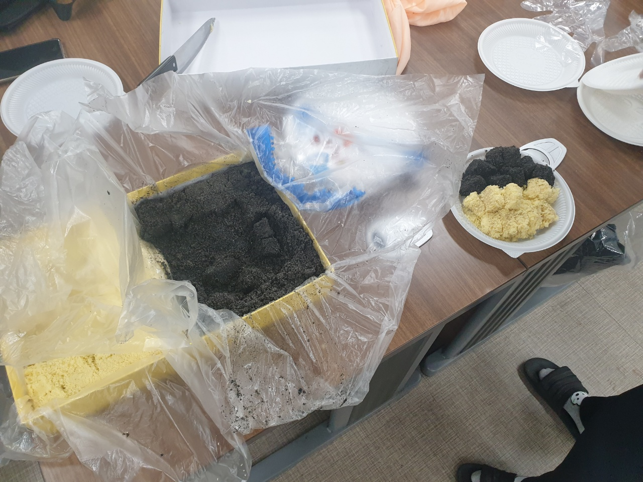 아들에게서 포장된 떡사진과 내용물이 담긴 떡사진을 보내왔습니다