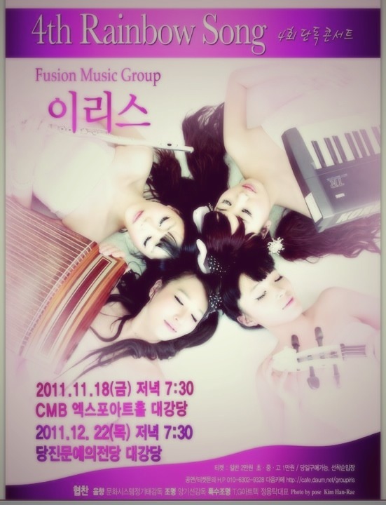 내일 그러니깐 11월 18일 (금) 저녁 7시30분 엑스포아트홀에서 퓨전음악그룹 이리스 콘서트를 합니다.