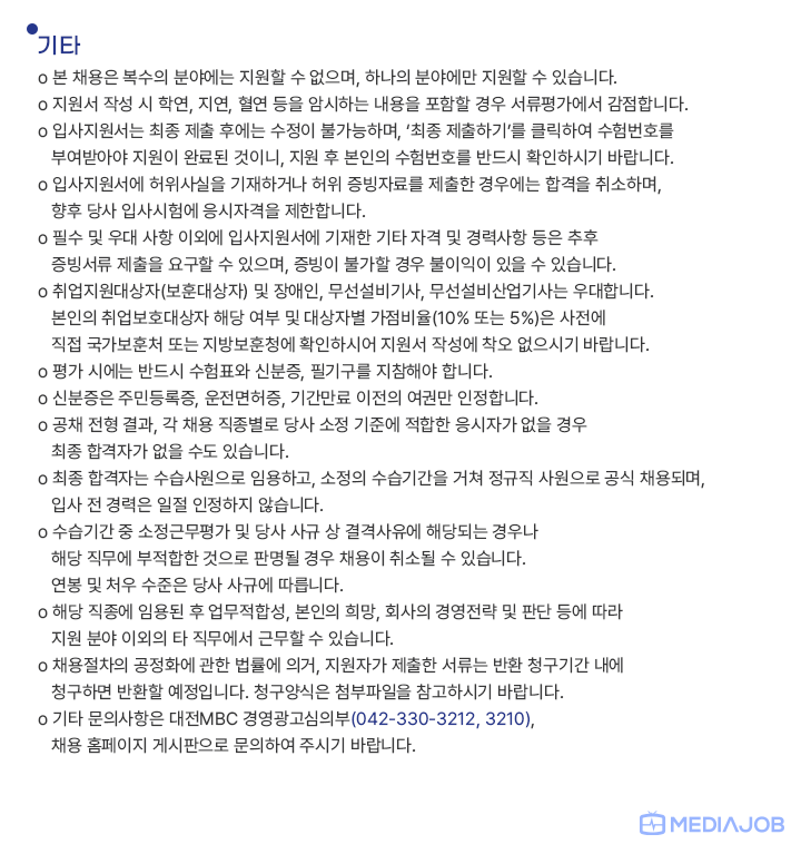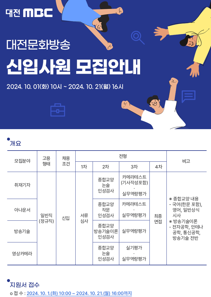 대전MBC 신입사원 모집안내 [마감] 등록일 : 2024-09-24 16:40