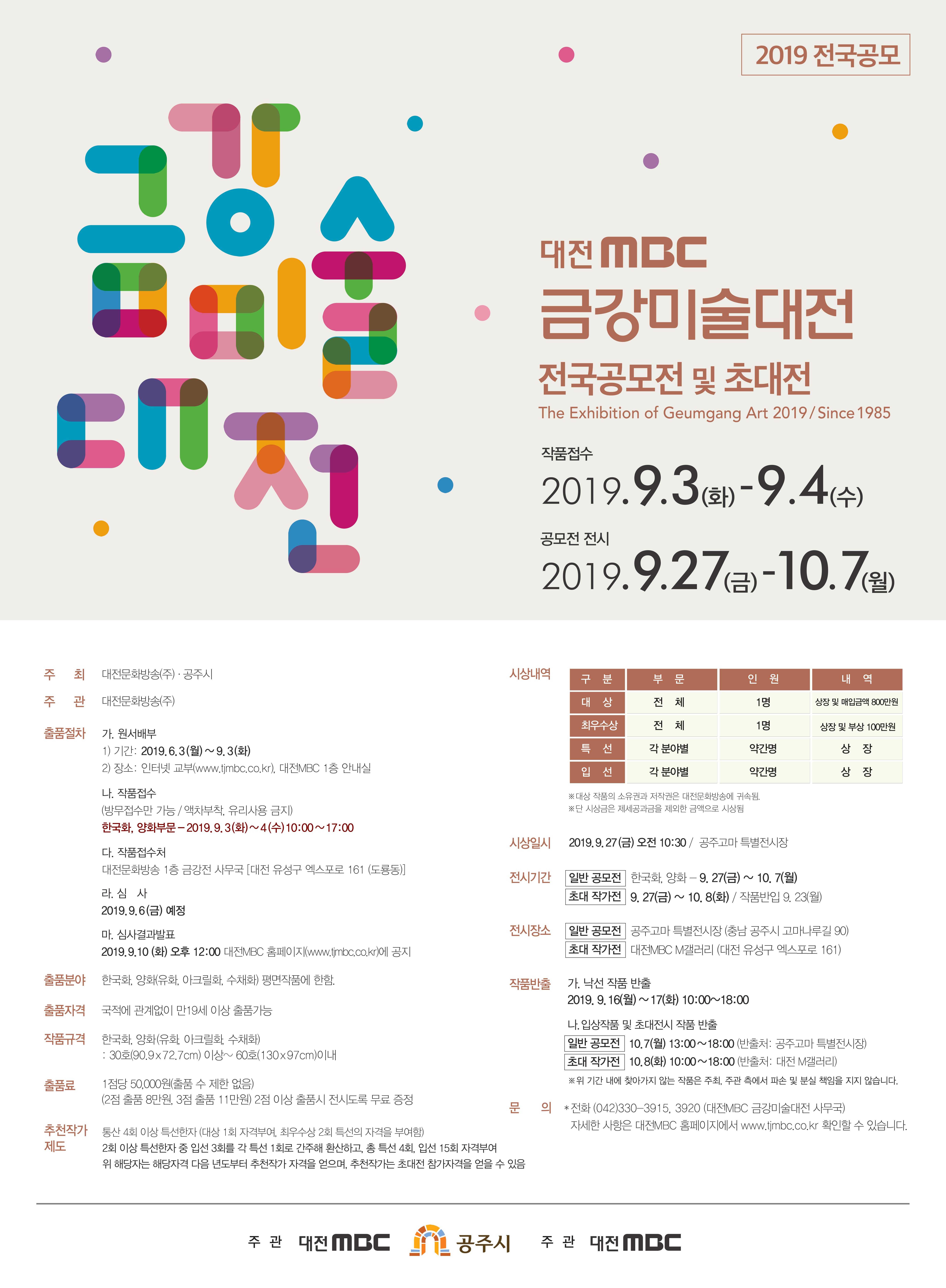대전MBC 금강미술대전 사무국(전화 : 042-330-3915, 330-3920)
